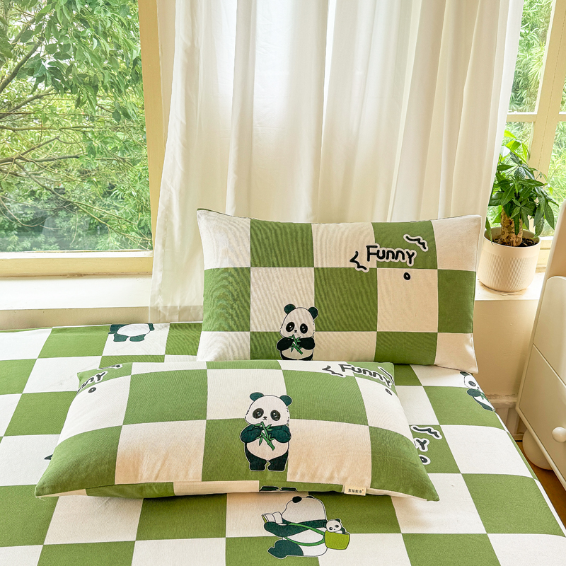 商品名称:悦织湾 2025新款轻奢老粗布原棉印花床笠加厚柔软跨境专供外贸出口电商直播热销款 老粗布床笠-背包熊