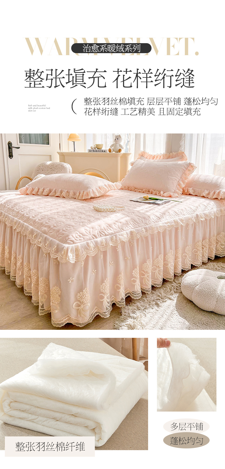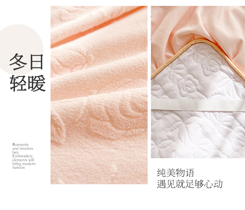 • 91家纺网 家纺一手货源 找家纺 虹星家纺 2024新款雕花夹棉蕾丝牛奶绒床裙-罗马花园 罗马花园 梦幻粉