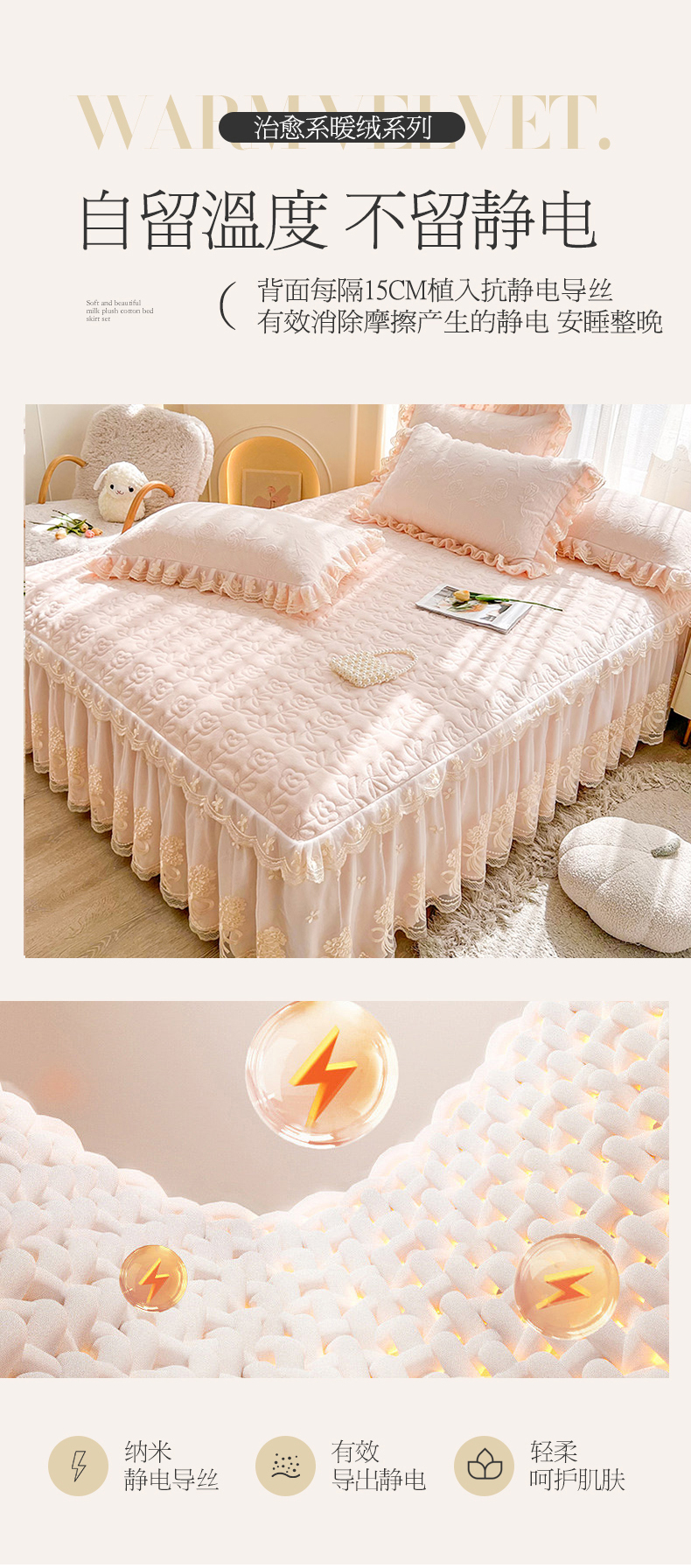 (总)虹星家纺 2025新款花边牛奶绒床裙三件套系列,蝶恋-粉玉,蝶恋-抹茶绿,蝶恋-奶茶色,蝶恋-葡萄紫,蝶恋-天空蓝
