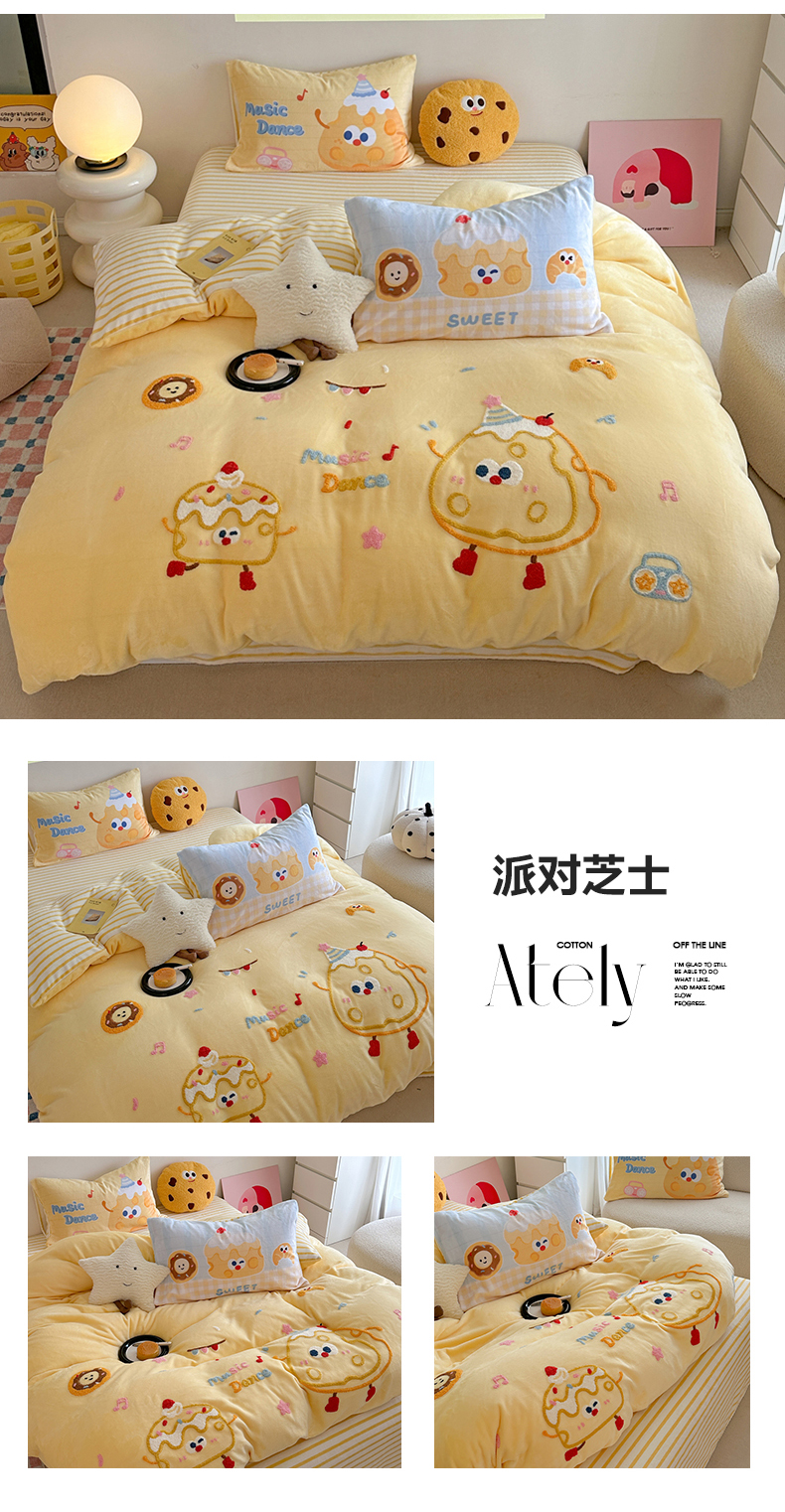 商品名称:眠屿家纺 2024新款牛奶绒毛巾绣四件套 牛奶绒派对芝士