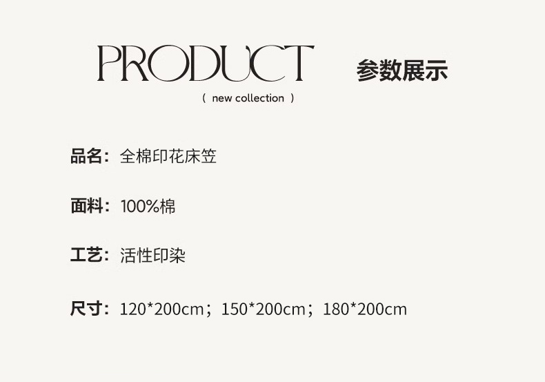 商品名称:(总)棉立方家纺 2024新款全棉喷气印花四件套单品系列-床笠