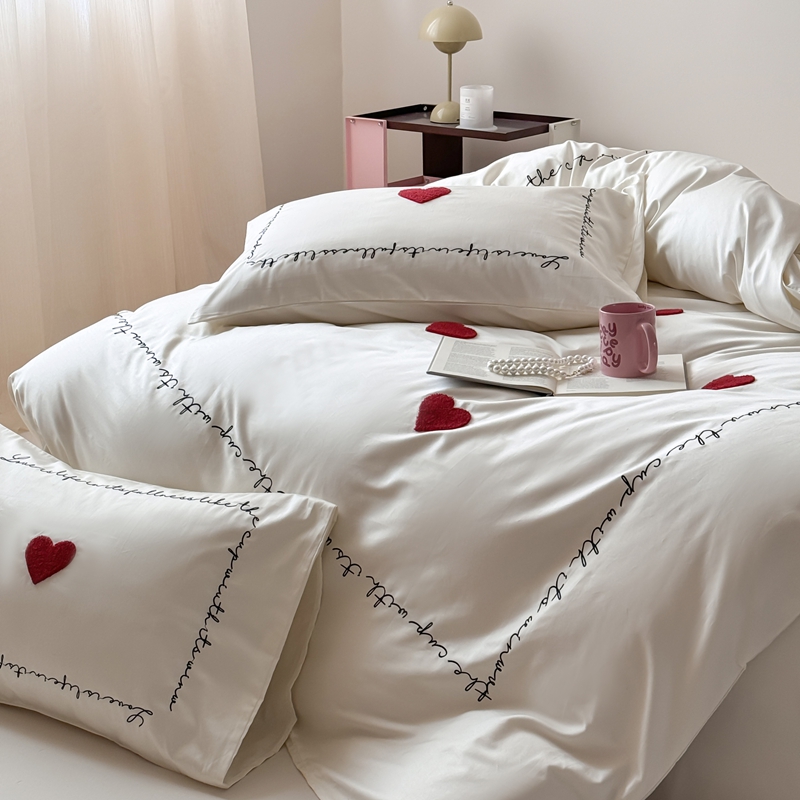 当前位置: 91家纺网 > 商品网购 > 床品套件 > 四件套 > 其它四件套 > 窝米 2025春季新品50支高定毛巾绣刺绣款四件套-Love Love-奶白