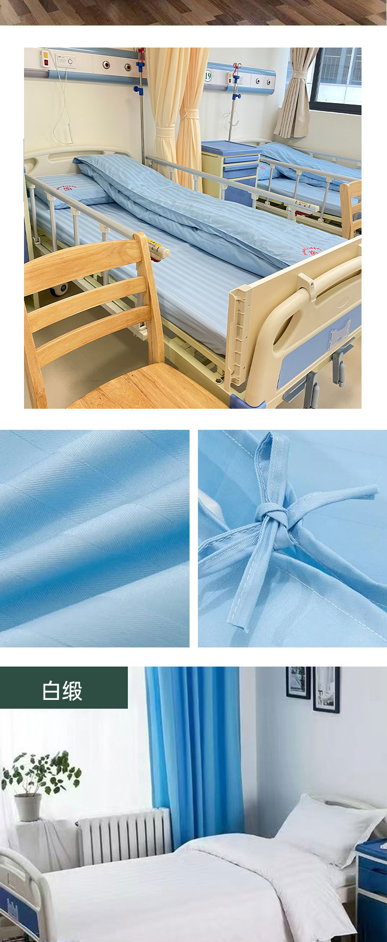 医院用品专用医用诊所床品卫生院养老院病床三件套医院床单医疗,涤棉兰色缎条,涤棉粉色缎条,涤棉蓝绿缎条,涤棉白色缎条