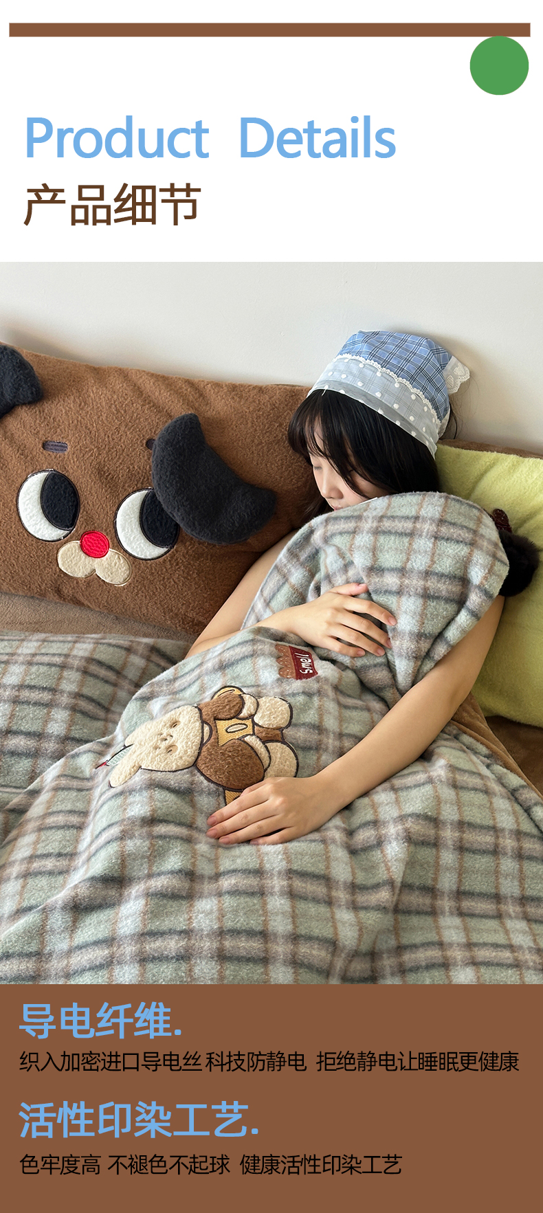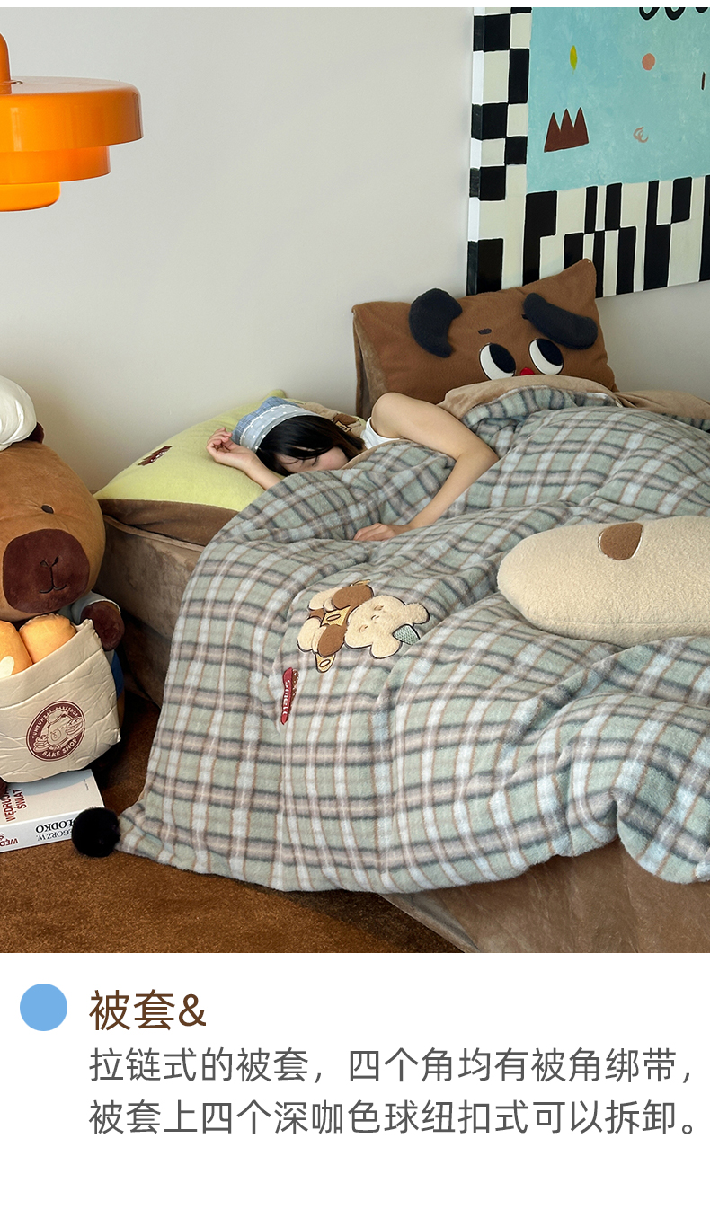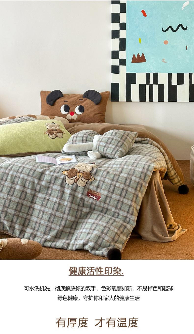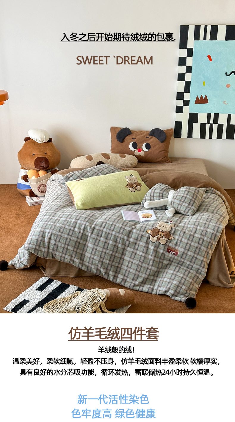 (总)桔子家纺 2025秋冬新款兔兔绒美式复古系列四件套,coco可可(四件套),查理(四件套),吉米(四件套)