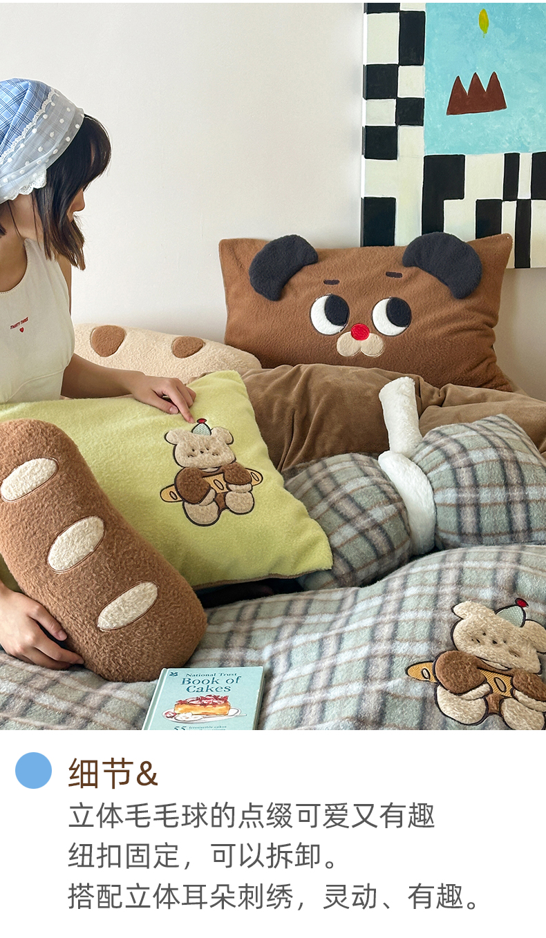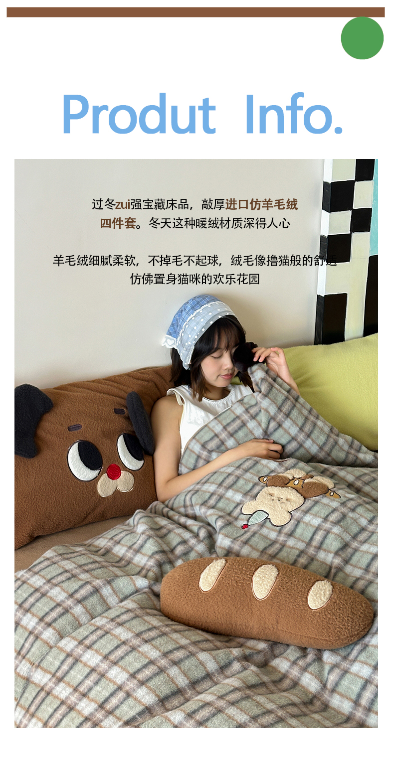 商品名称:桔子 2024新款羊毛绒烘焙系列四件套 面包熊