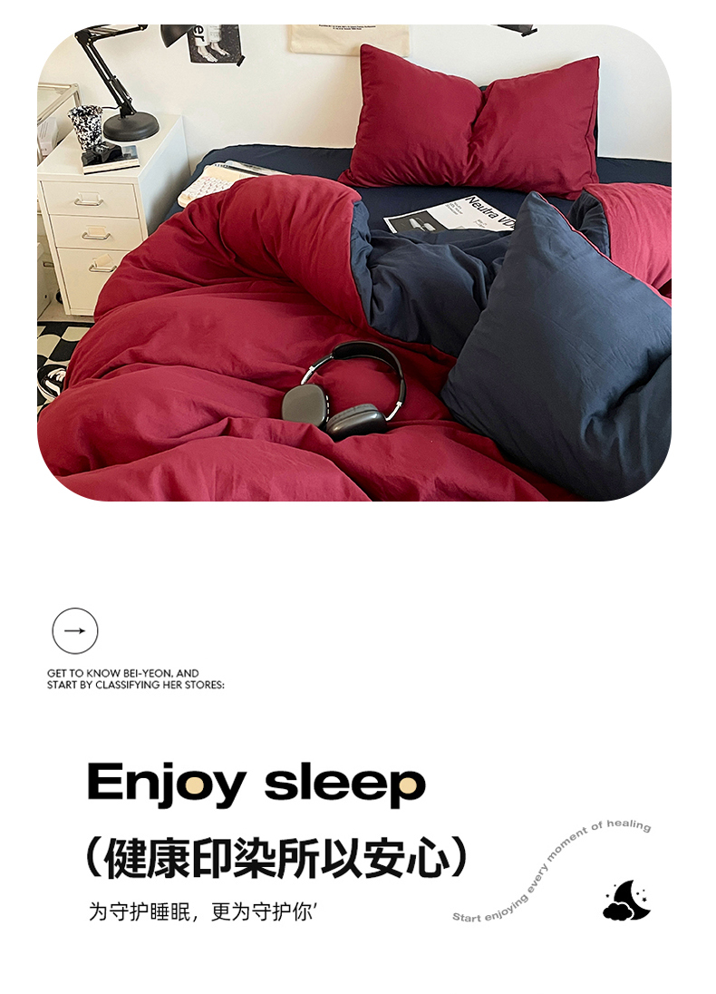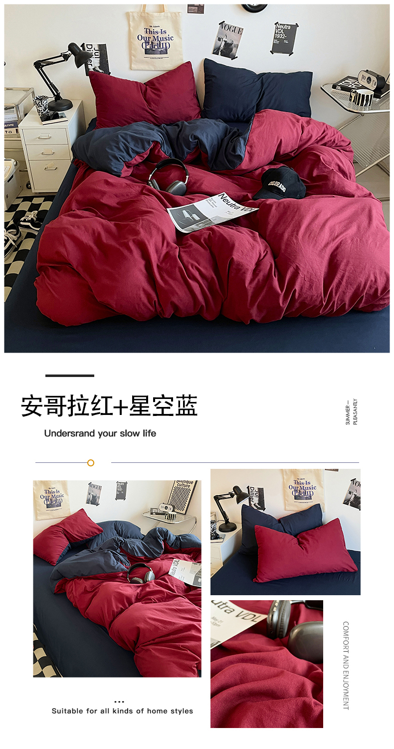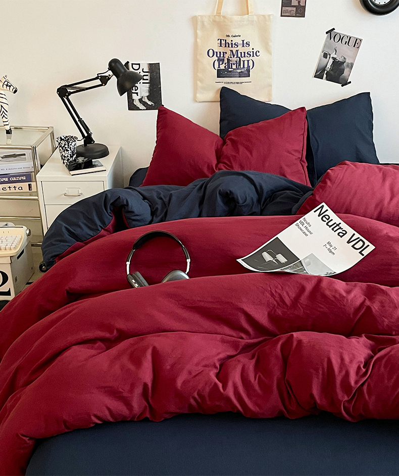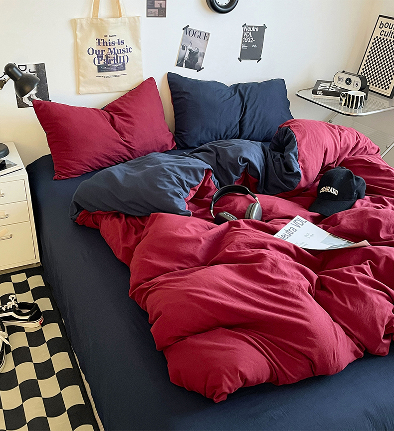 当前位置: 91家纺网 > 商品网购 > 床品套件 > 四件套 > 水洗棉四件套 > 思诺羽床笠 2025新款高克重微皱双拼水洗棉四件套 安哥拉红+星空蓝