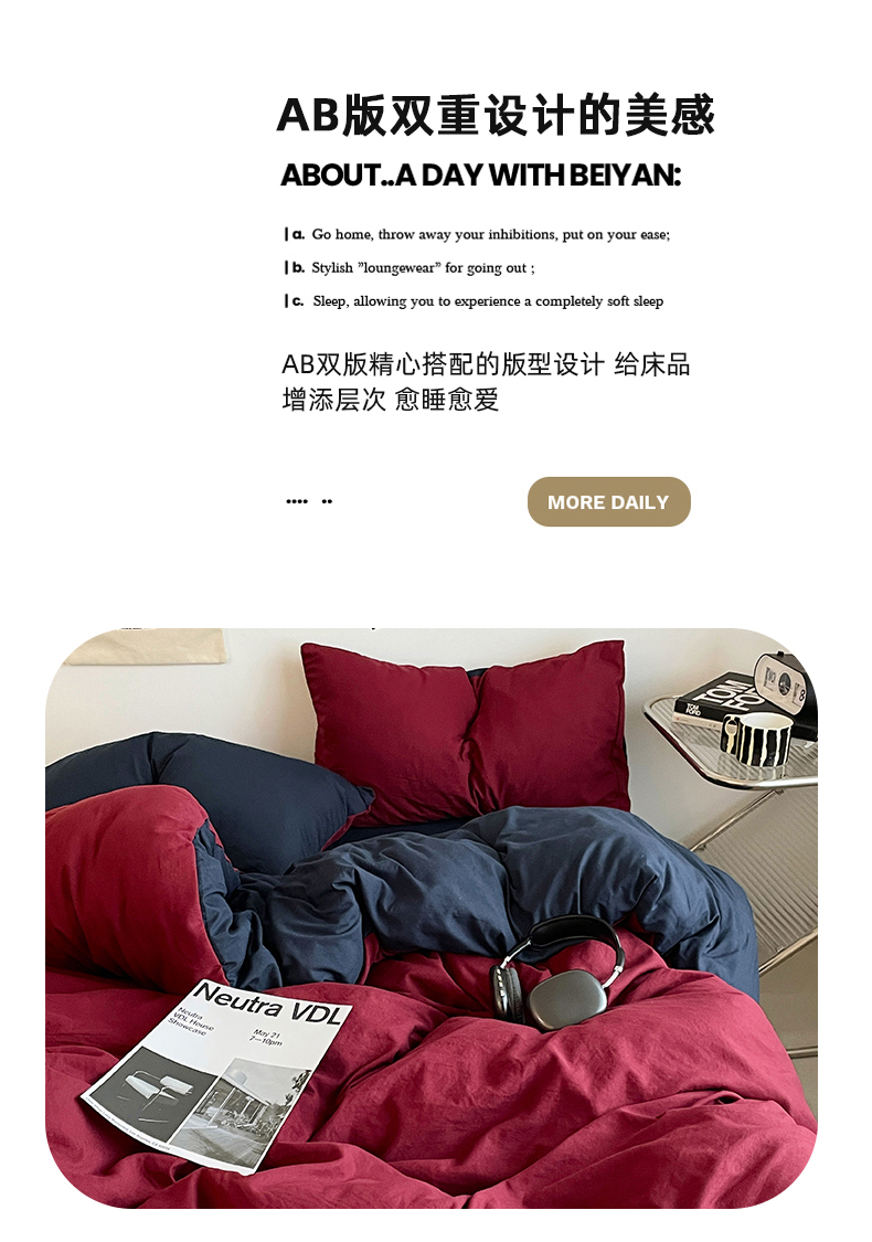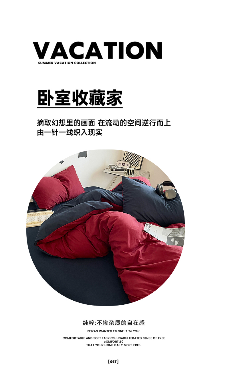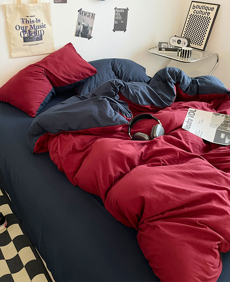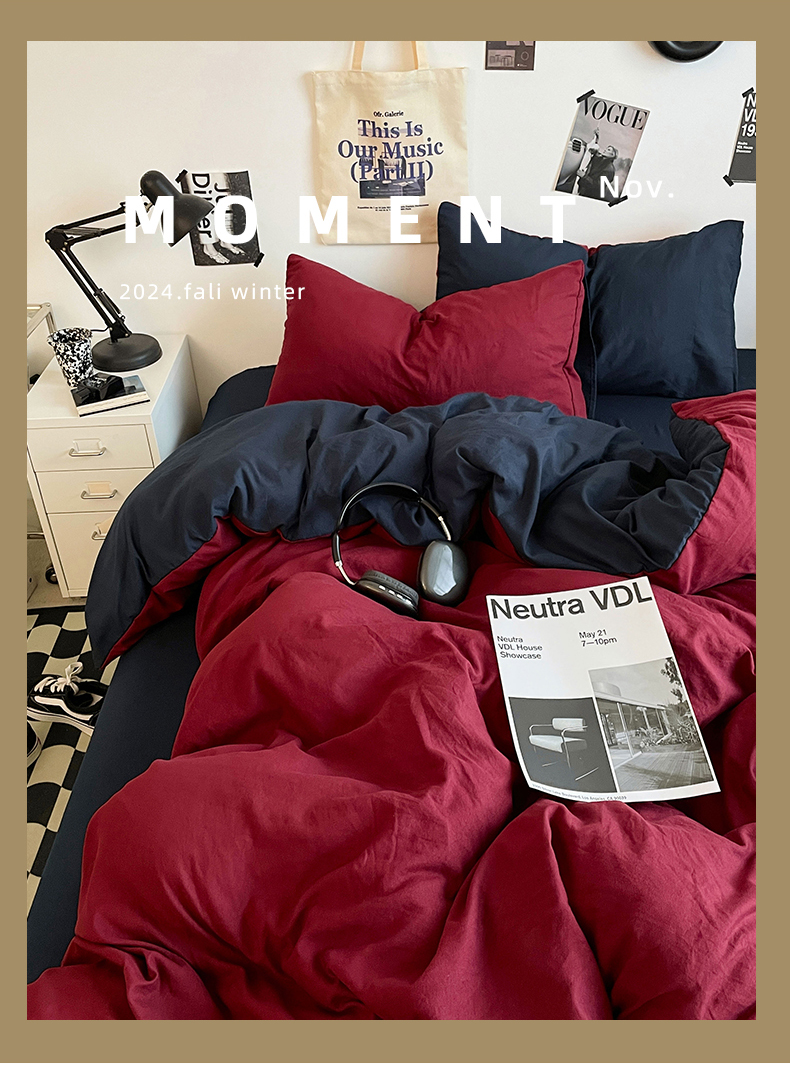 当前位置: 91家纺网 > 商品网购 > 床品套件 > 四件套 > 水洗棉四件套 > 思诺羽床笠 2025新款高克重微皱双拼水洗棉四件套 安哥拉红+星空蓝