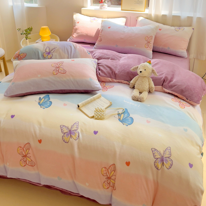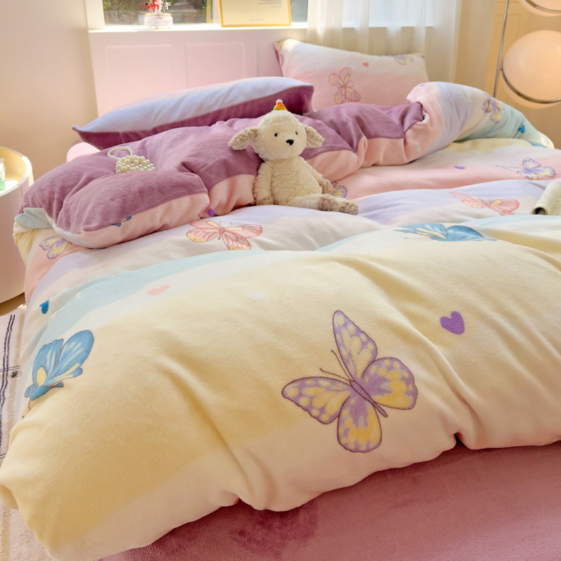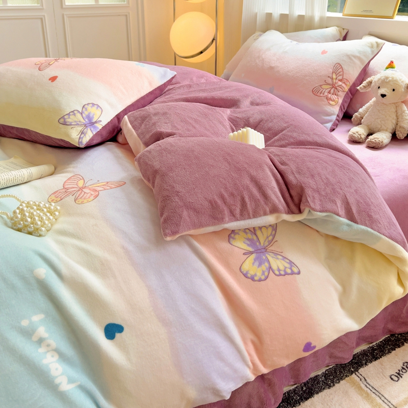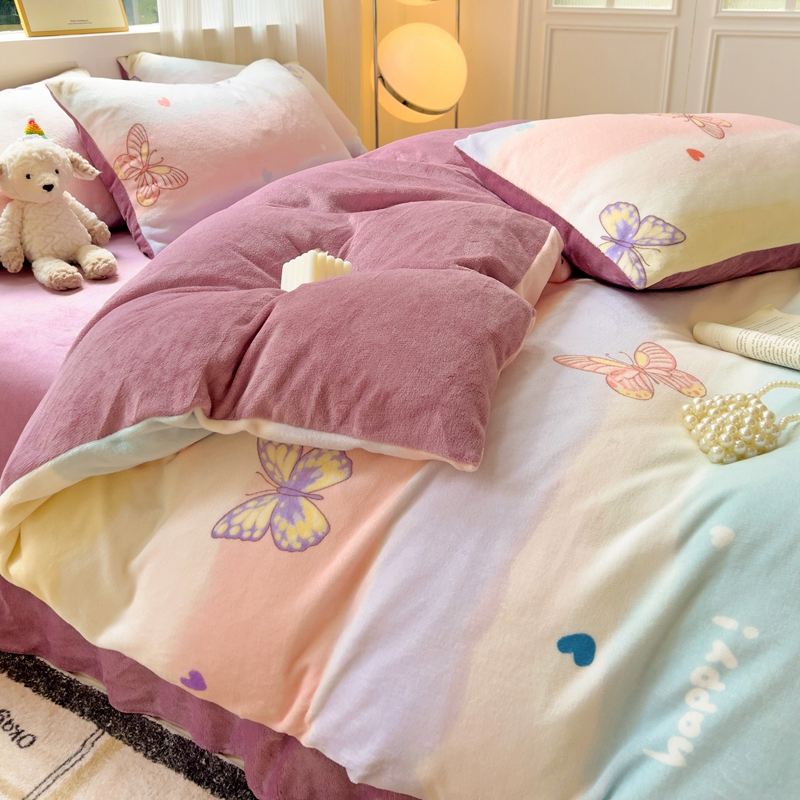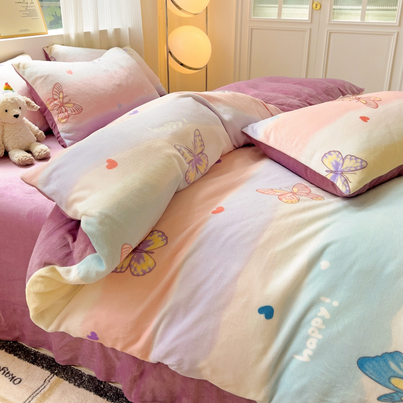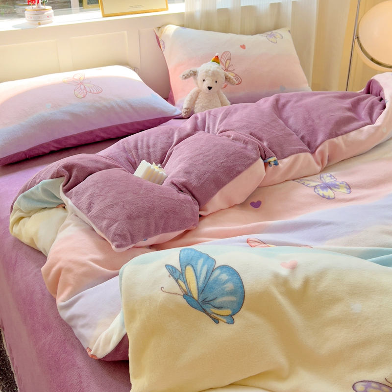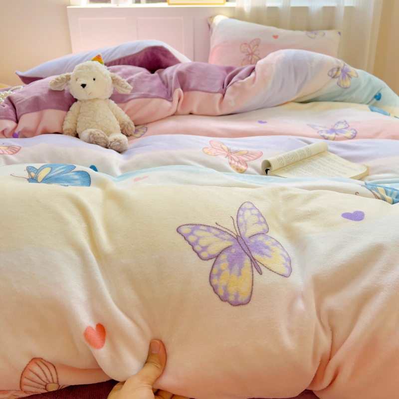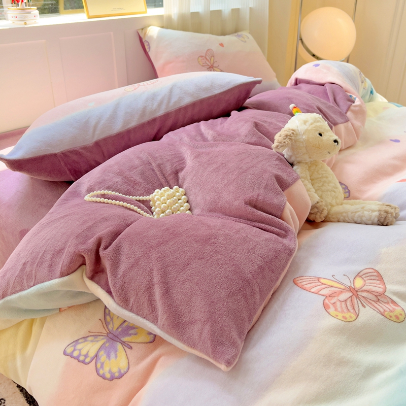 玉海棠家纺 2024新款6.5斤牛奶绒四件套 紫色蝴蝶