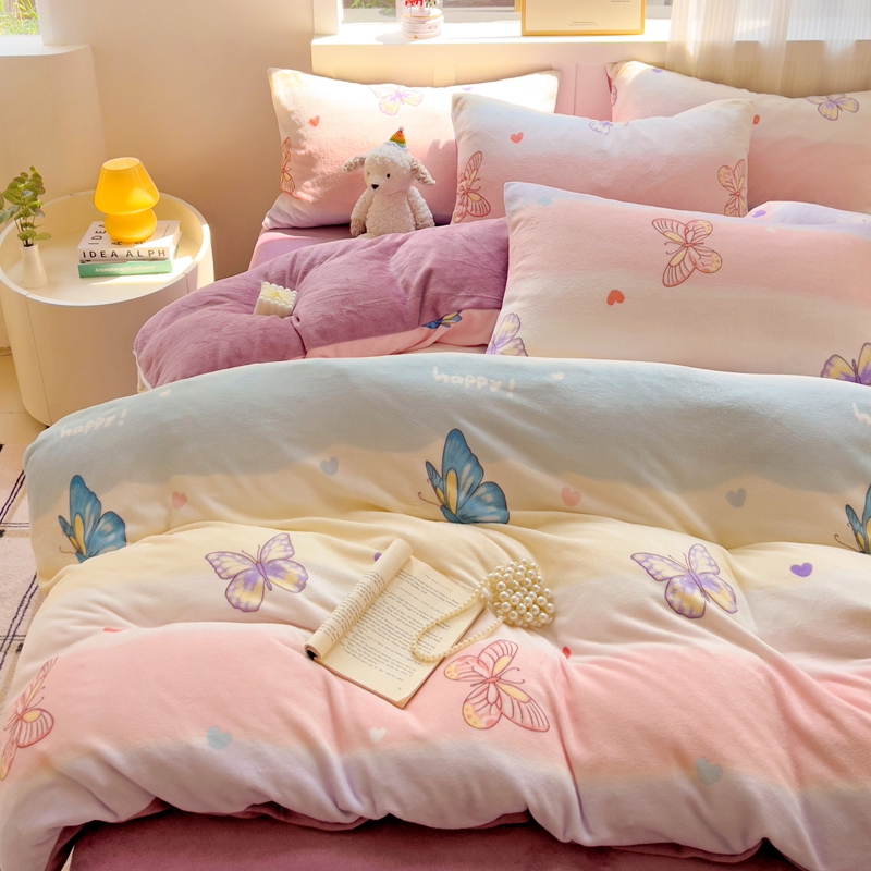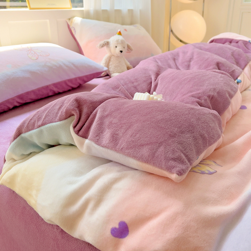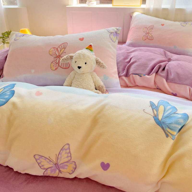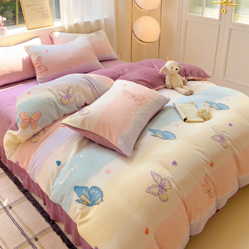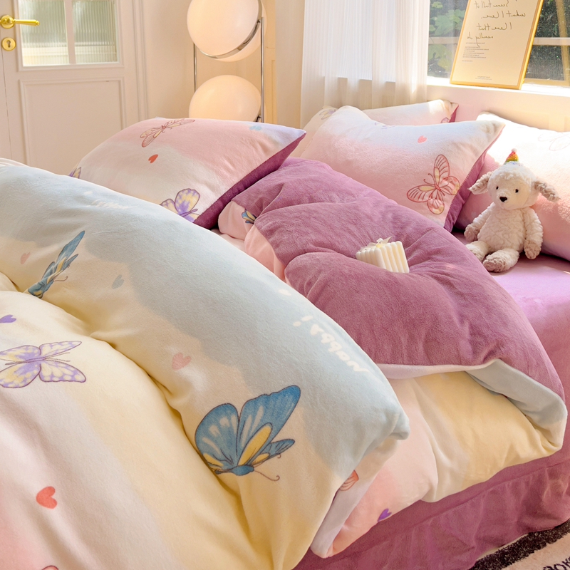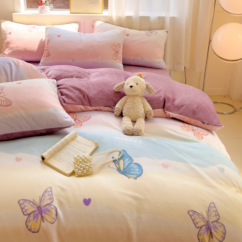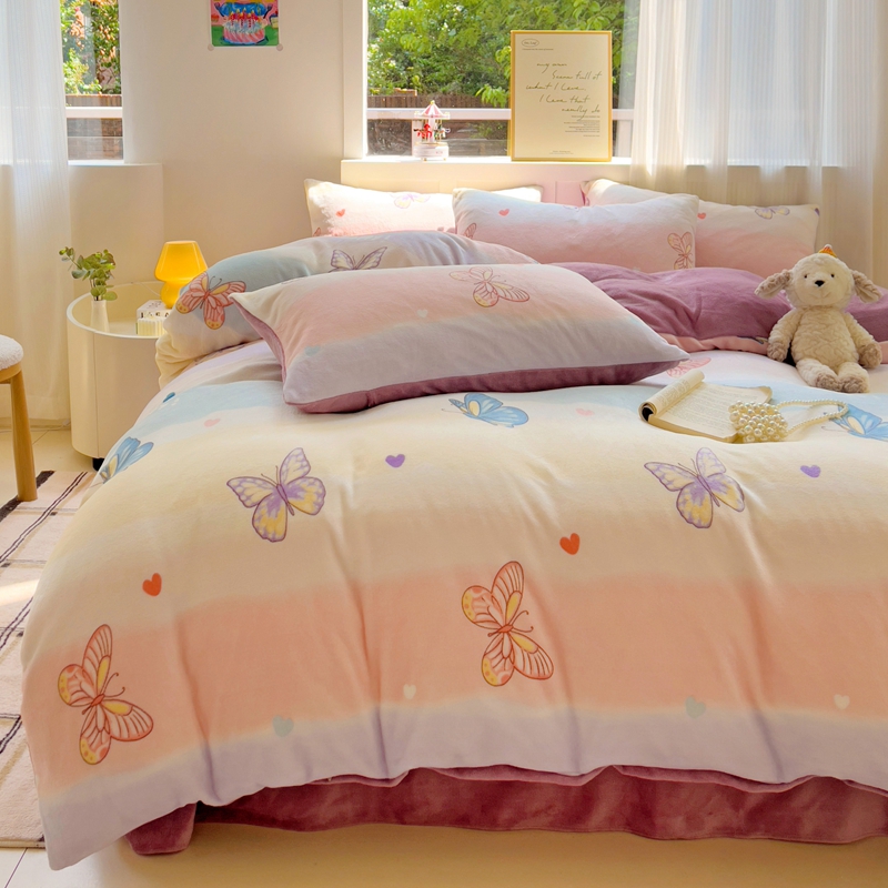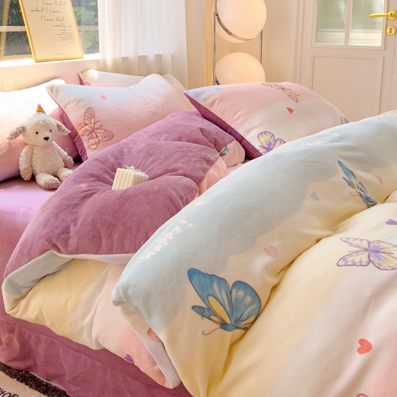 玉海棠家纺 2024新款6.5斤牛奶绒四件套 紫色蝴蝶