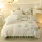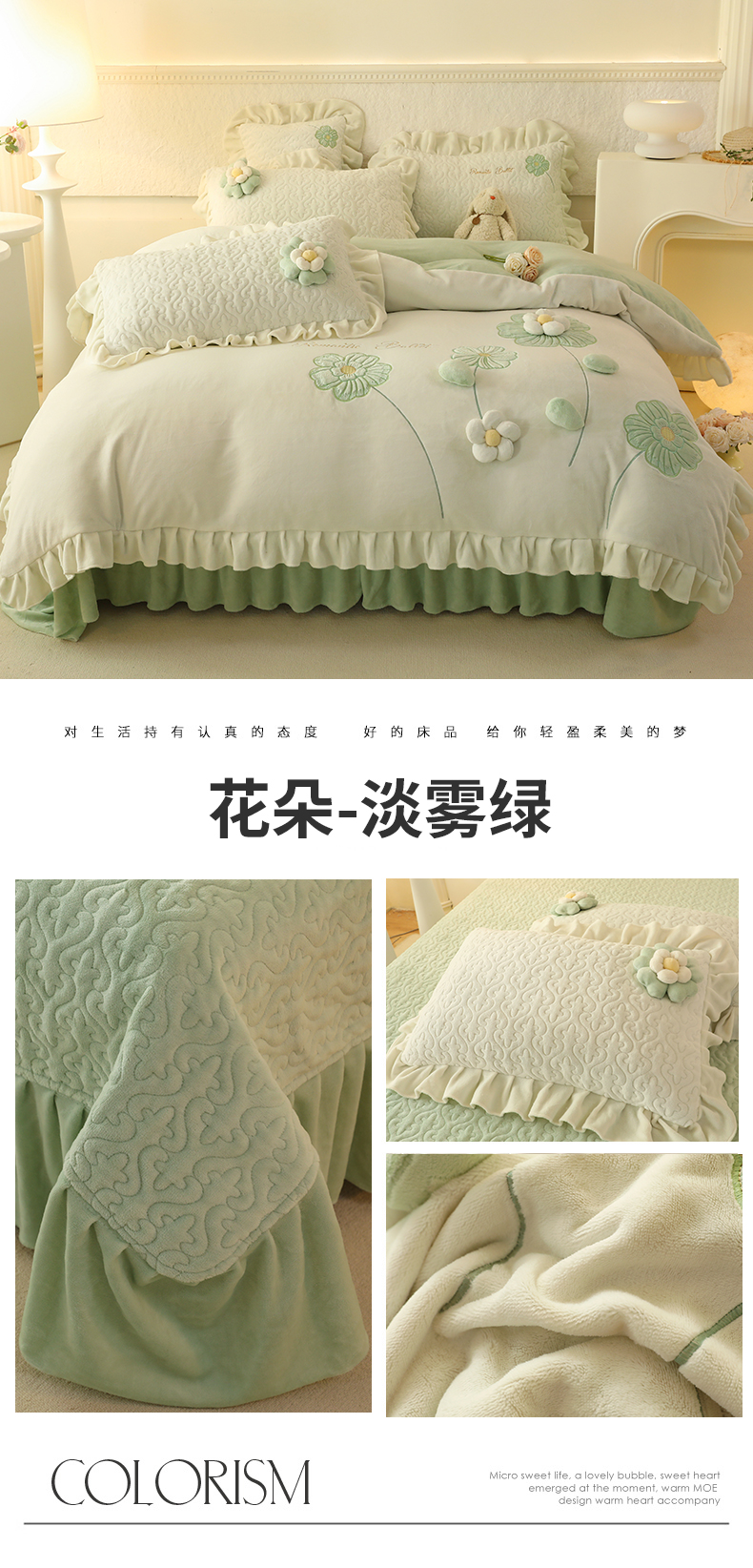 绒棉世家 2025A类高克重牛奶绒床盖款韩版立体花四件套-花朵系列花朵-淡雾绿