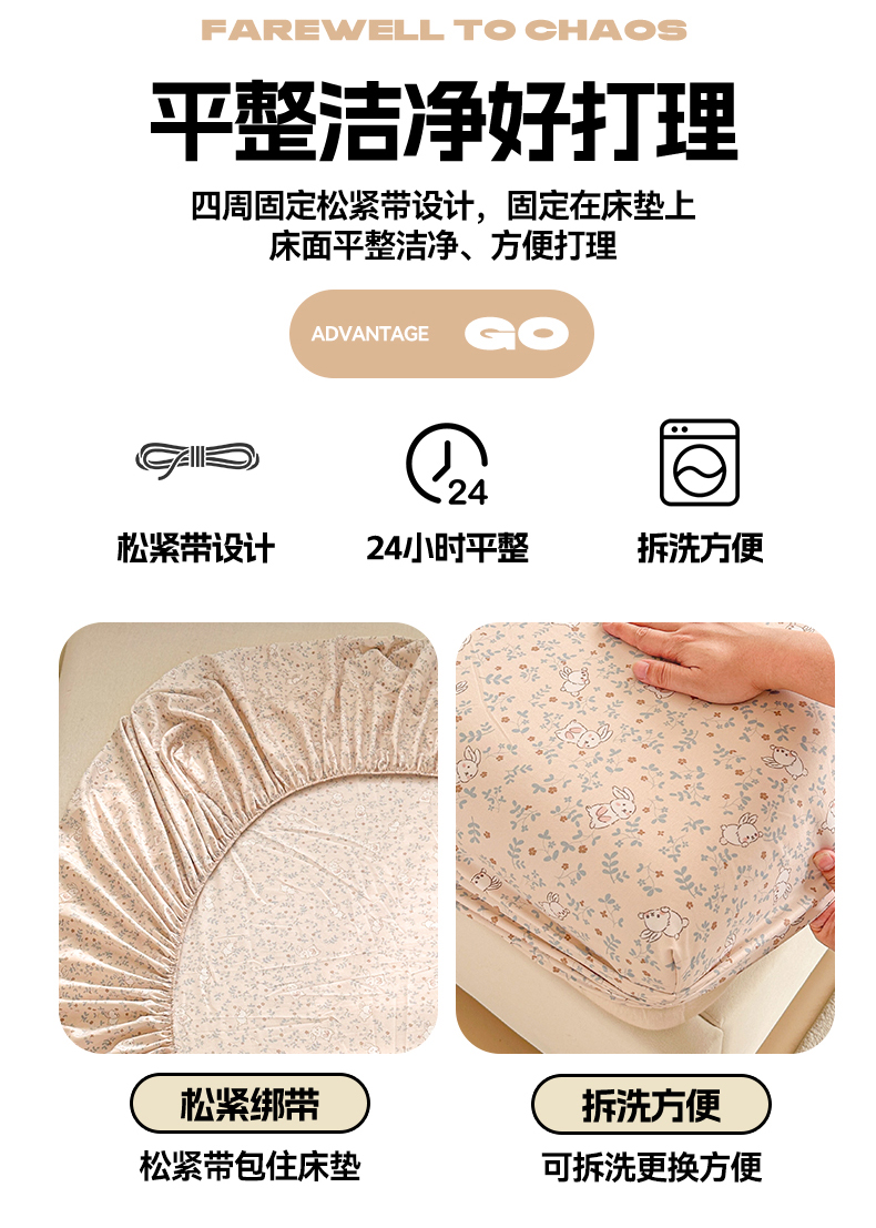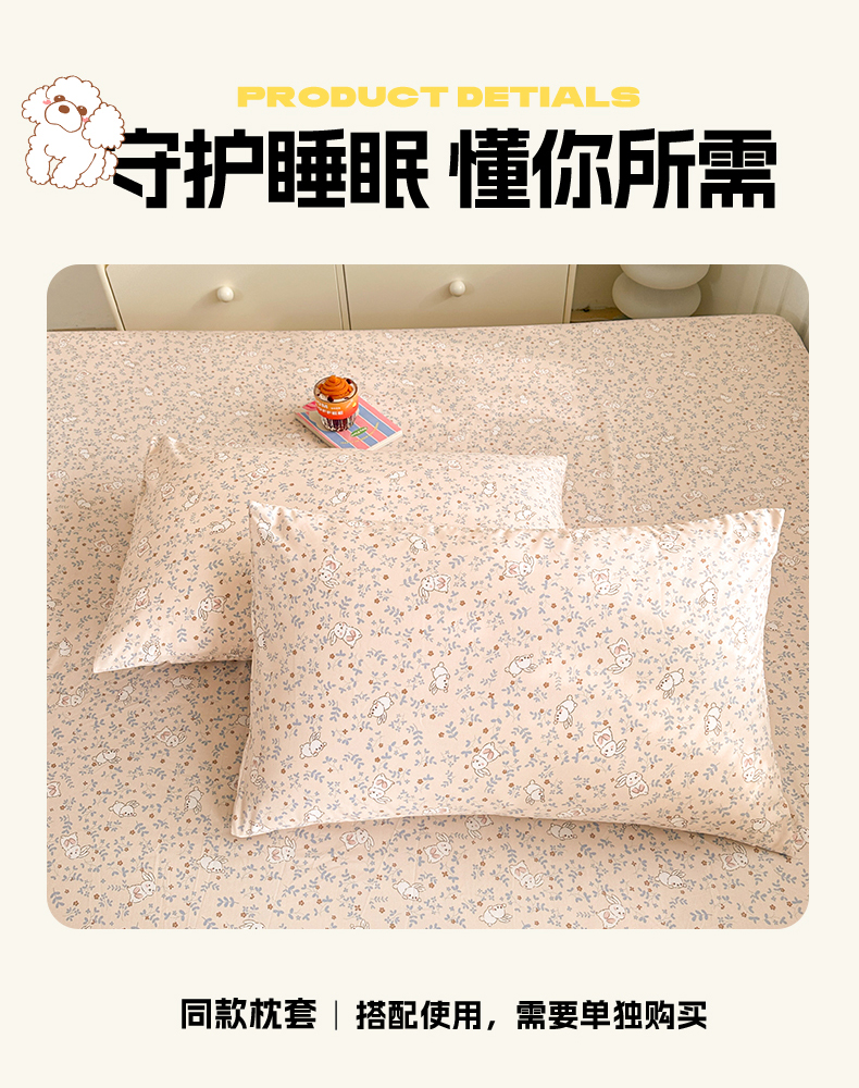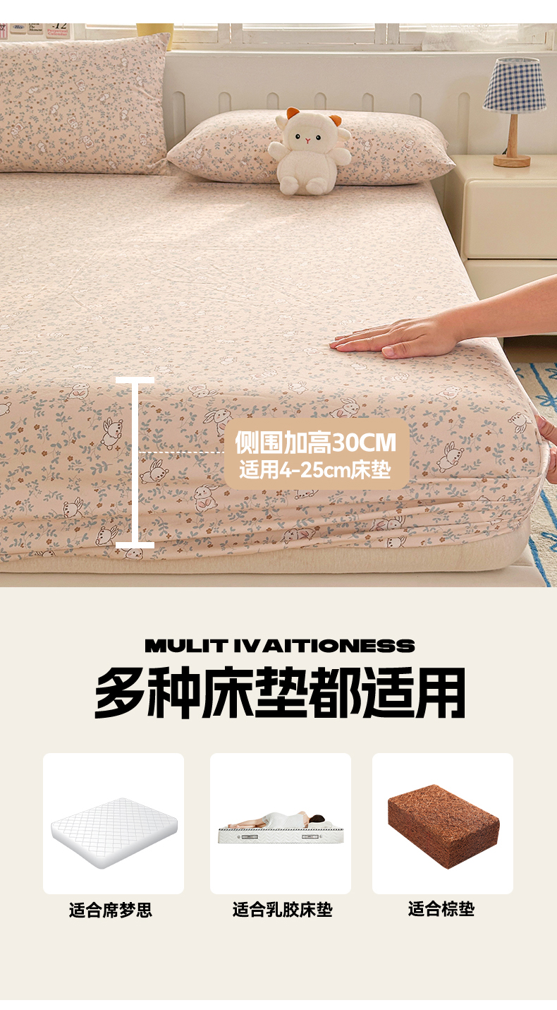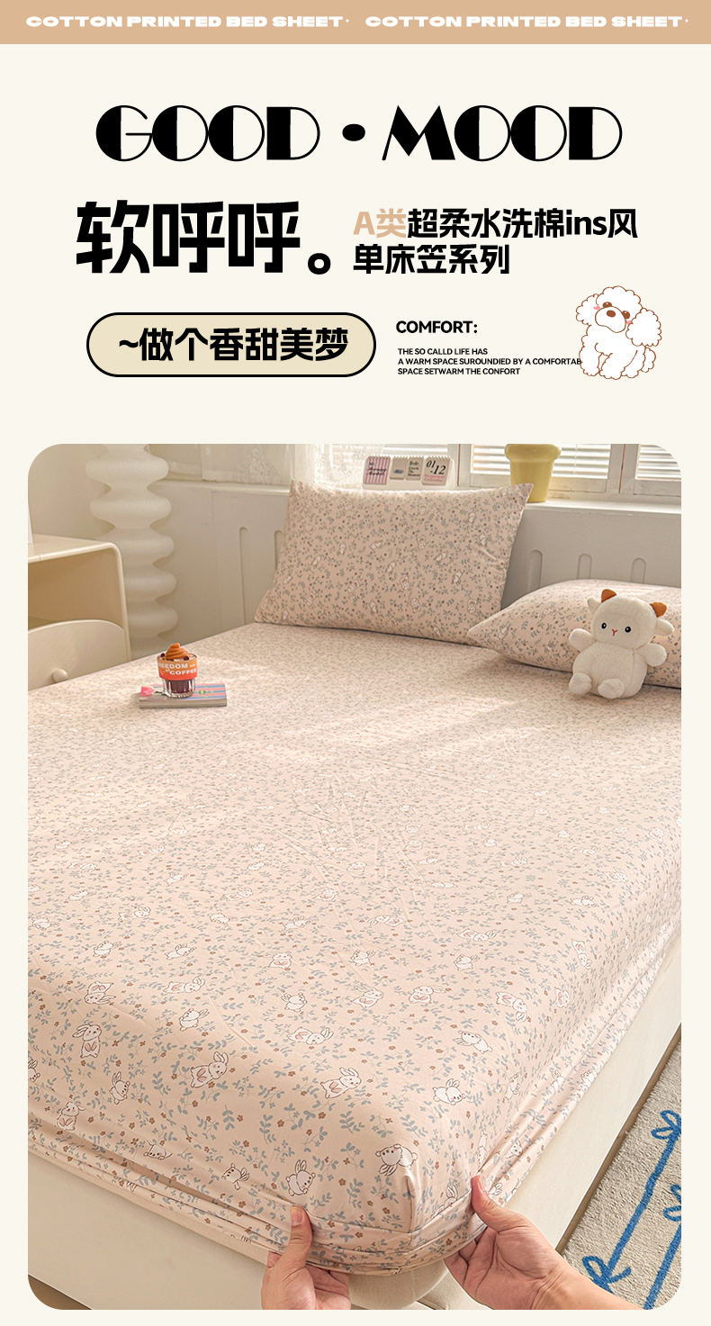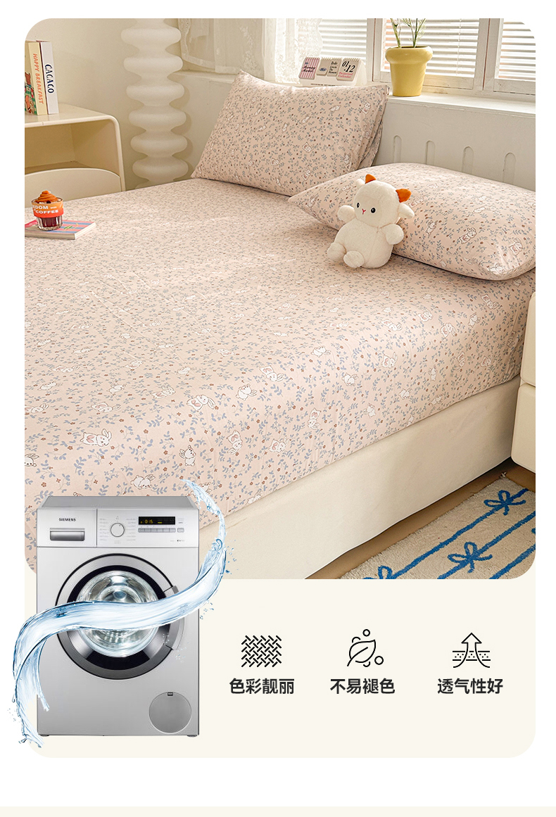 多品家纺 2024新款超柔水洗棉ins风单品床笠花园兔