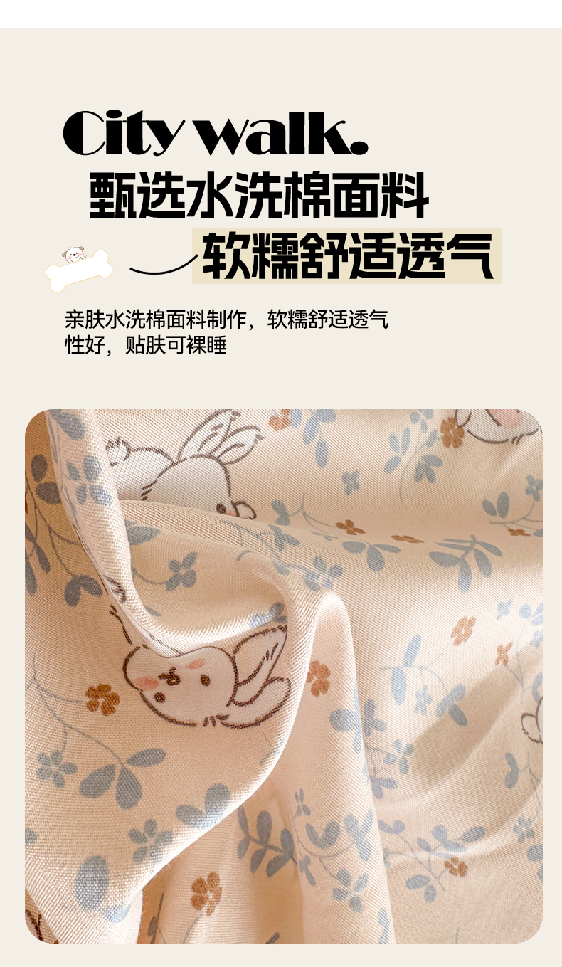• 91家纺网 家纺一手货源 找家纺 多品家纺 2024新款超柔水洗棉ins风单品床笠花园兔