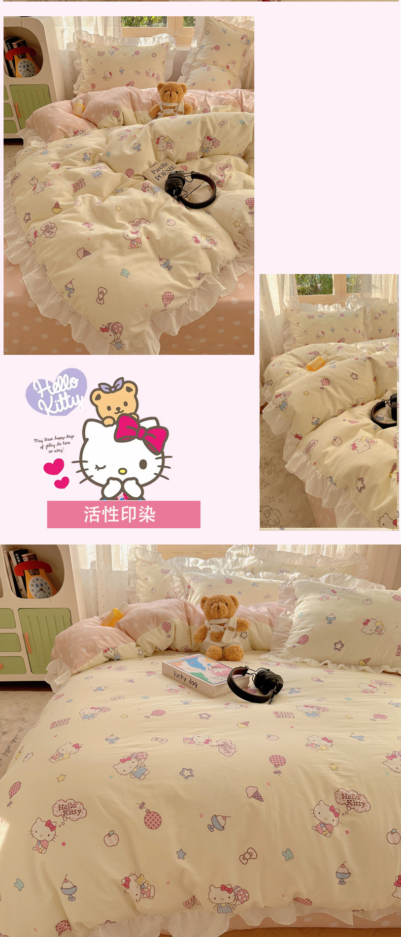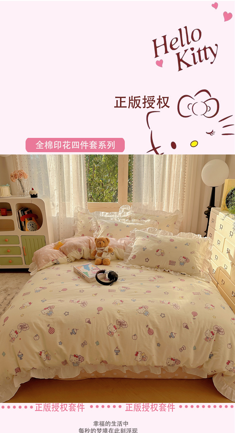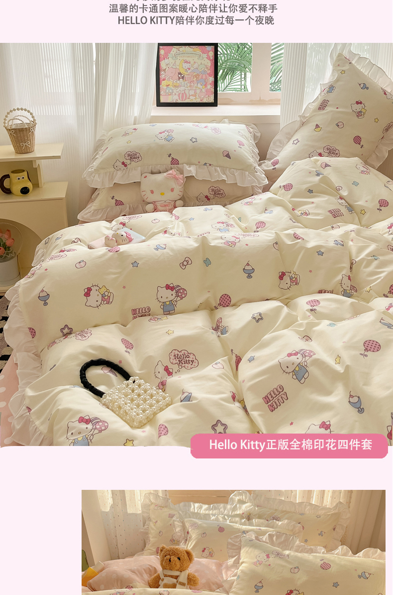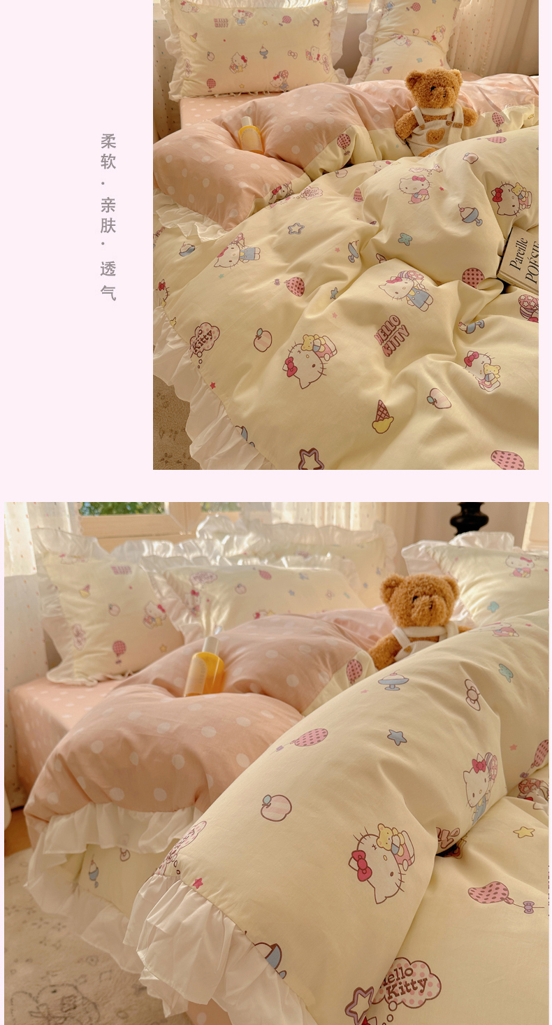 商品名称:三朵家纺 2025新款全棉花边款三丽欧系列四件套 甜筒凯蒂