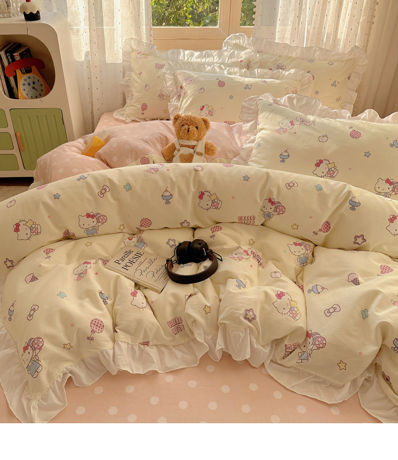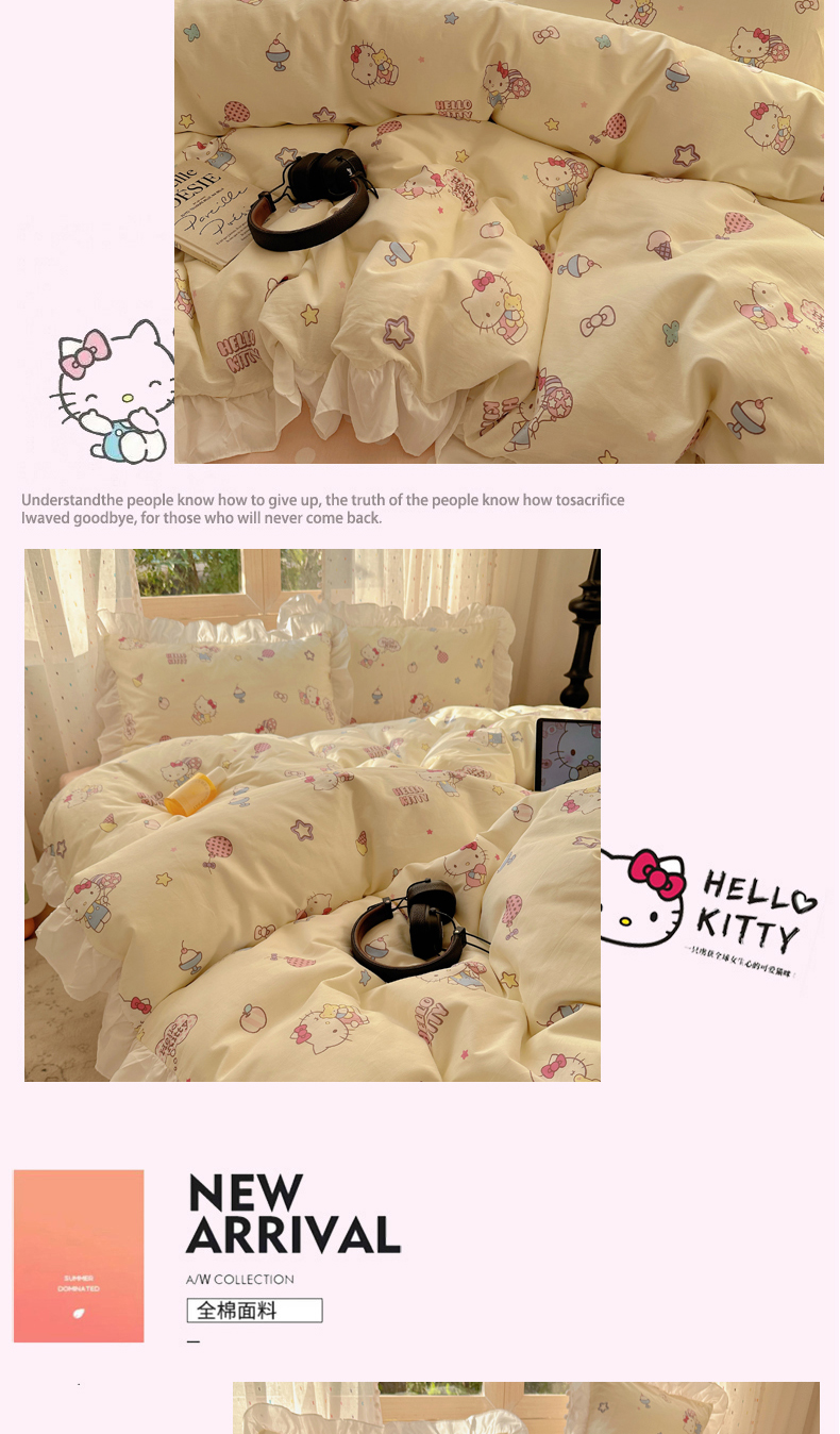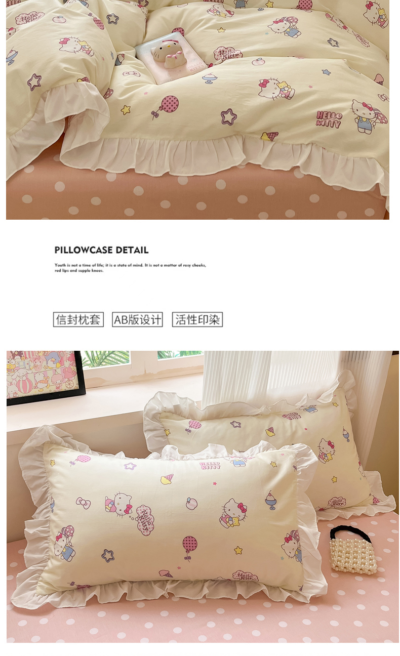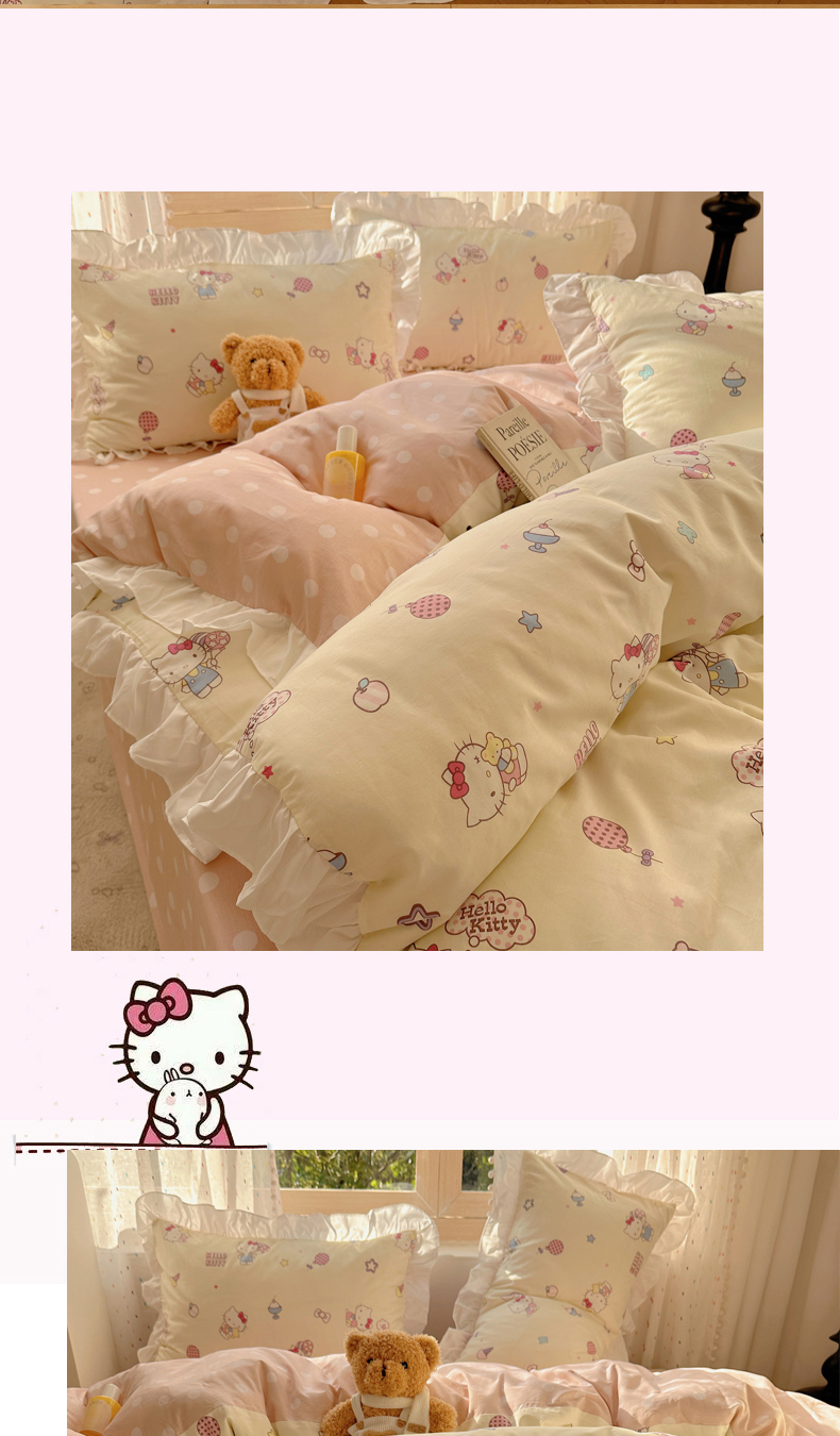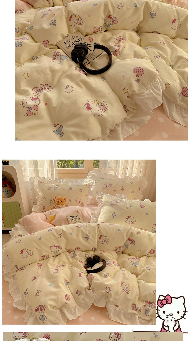 商品名称:三朵家纺 2025新款全棉花边款三丽欧系列四件套 甜筒凯蒂
