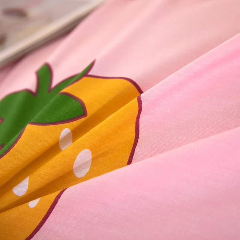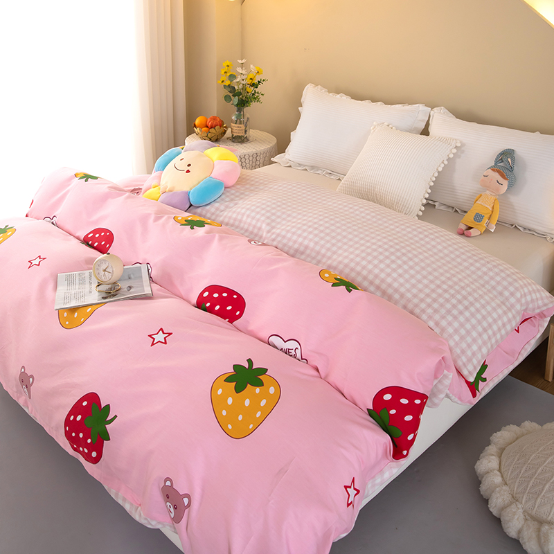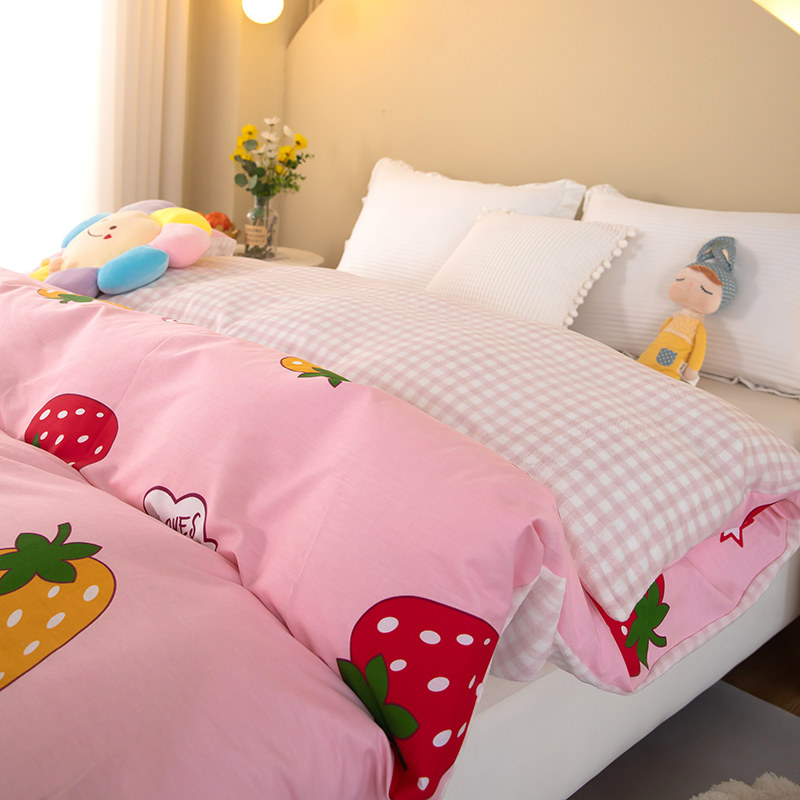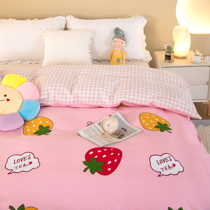 2025新款纯棉加牛奶绒被套 草莓可爱