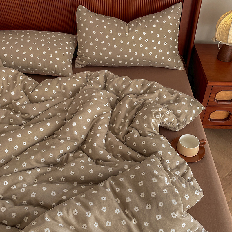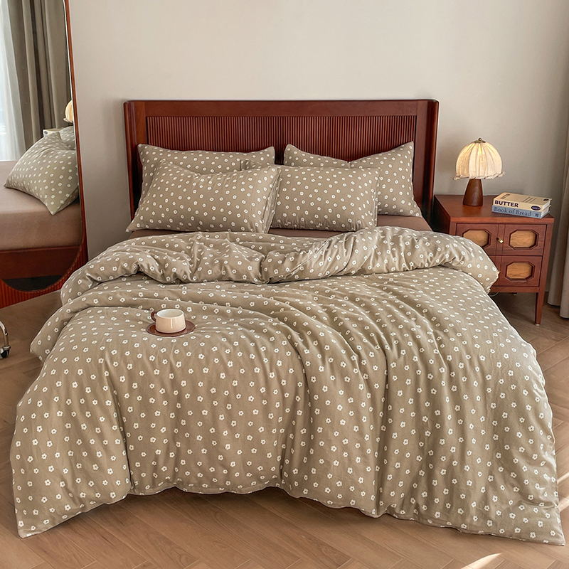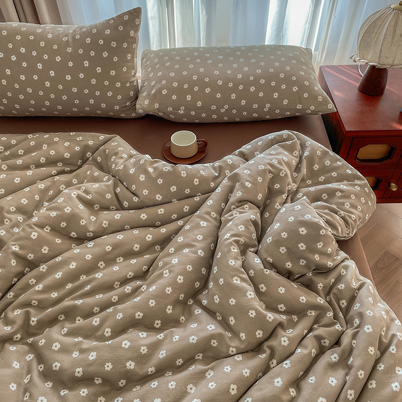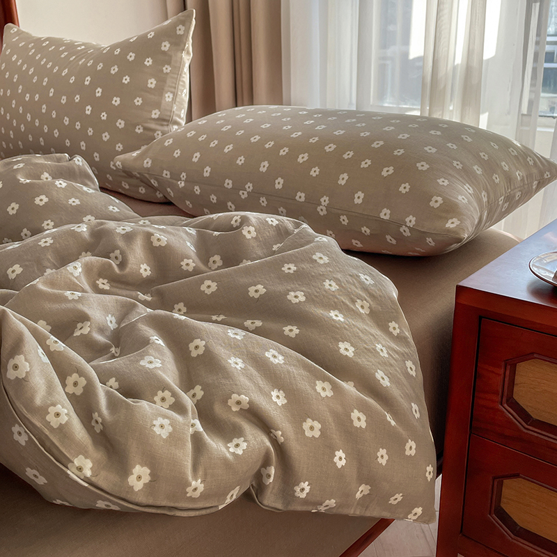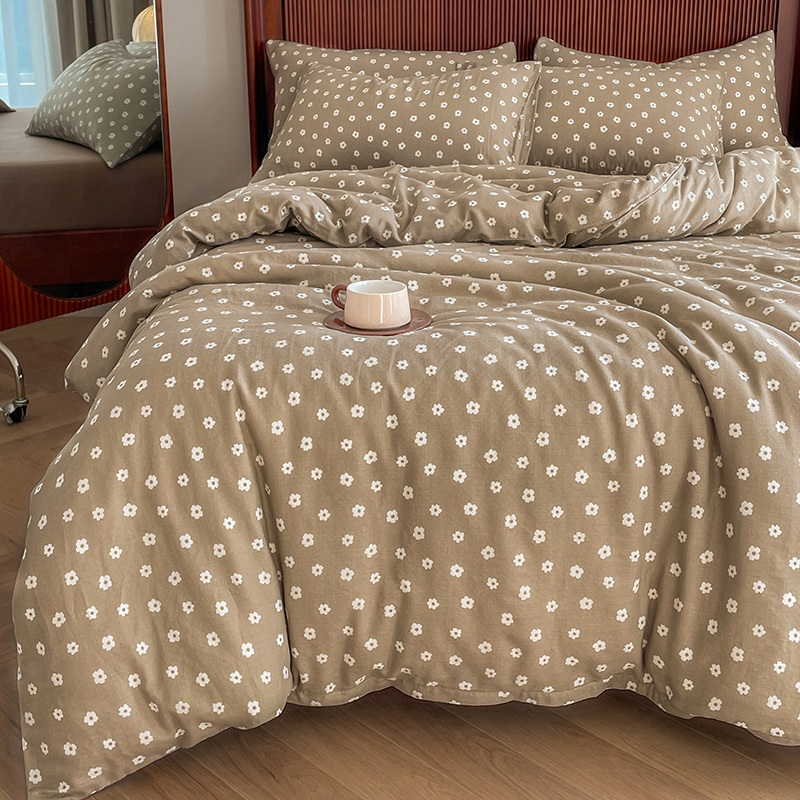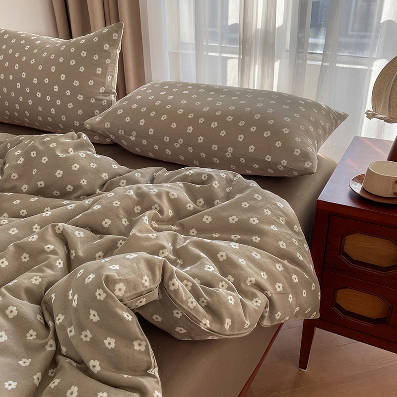 一比一家纺 2025新款全棉母婴级抗菌有氧全棉双层纱亲肤全棉小清新印花三件套四件套 洛可可