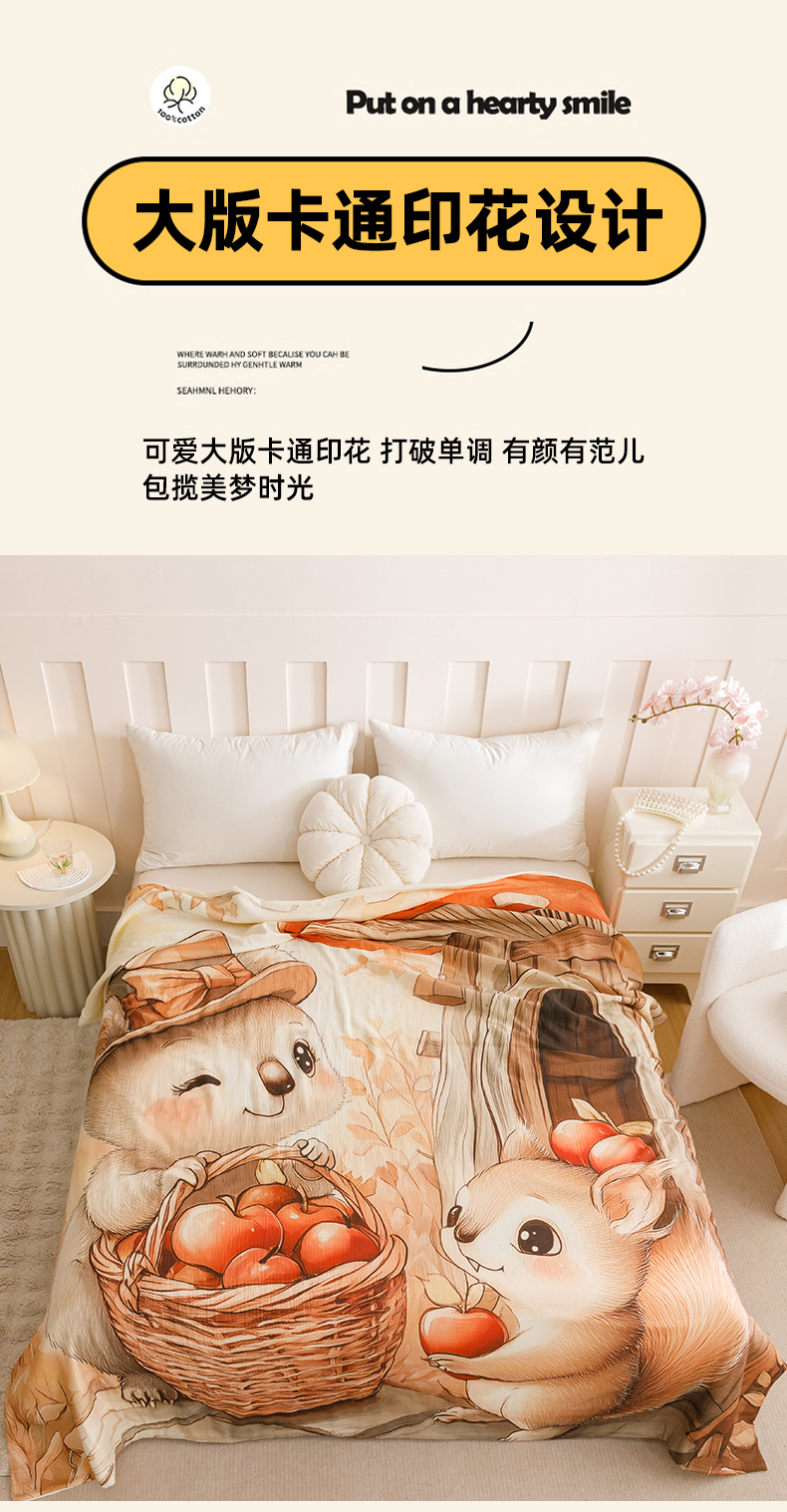 商品名称:悦然毛巾被 2025新款全棉六层纱布卡通儿童夏被-儿童床 松宝果趣