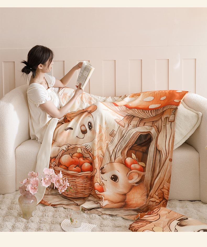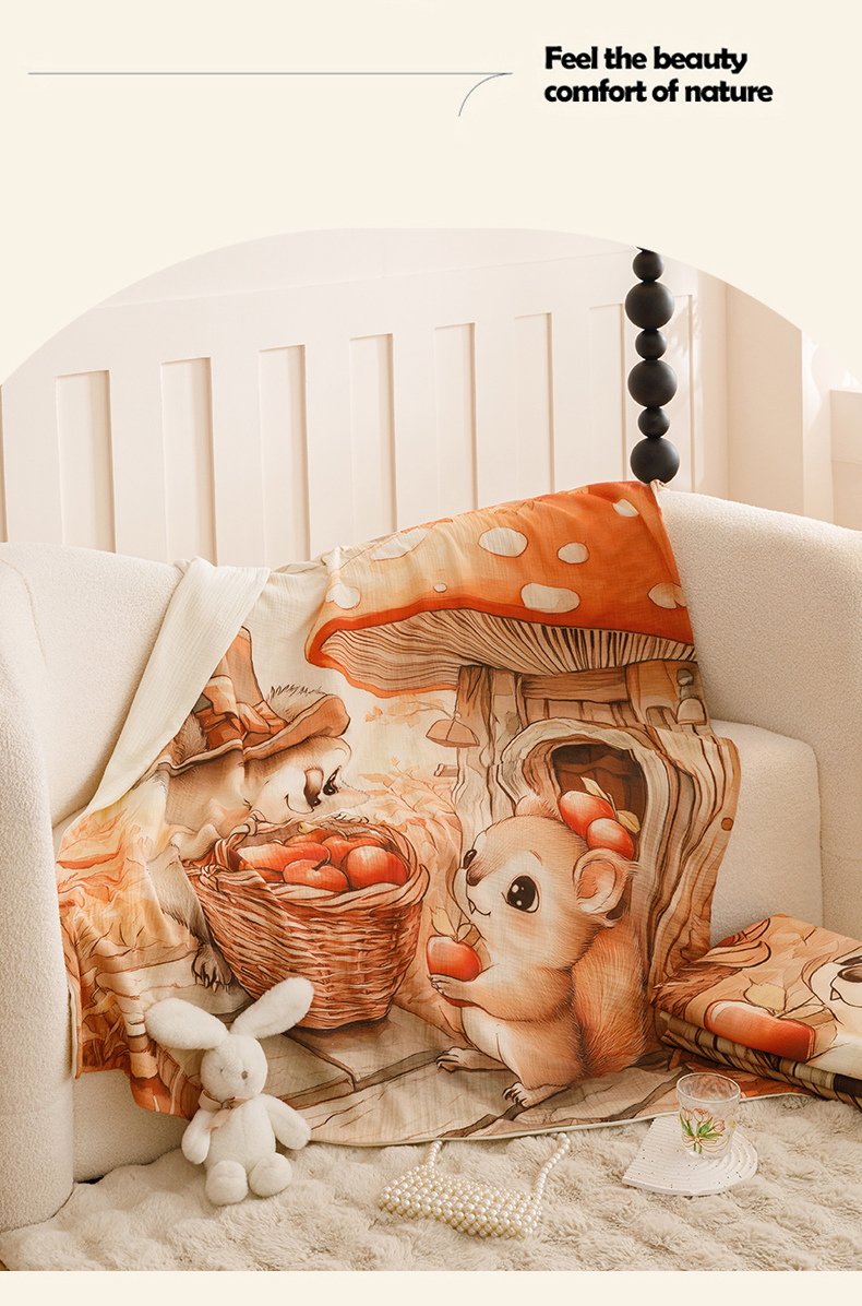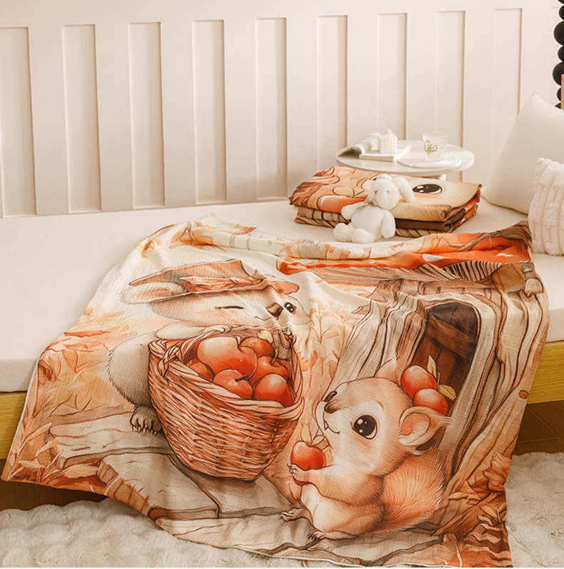 悦然毛巾被 2025新款全棉六层纱布卡通儿童夏被-儿童床 松宝果趣