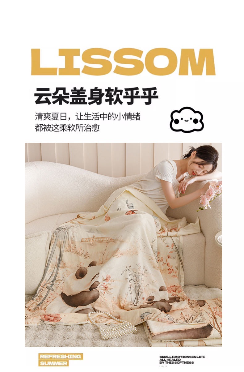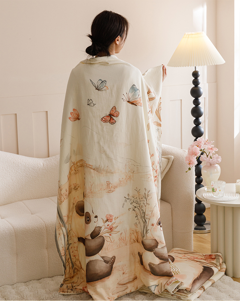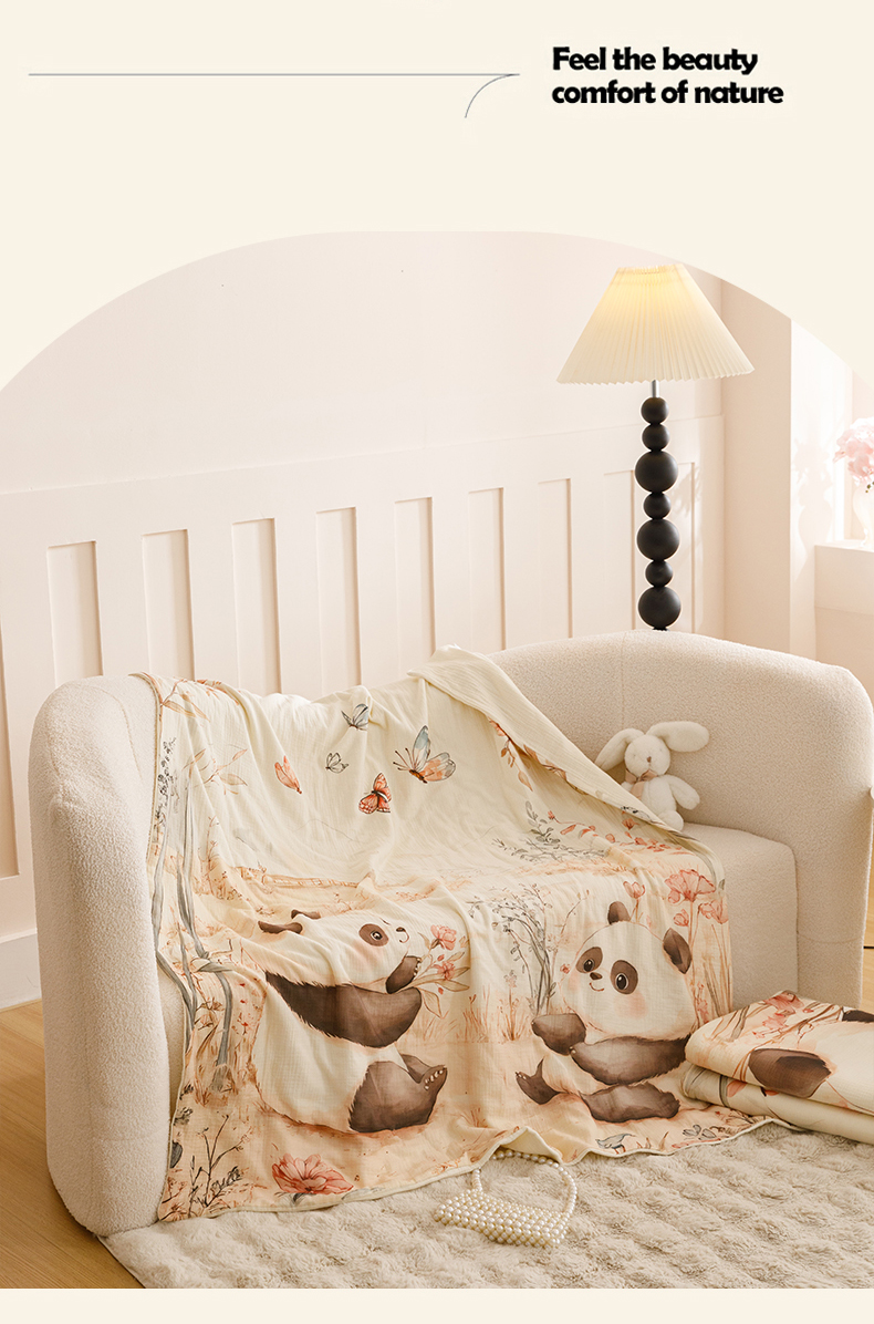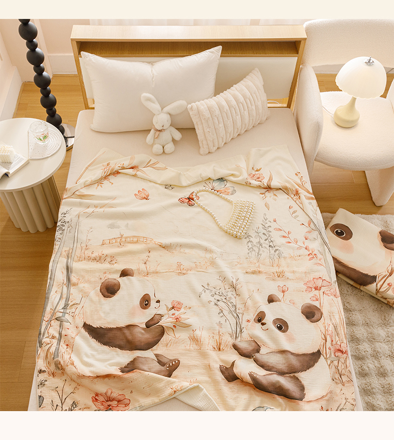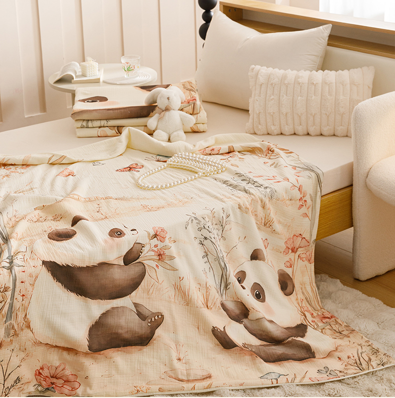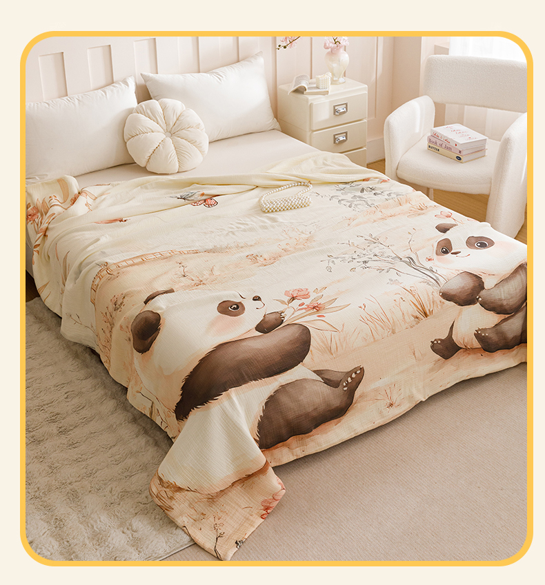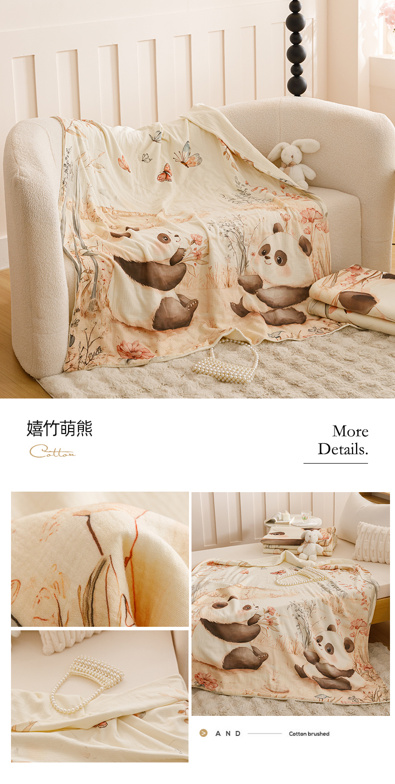 悦然毛巾被 2025新款全棉六层纱布卡通儿童夏被-大床图 嬉竹萌熊