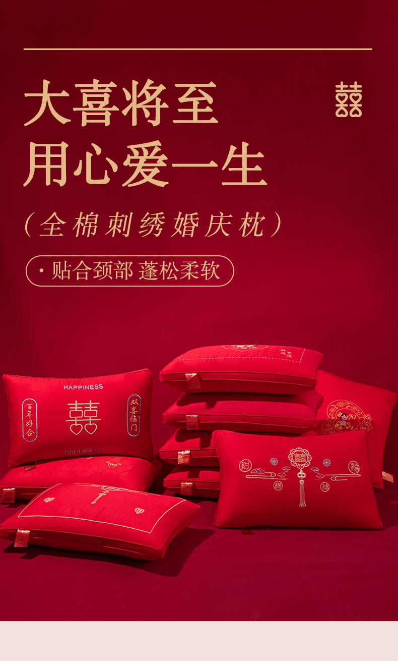 当前位置: 91家纺网 > 商品网购 > 枕头/枕芯/保健枕/颈椎枕 > 普通枕芯 > 织布人 2025新款枕芯以爱之名结两姓之好大红刺绣全棉婚庆枕头枕芯一个 今生只为遇见你