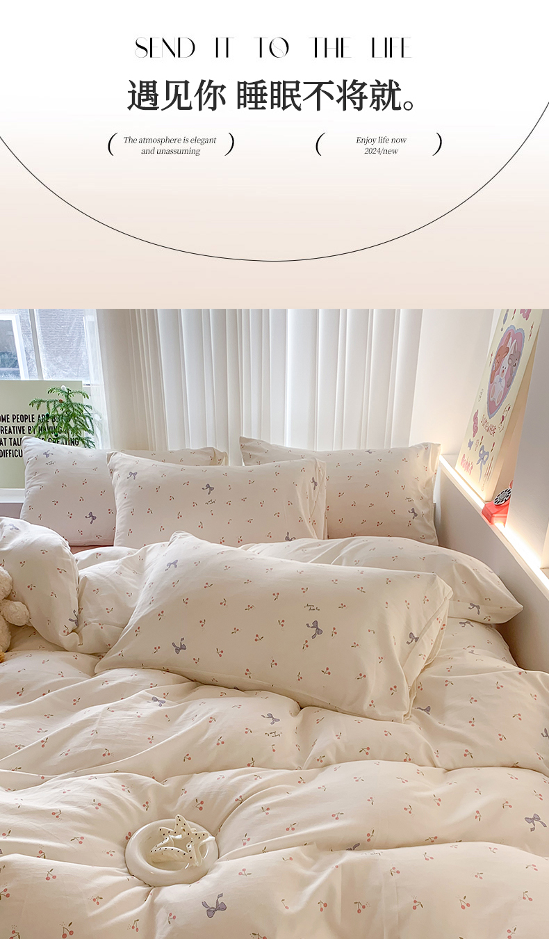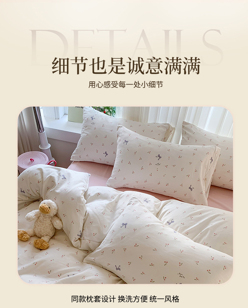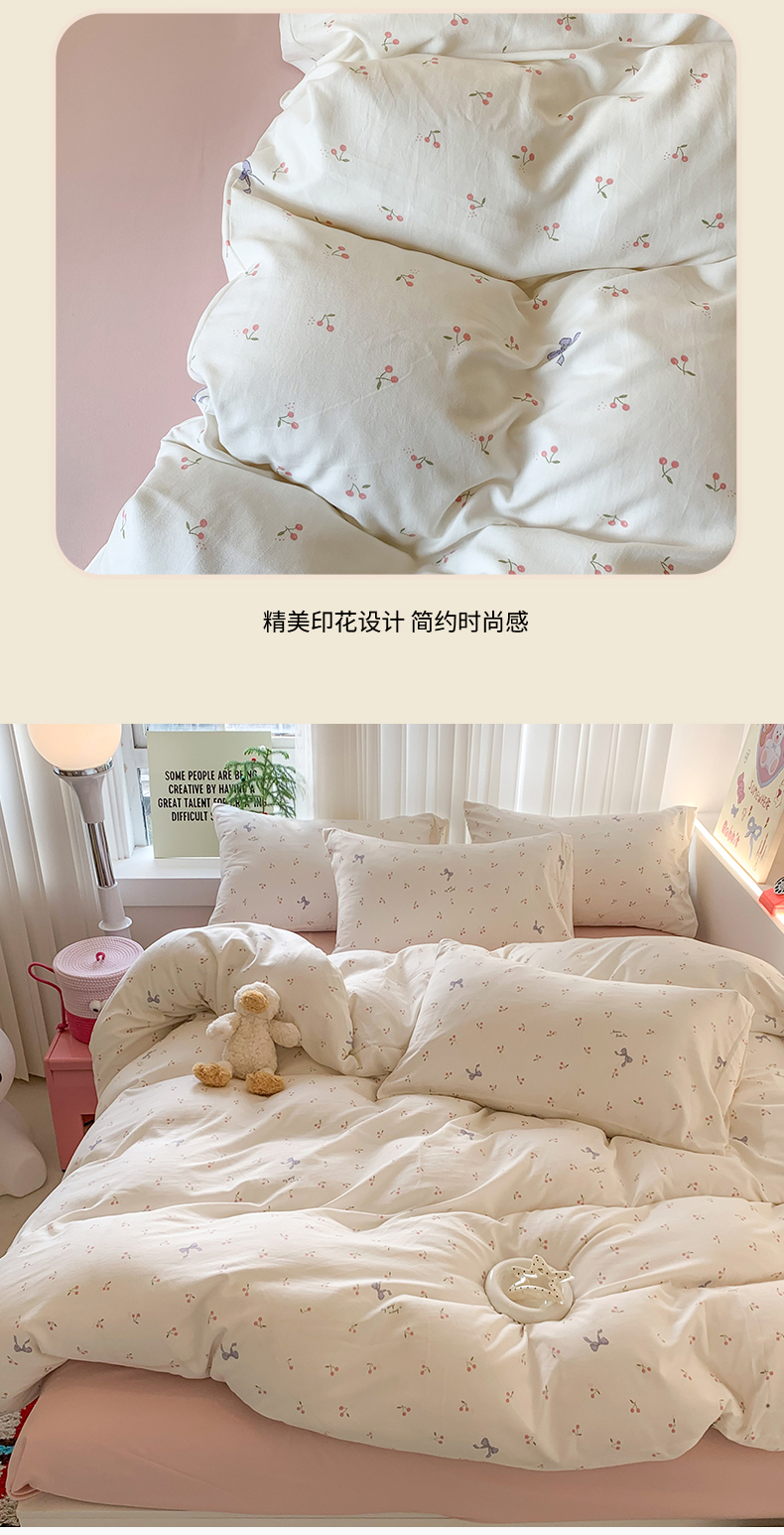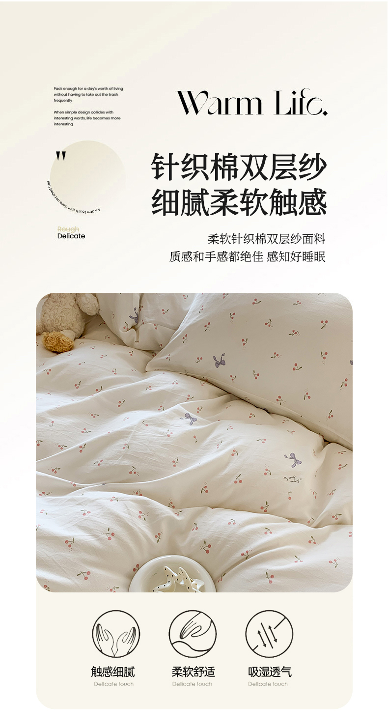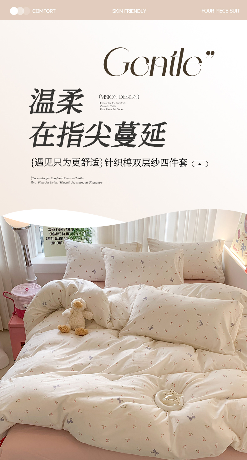 商品名称:吾欢心 2025新款针织棉双层纱四件套 小樱桃