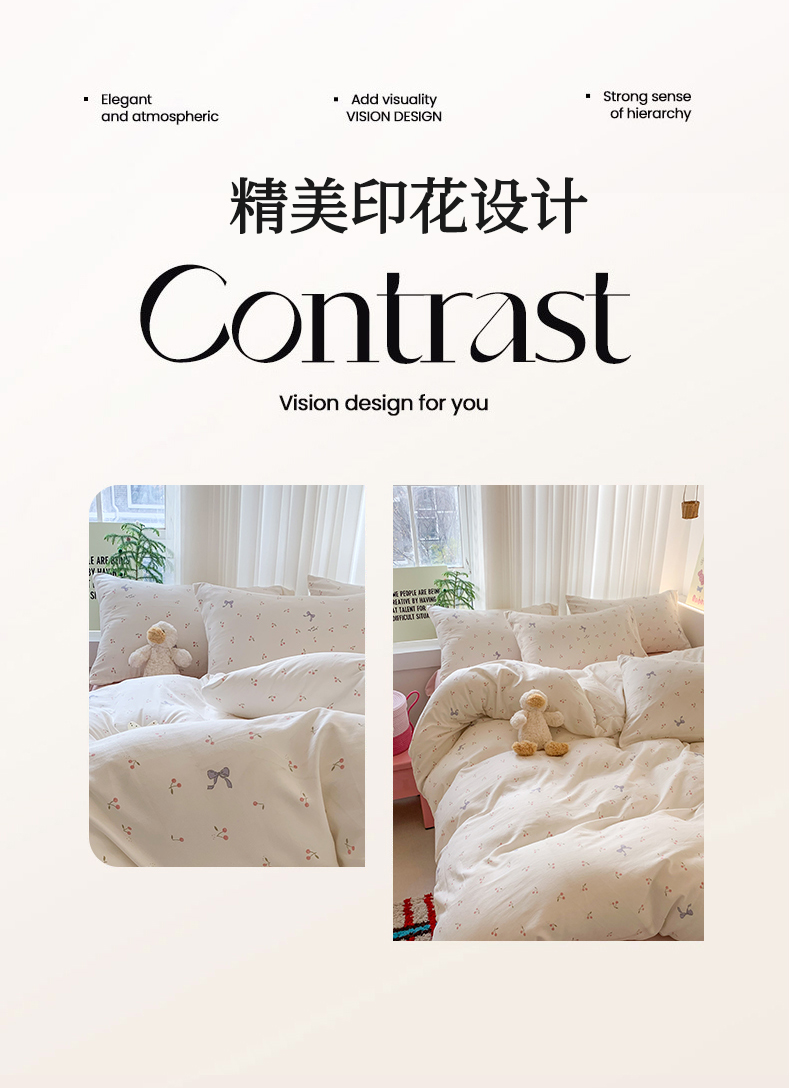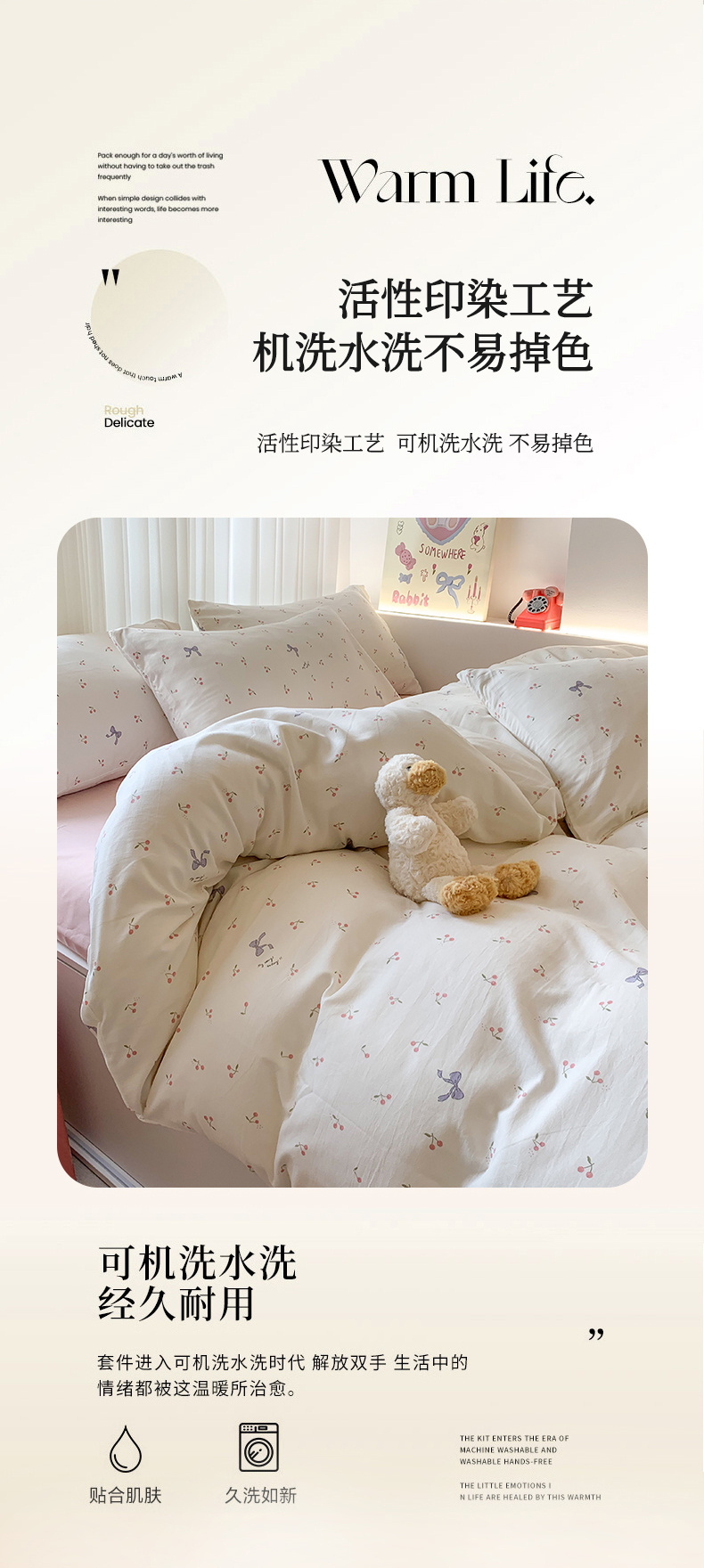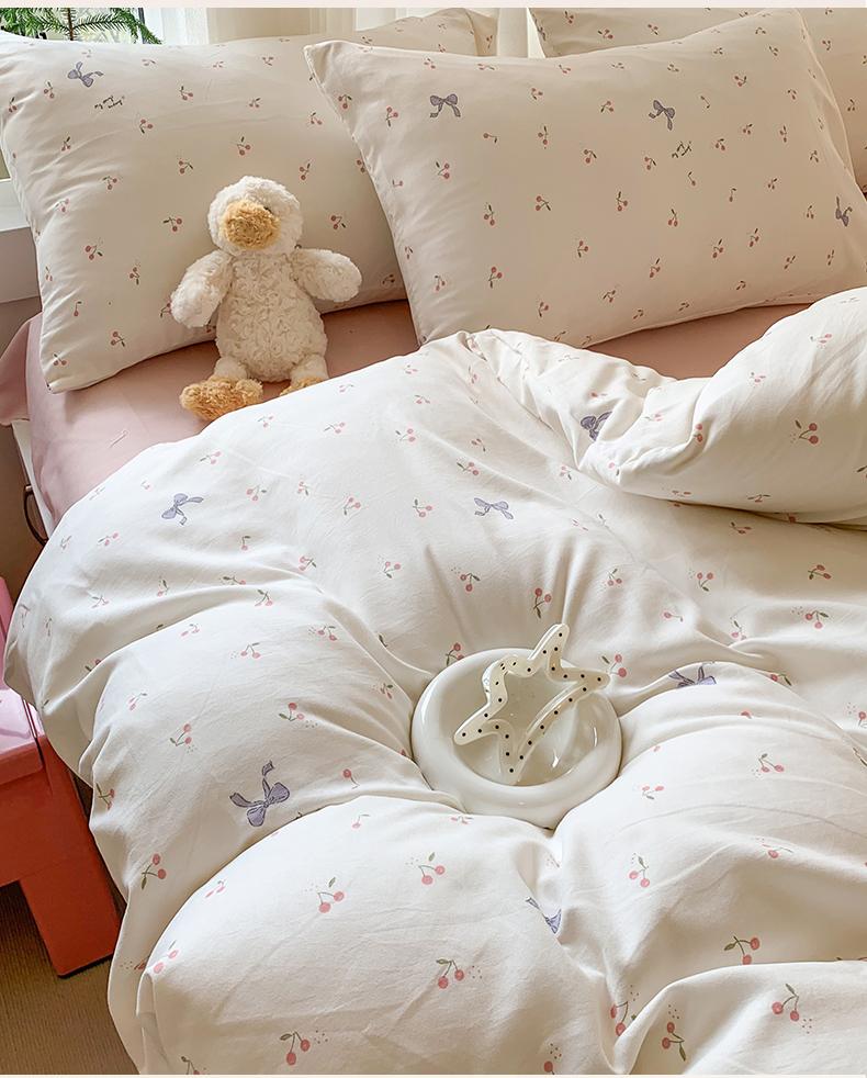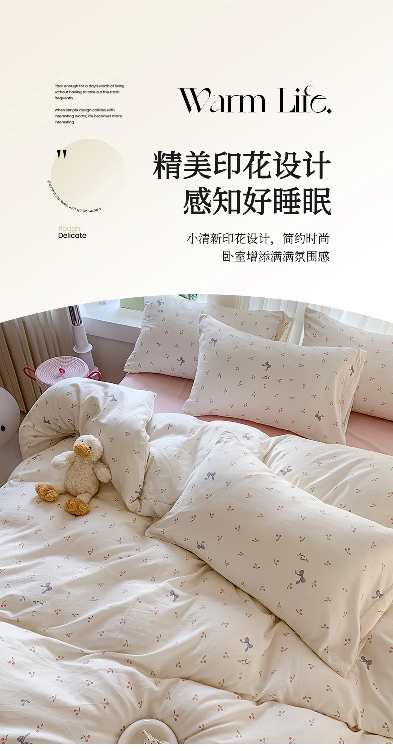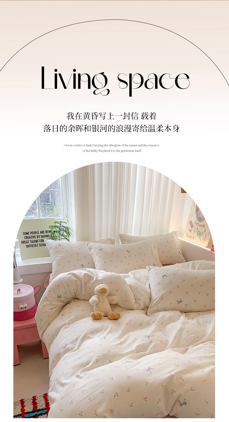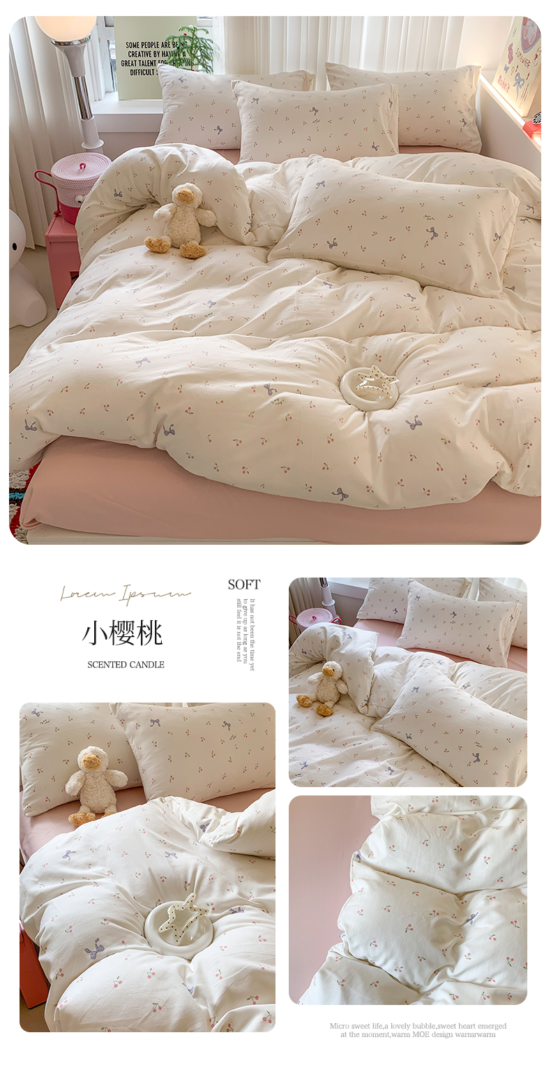商品名称:吾欢心 2025新款针织棉双层纱四件套 小樱桃