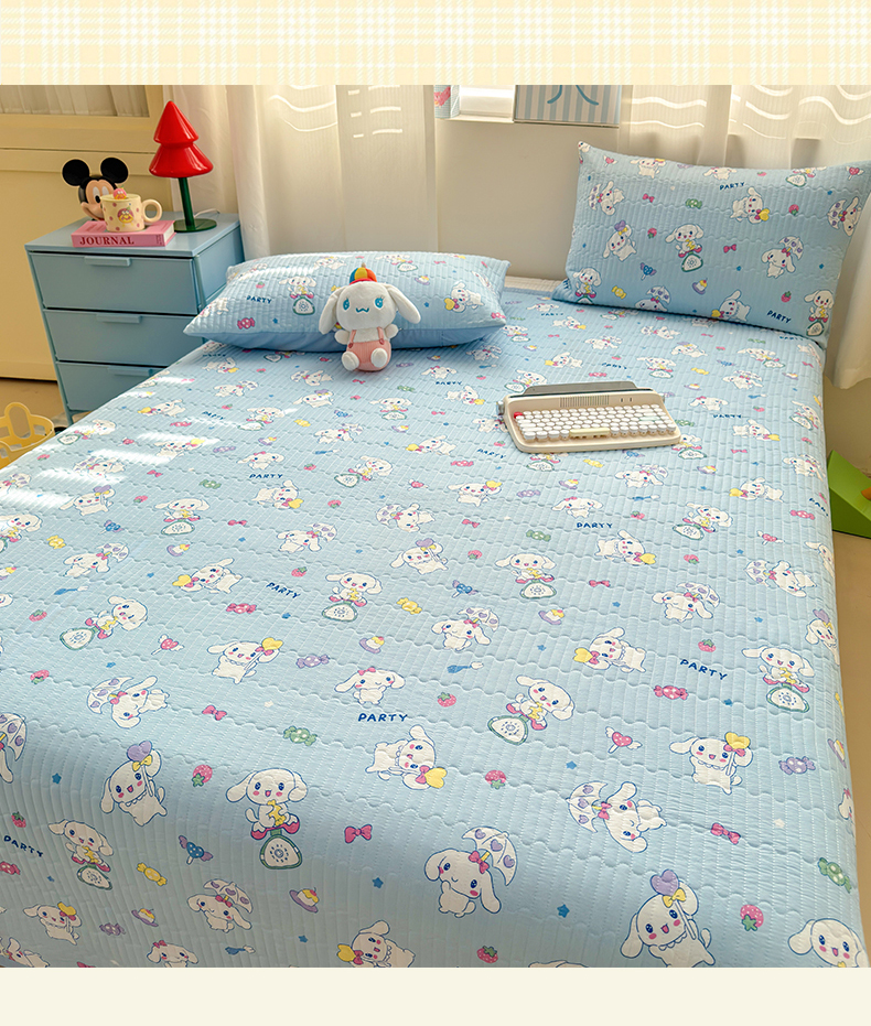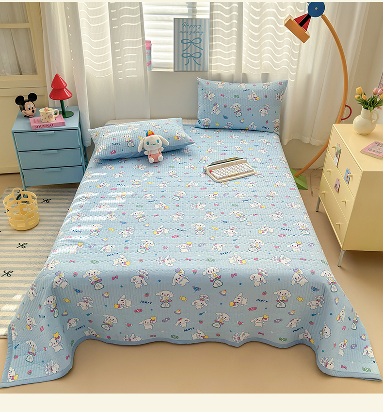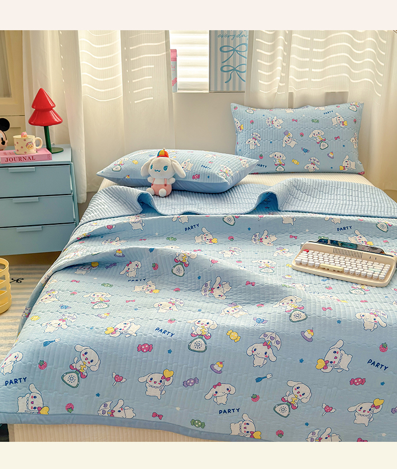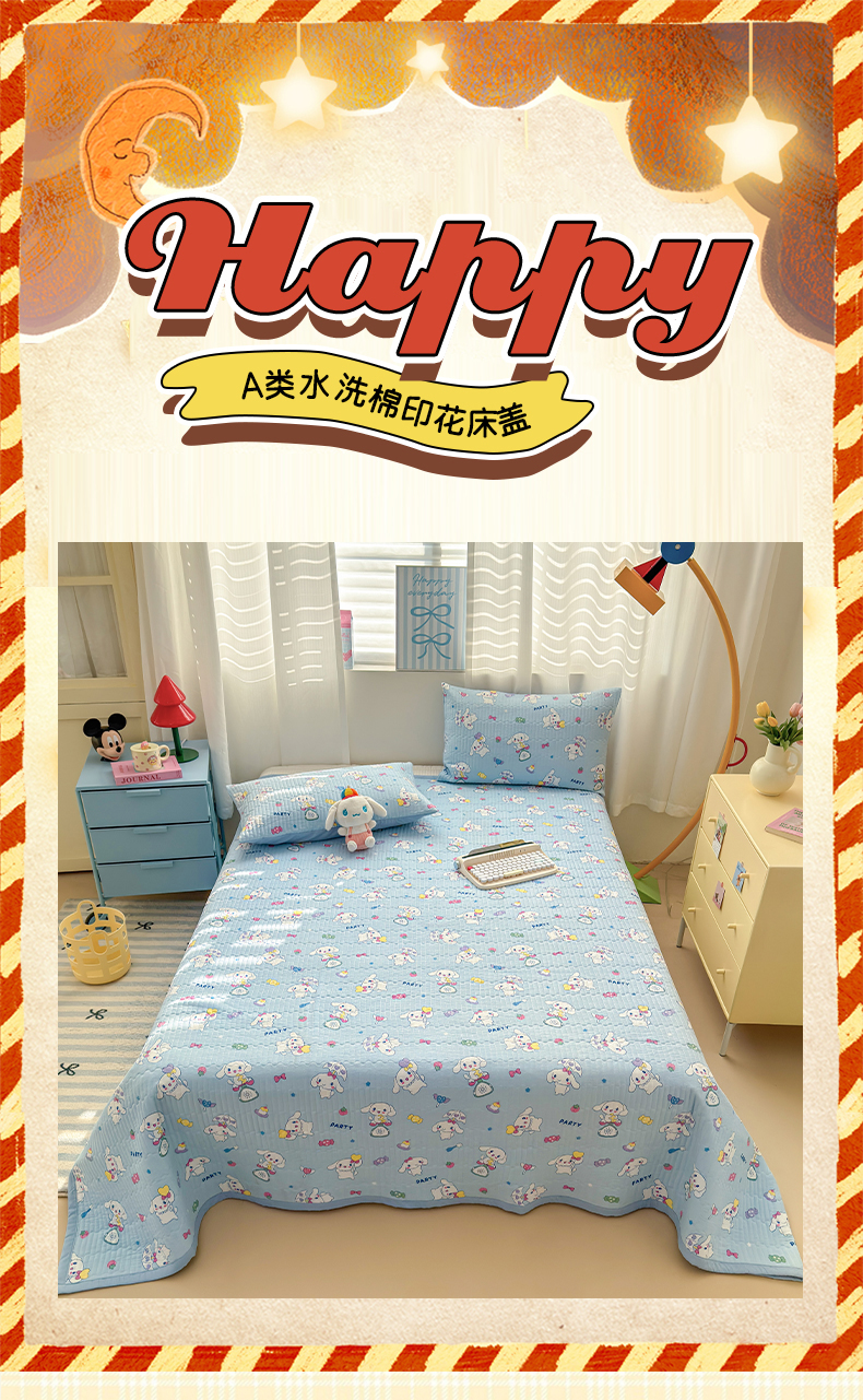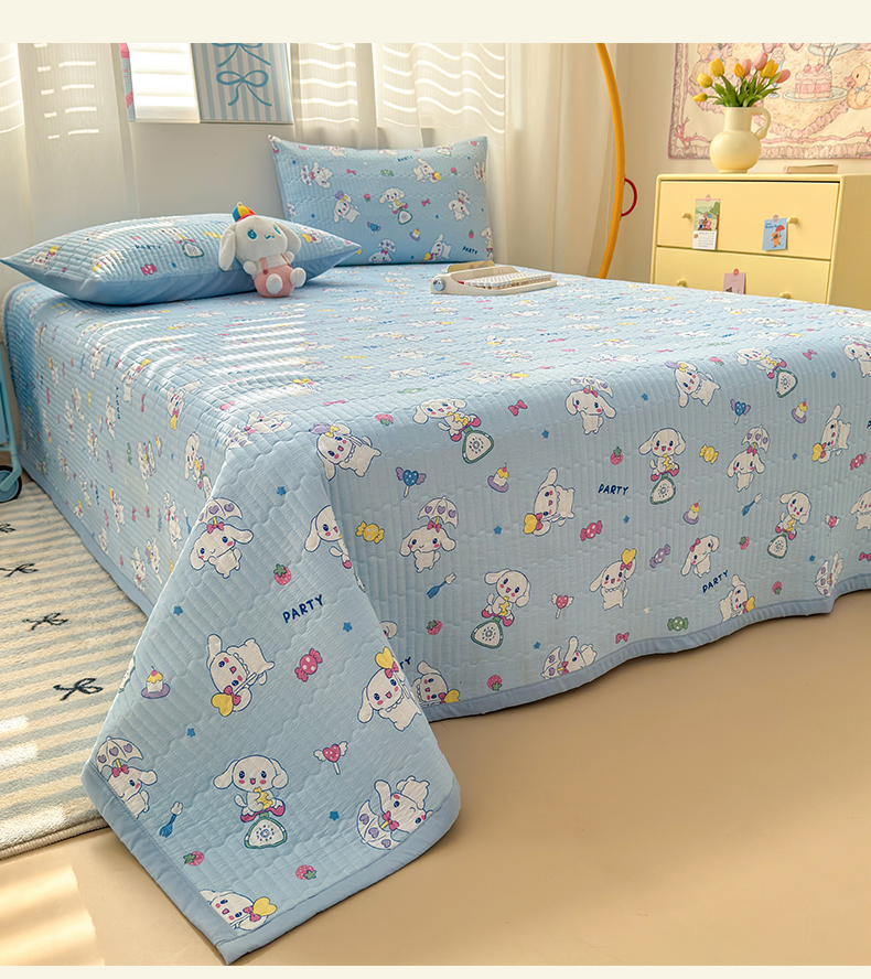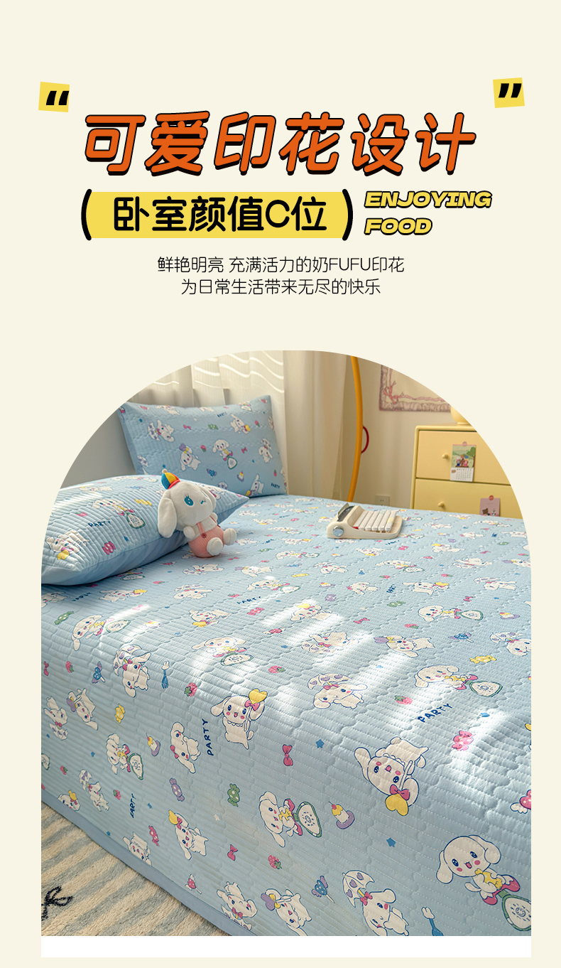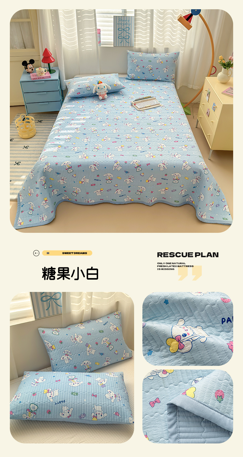 罗亿家纺 2025新款水洗棉双层纱夹棉绗缝床盖(提供买家秀) 糖果小白