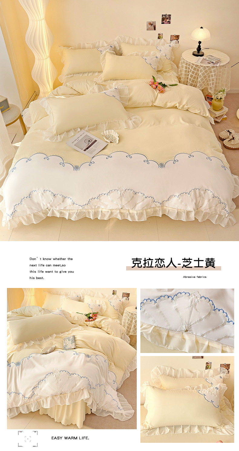 当前位置: 91家纺网 > 商品网购 > 床品套件 > 四件套 > 水洗棉四件套 > 慕语家纺 2025新款韩版高支高密水洗磨毛棉贴布绣四件套-克拉恋人 克拉恋人-芝士黄