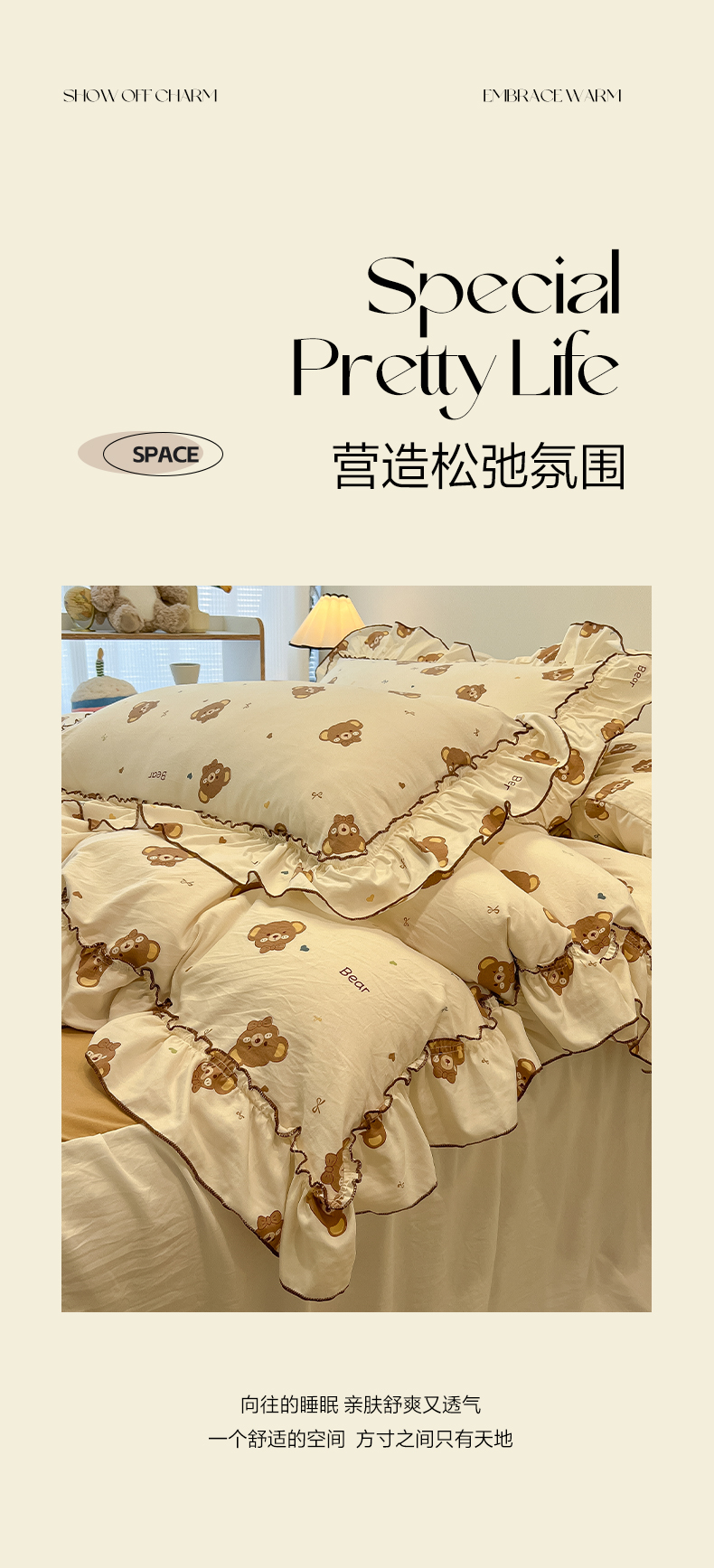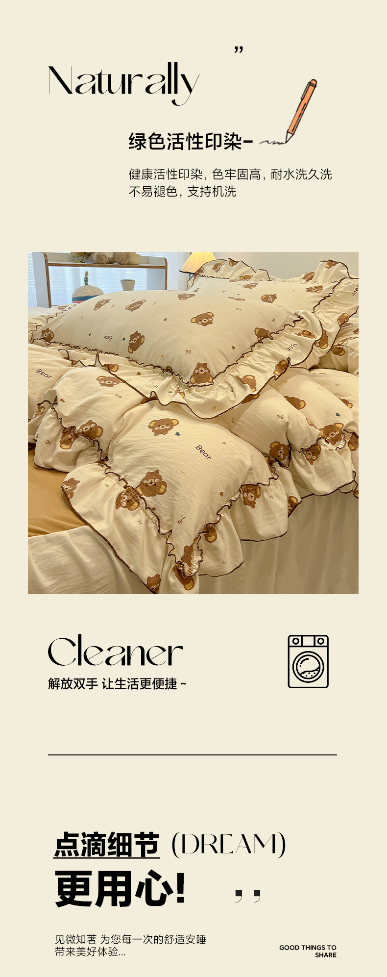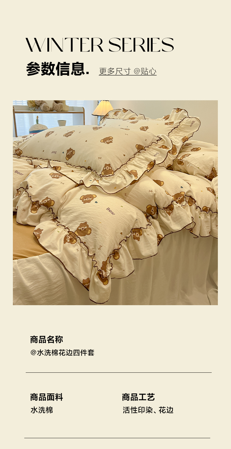 商品名称:(总)盼季家纺 2025新款公主风花边小清新水洗棉床上四件套床单被套床裙三件套-风格一