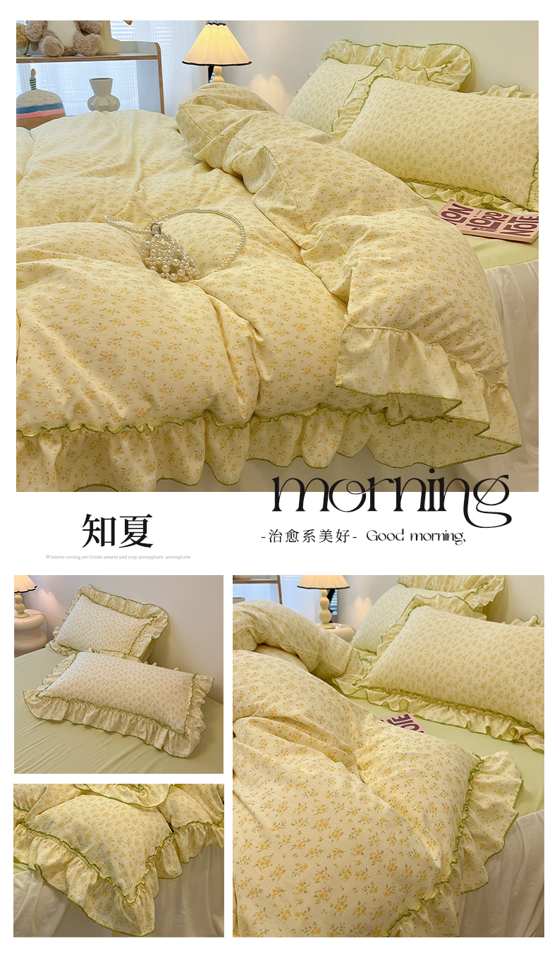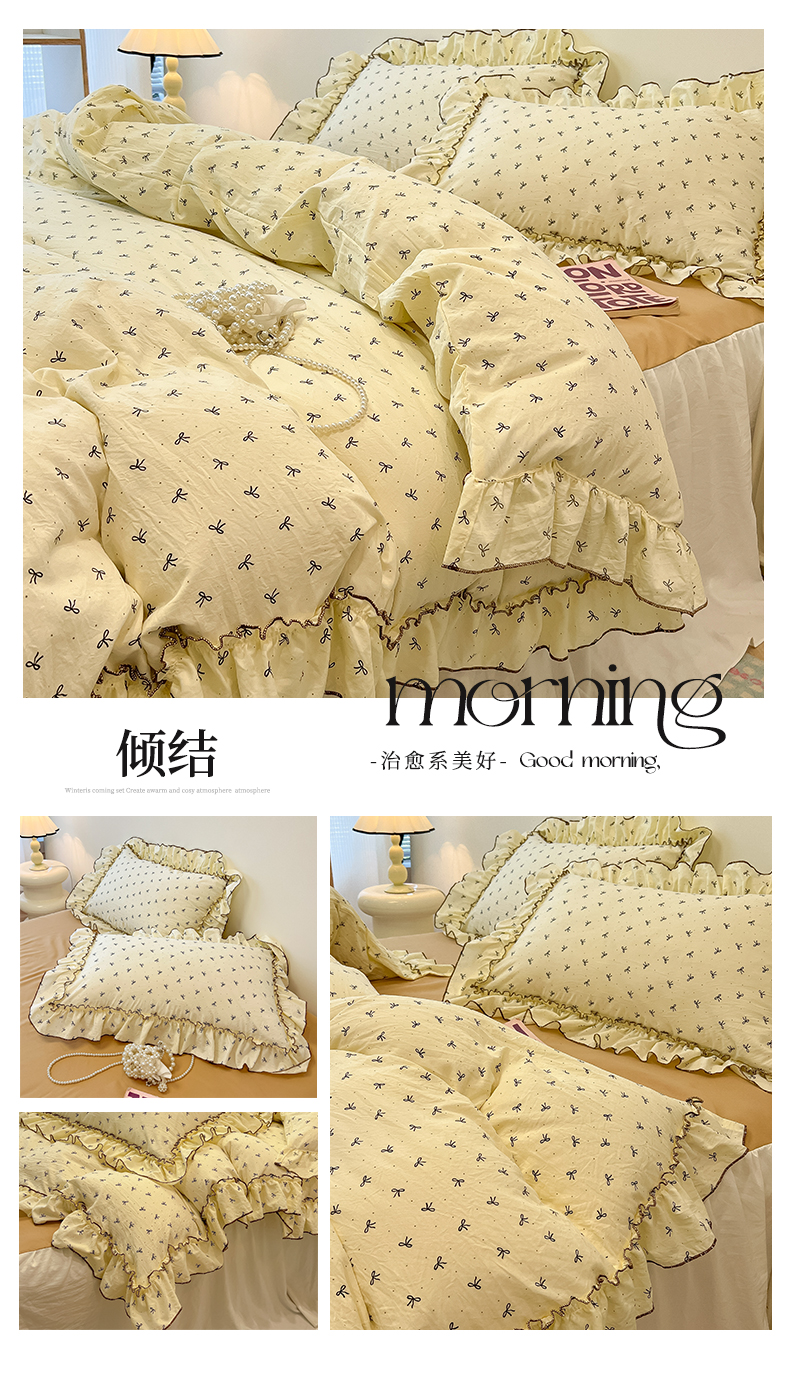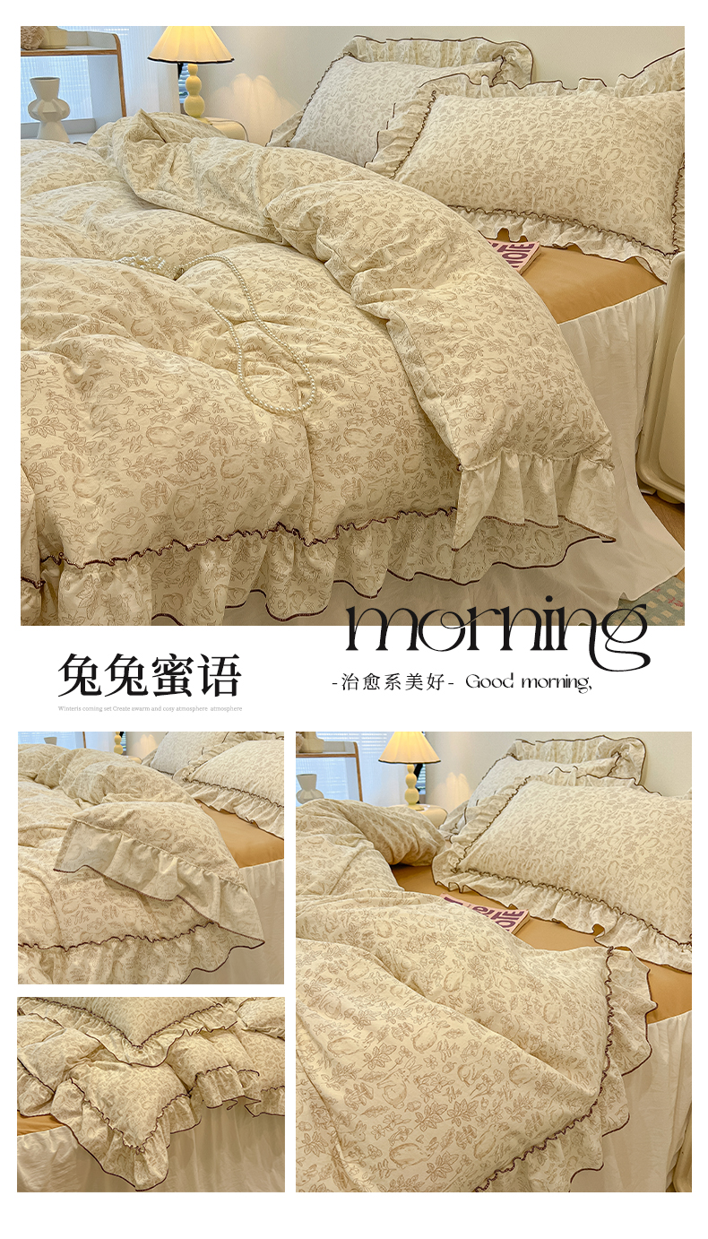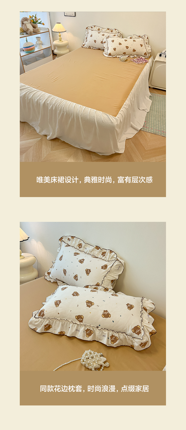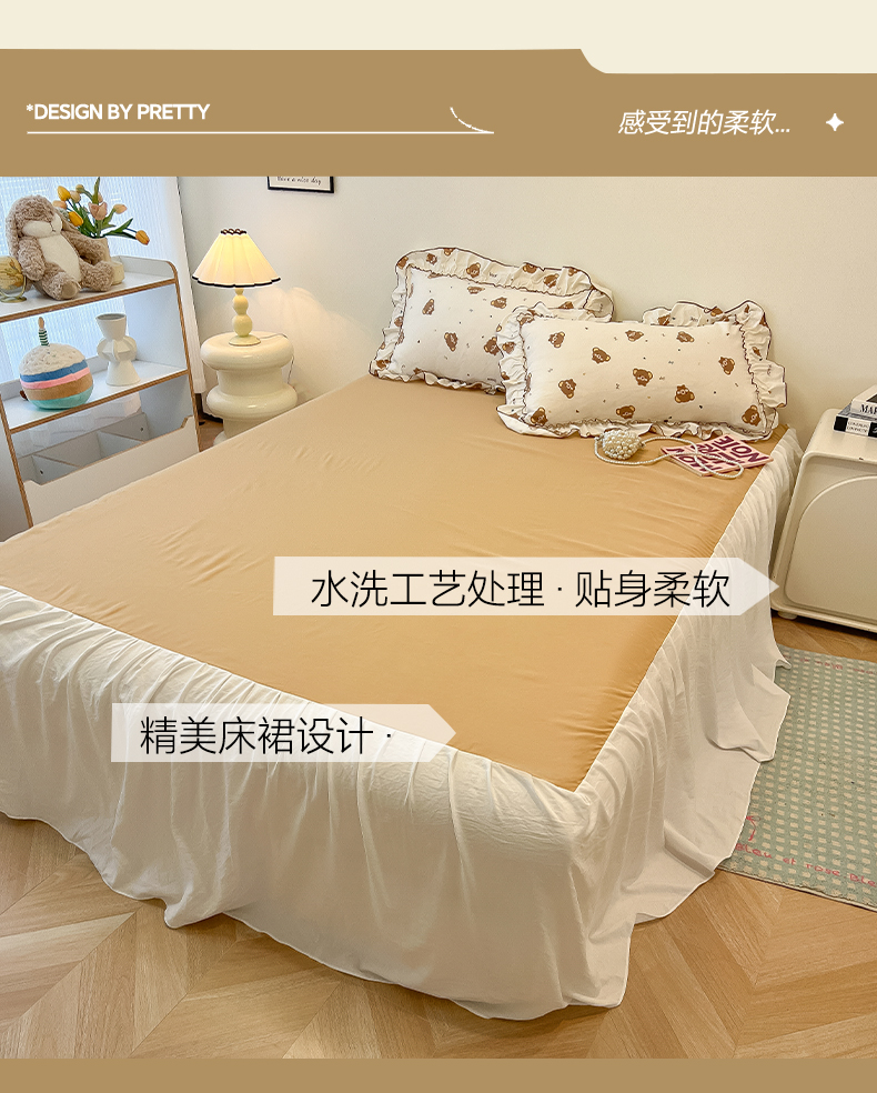 (总)盼季家纺 2025新款公主风花边小清新水洗棉床上四件套床单被套床裙三件套-风格一