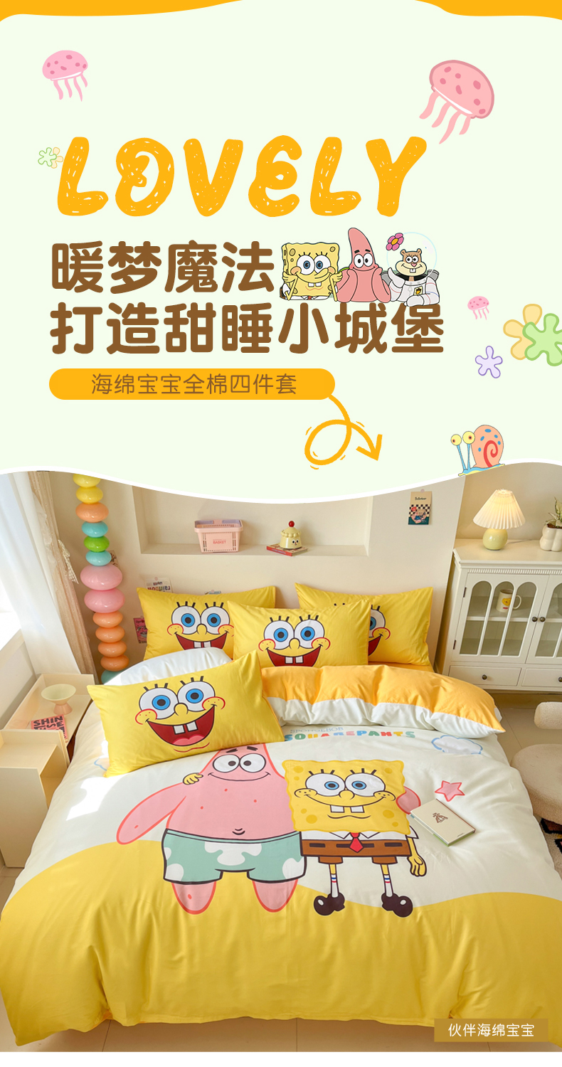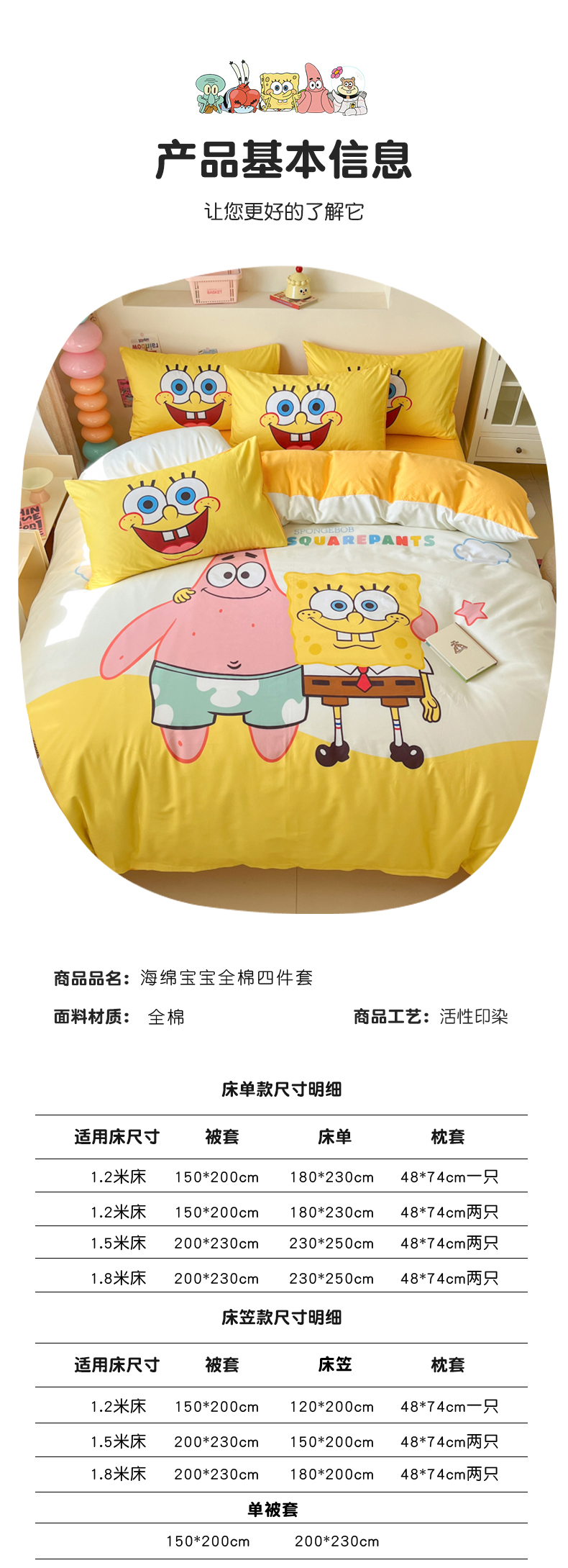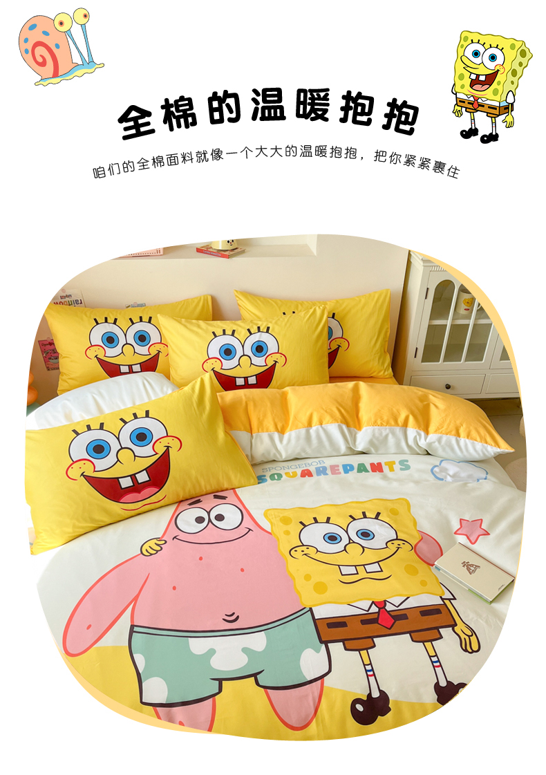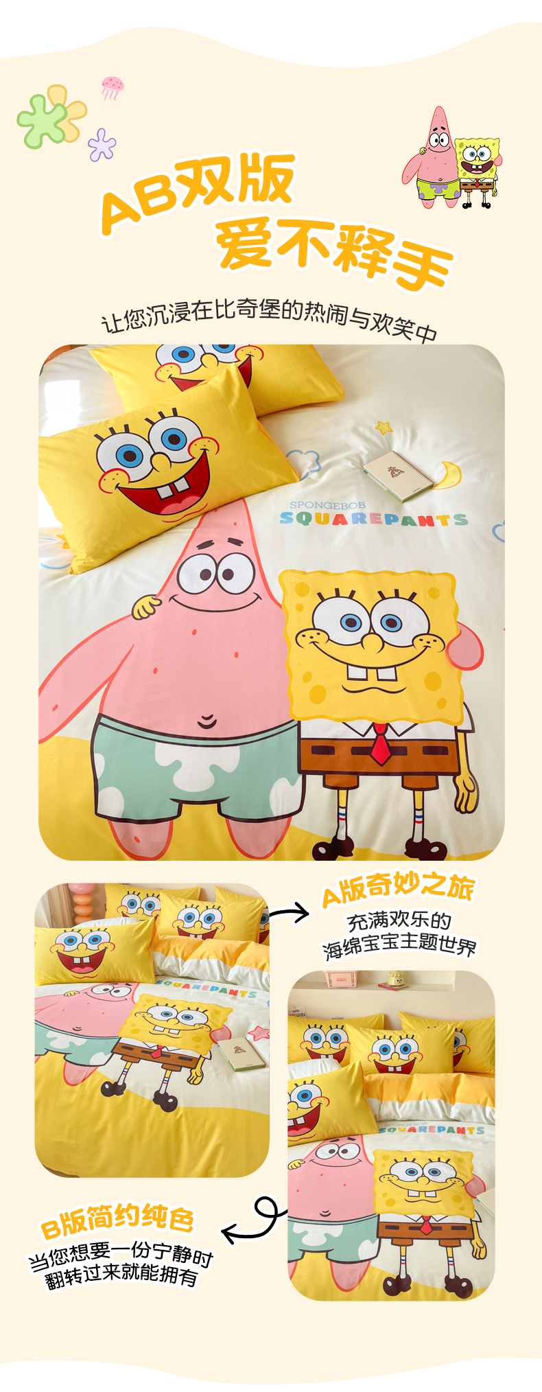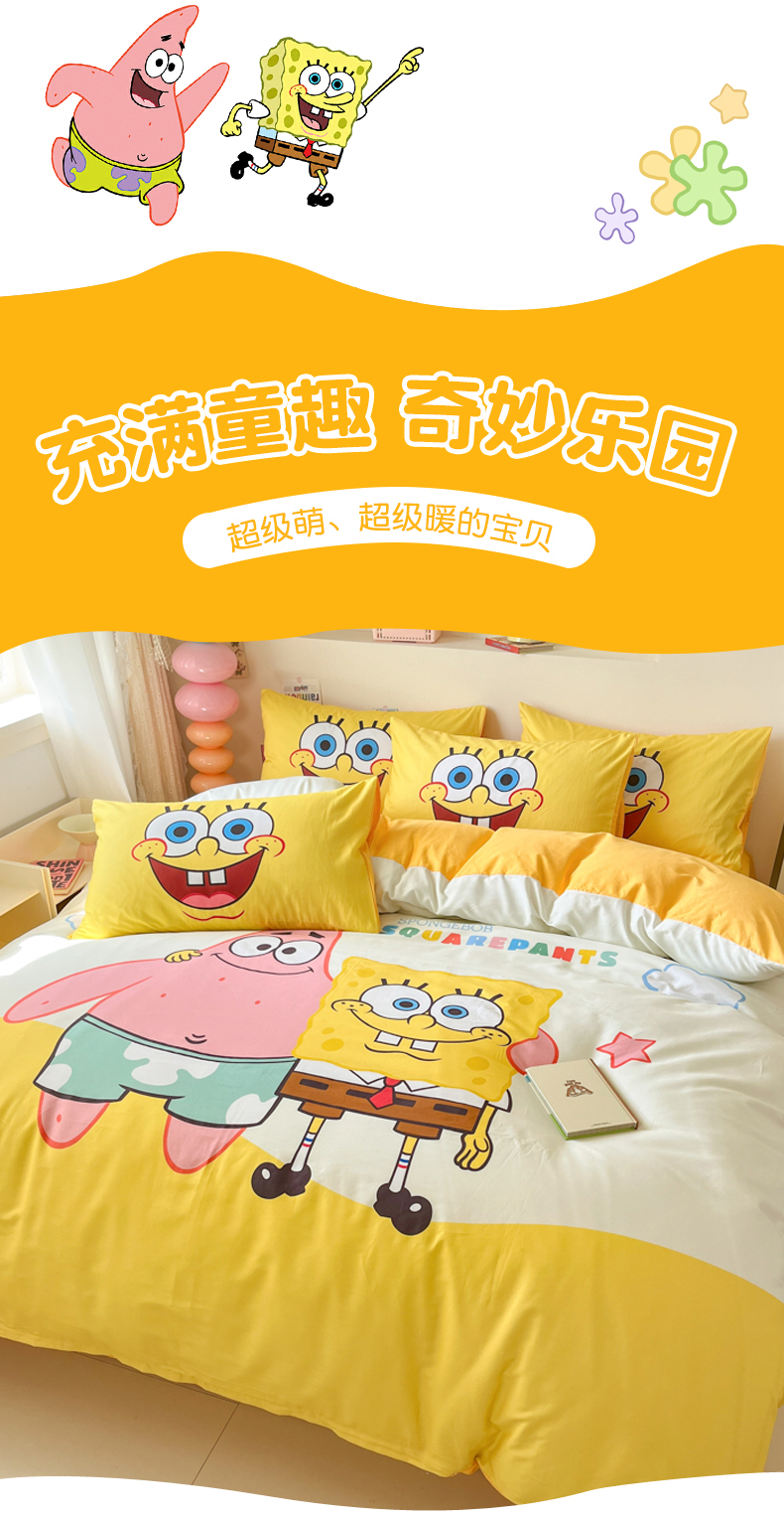当前位置: 91家纺网 > 商品网购 > 床品套件 > 四件套 > 全棉普通四件套 > 金爱家纯棉数码印花系列四件套-海绵宝宝 棉D-伙伴海绵宝宝
