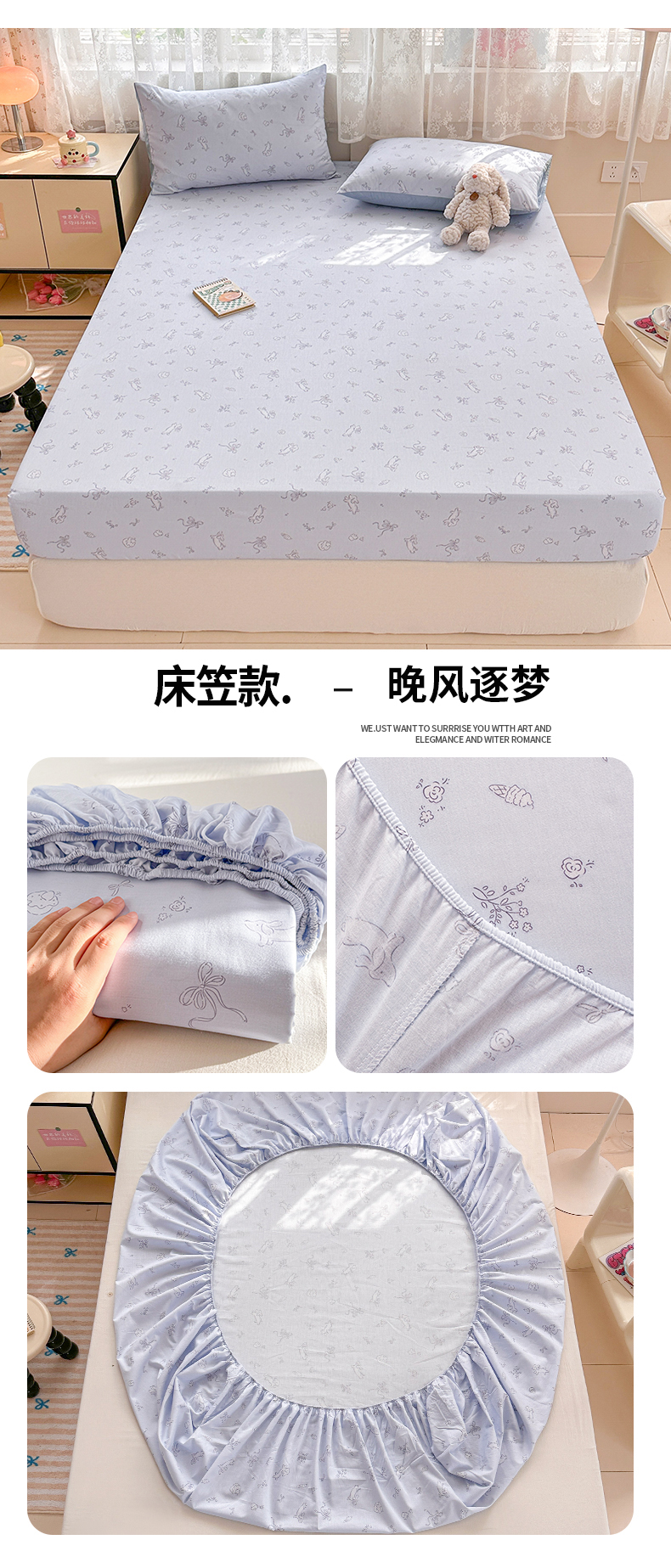 晨希2025新款13070全棉印花单品床笠枕套 晚风逐梦