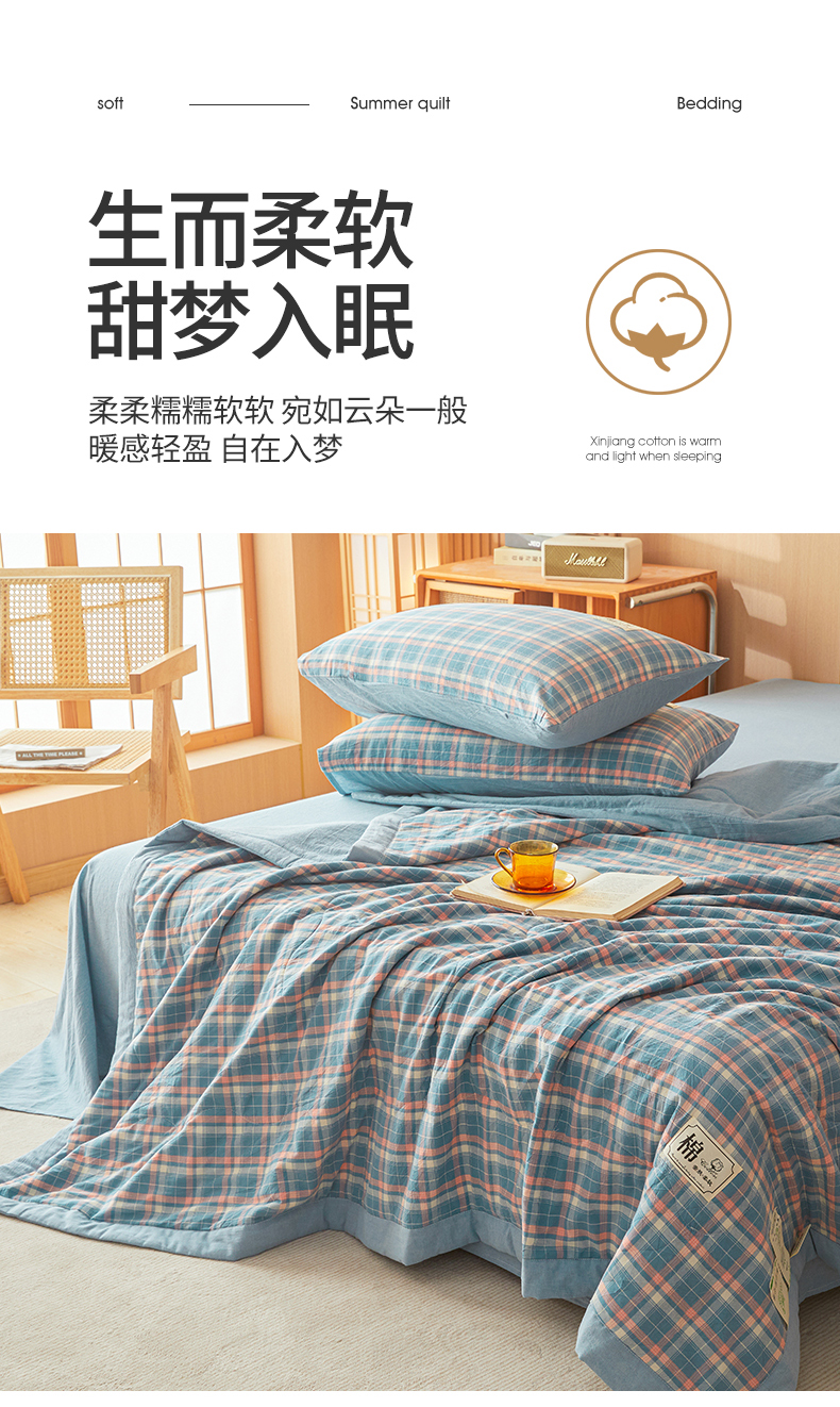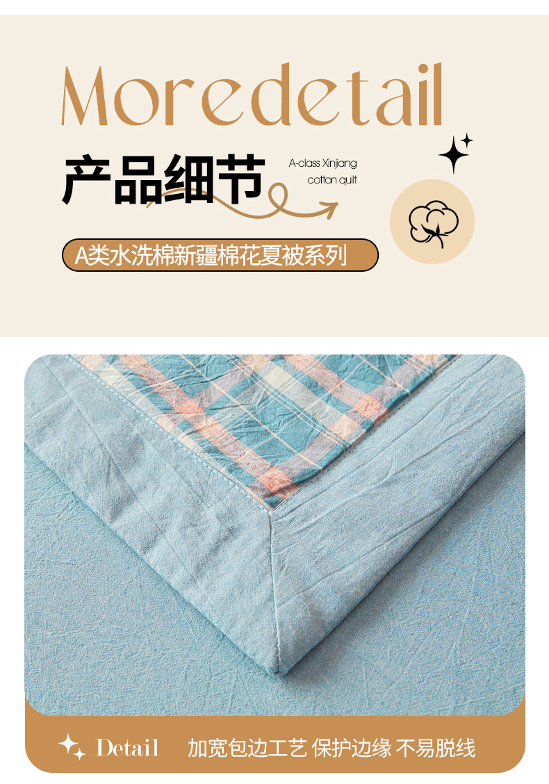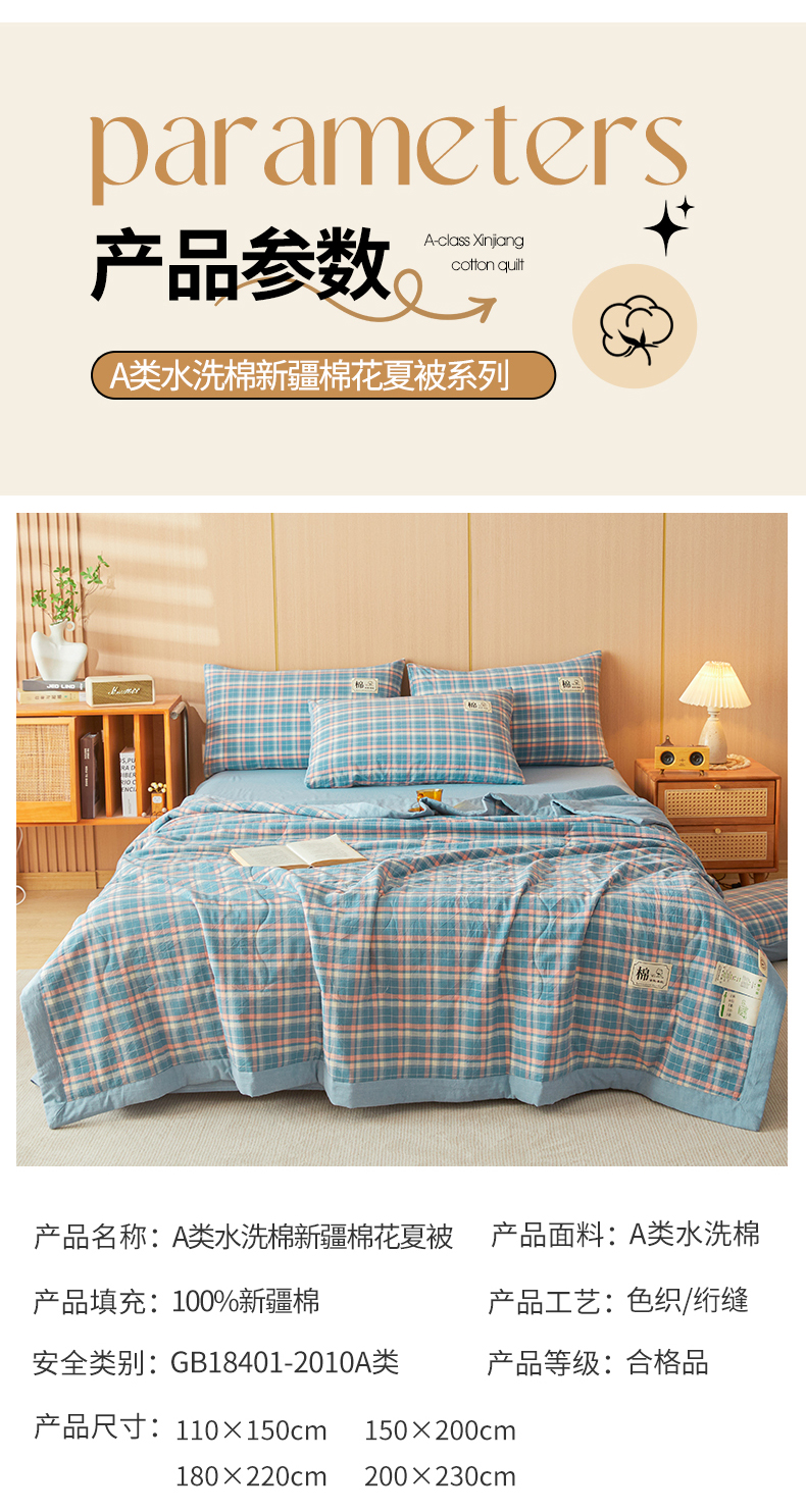 当前位置: 91家纺网 > 商品网购 > 被子 > 夏被 > 招财星家纺 2025新款无印风新疆棉夏被夏凉被空调被可机洗直播可过质检 格韵蓝粉
