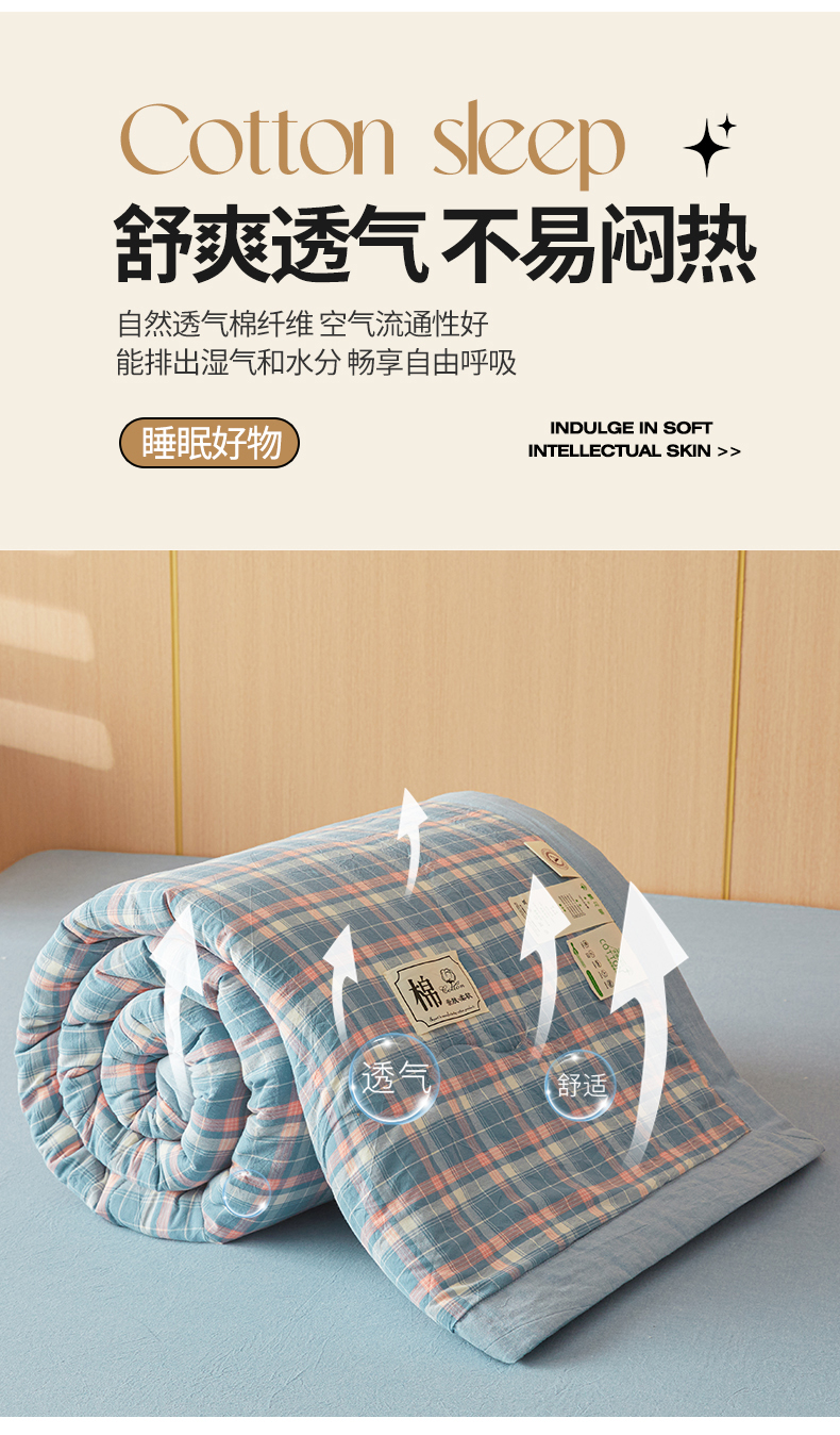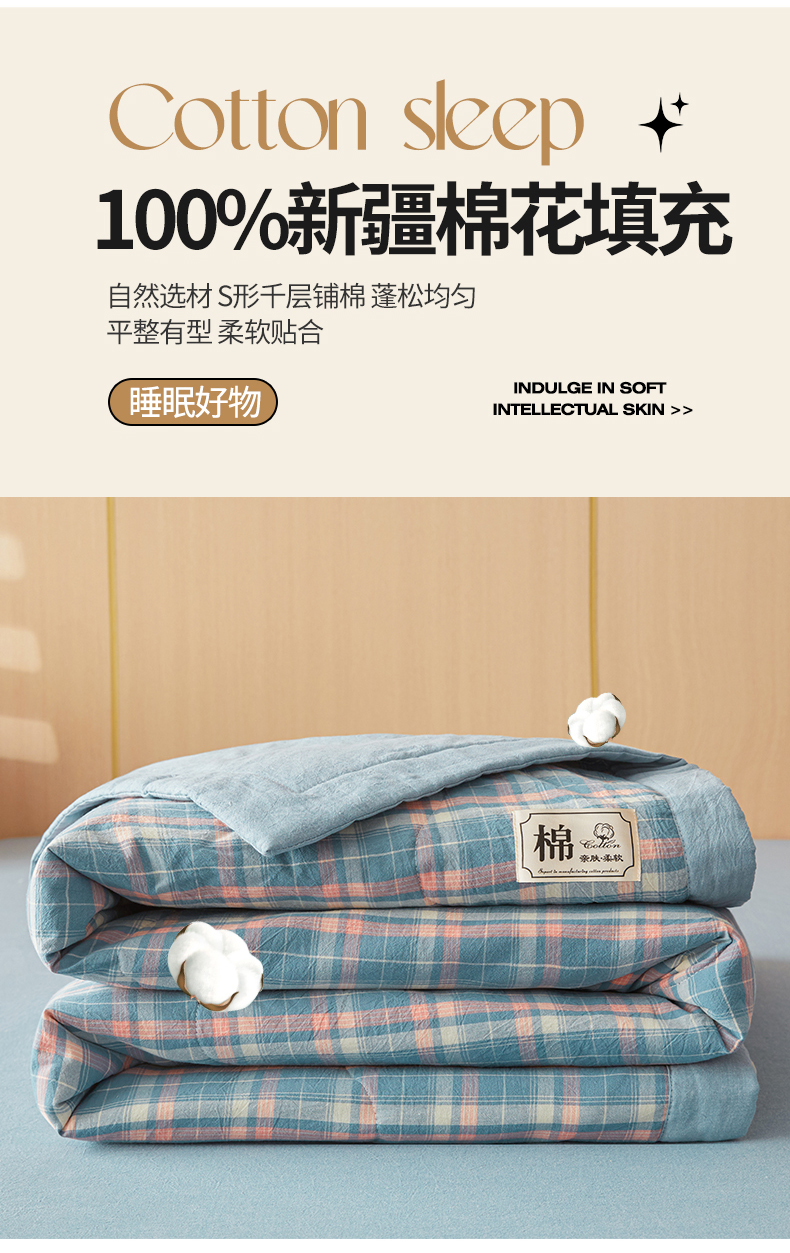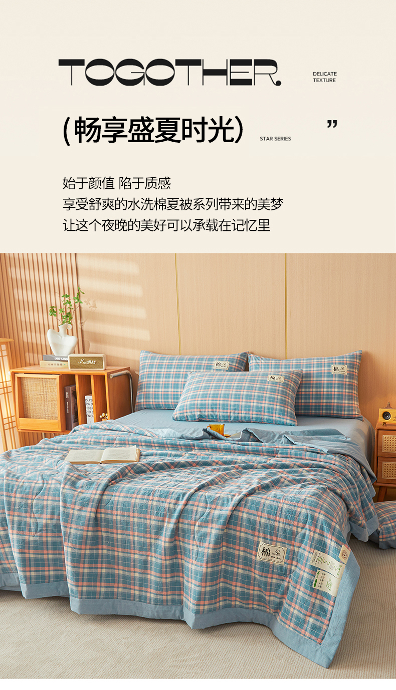 当前位置: 91家纺网 > 商品网购 > 被子 > 夏被 > 招财星家纺 2025新款无印风新疆棉夏被夏凉被空调被可机洗直播可过质检 格韵蓝粉