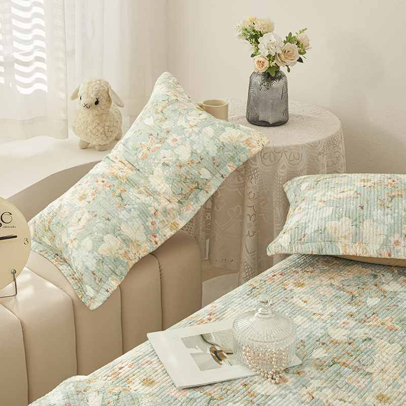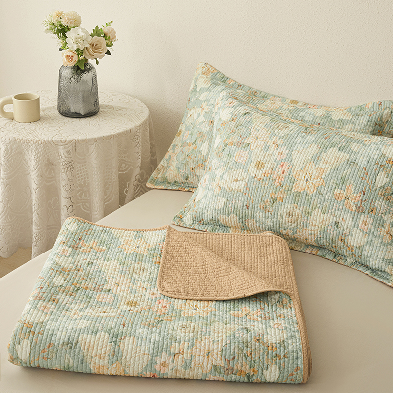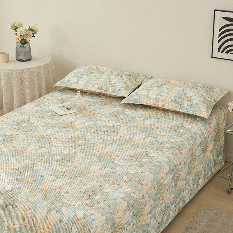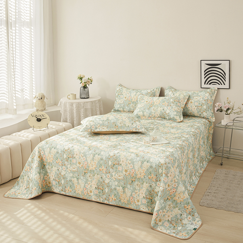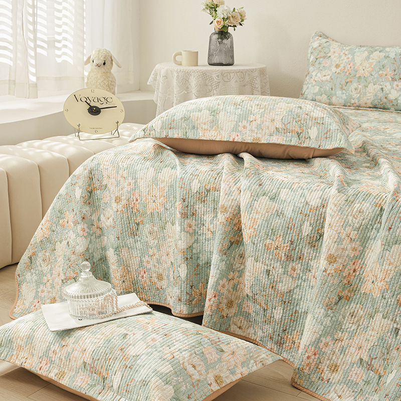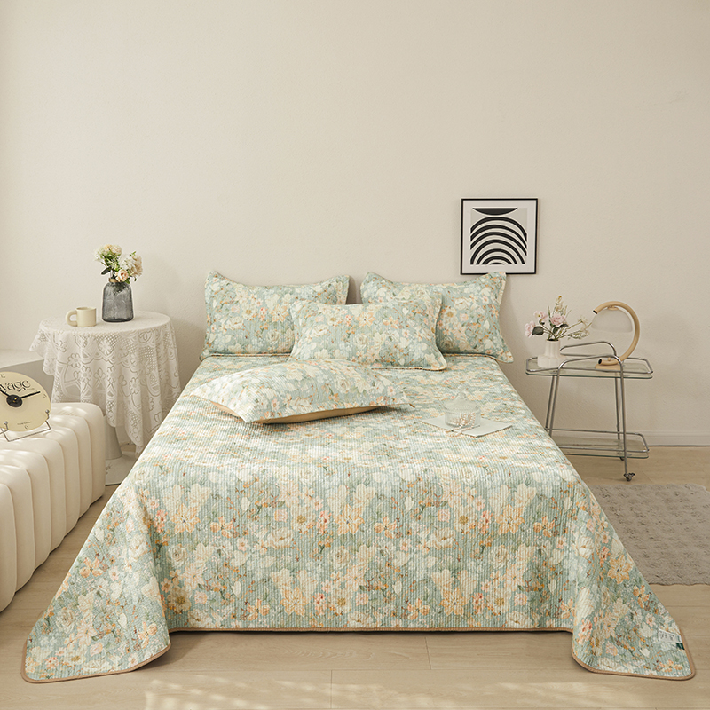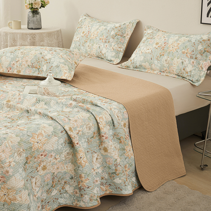 莎果家纺 2025新款双面全棉数码印花大尺寸2.3*2.5米床盖三件套 碧山春晨