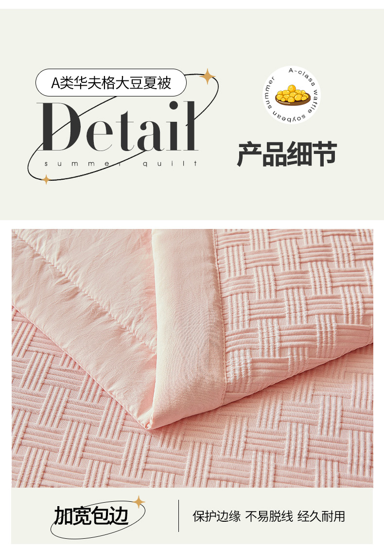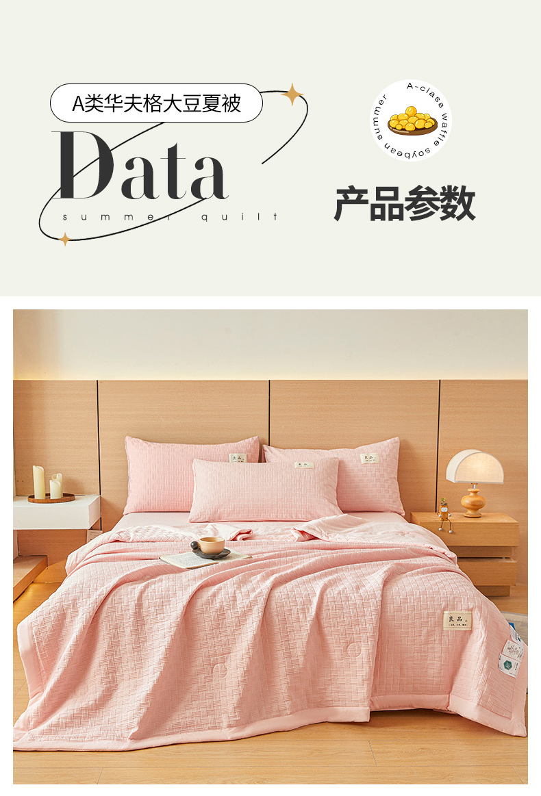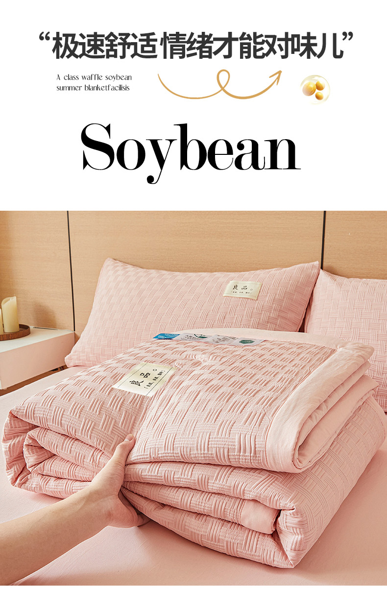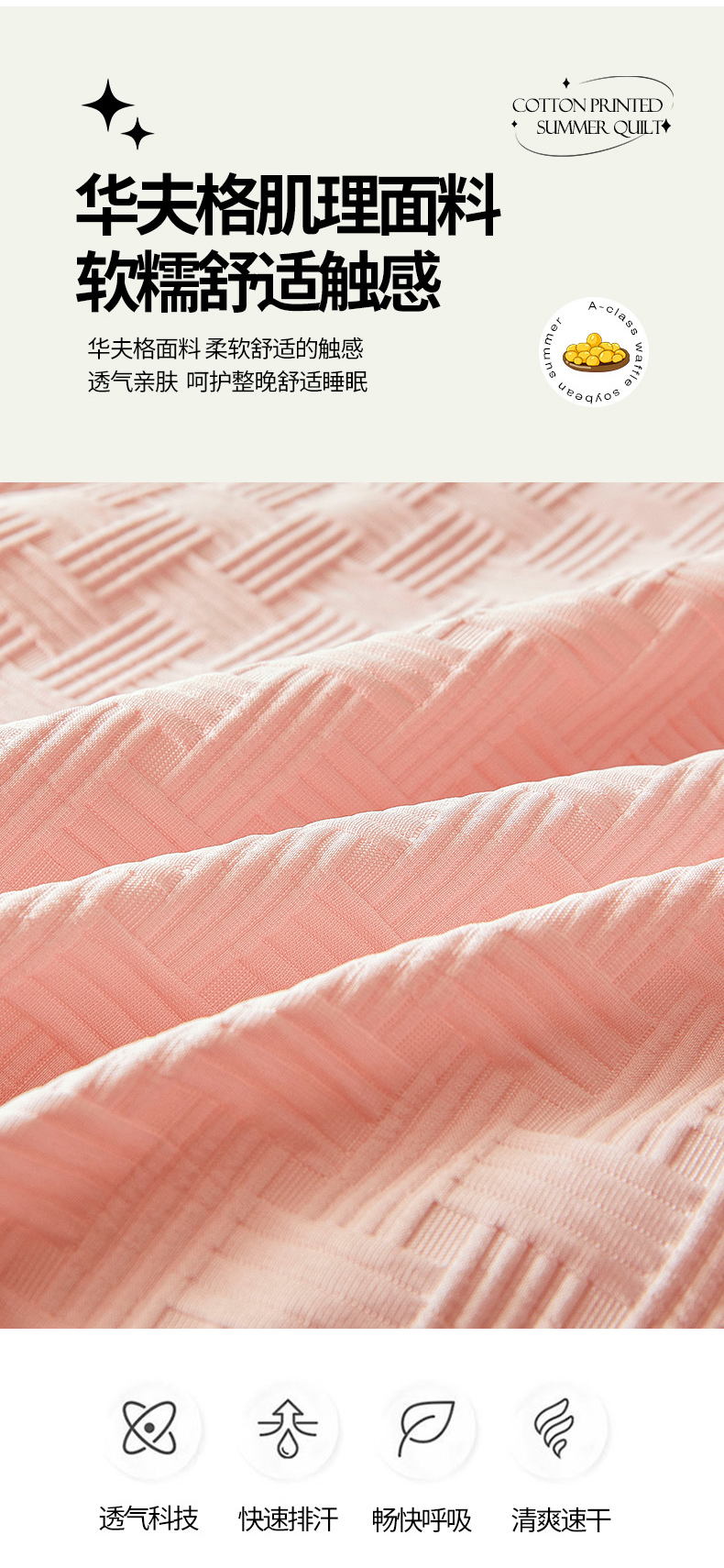 招财星家纺 2025新款A类华夫格夏被四件套大豆纤维空调被夏凉被直播供货可过检 良品-蜜桃粉