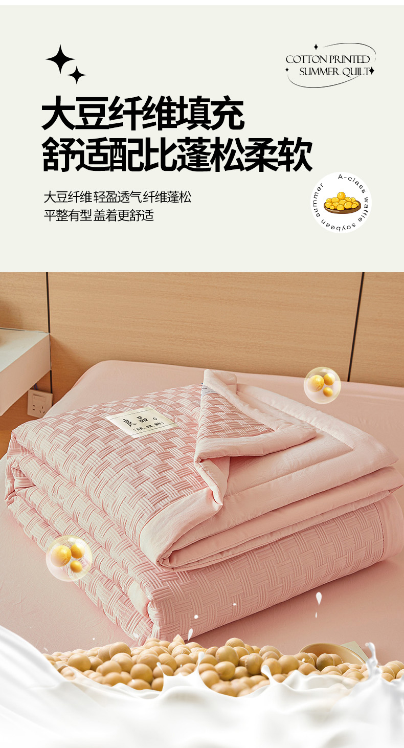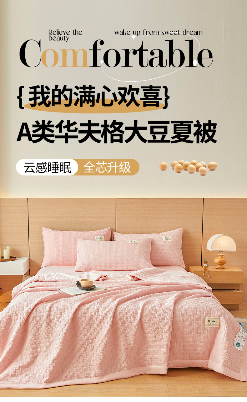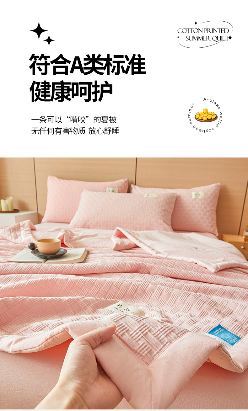 招财星家纺 2025新款A类华夫格夏被四件套大豆纤维空调被夏凉被直播供货可过检 良品-蜜桃粉