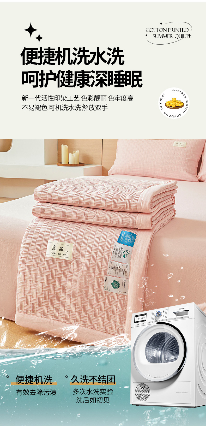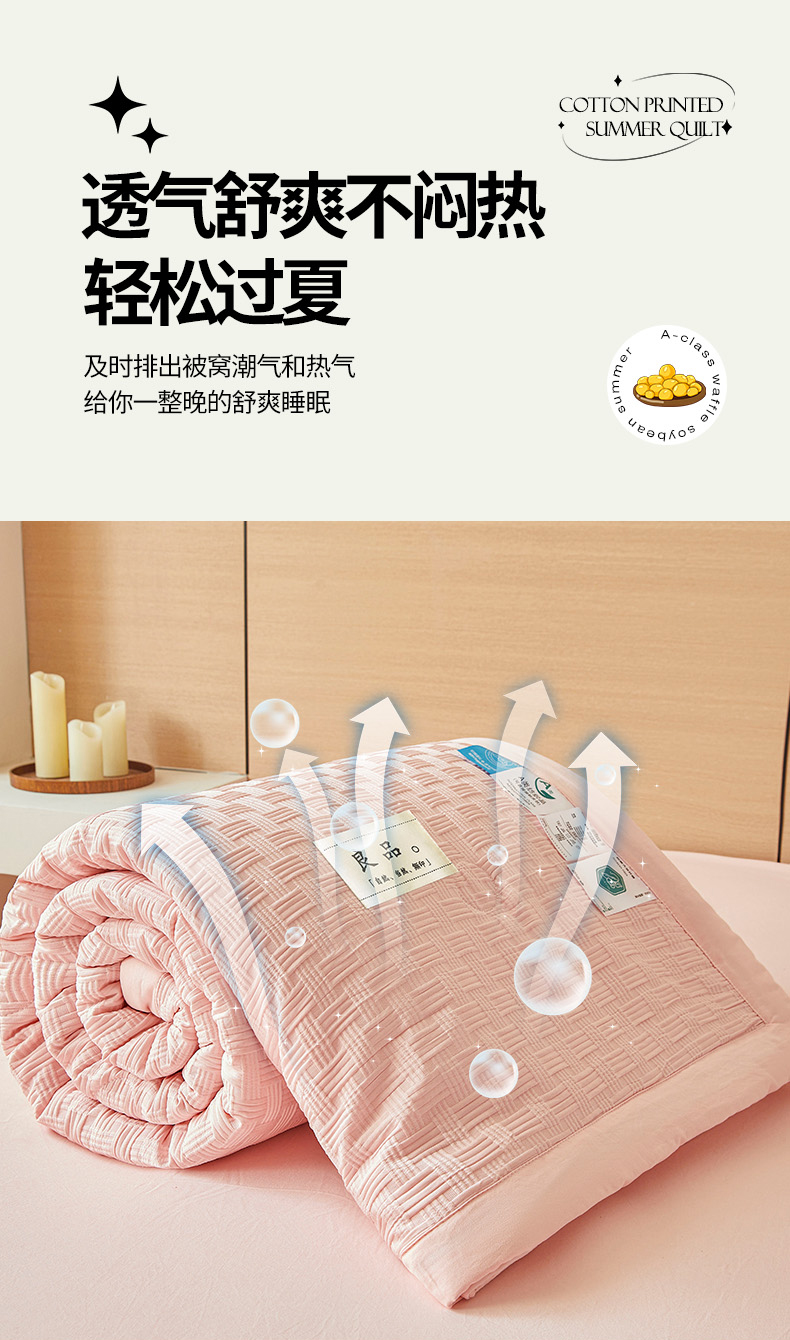 • 91家纺网 家纺一手货源 找家纺 招财星家纺 2025新款A类华夫格夏被四件套大豆纤维空调被夏凉被直播供货可过检 良品-蜜桃粉