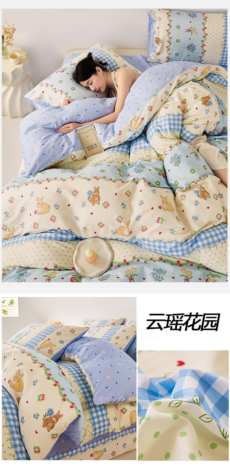商品名称:潮邦创意家居 2025特价春夏新款13070全棉四件套 【第一批】 云瑶花园