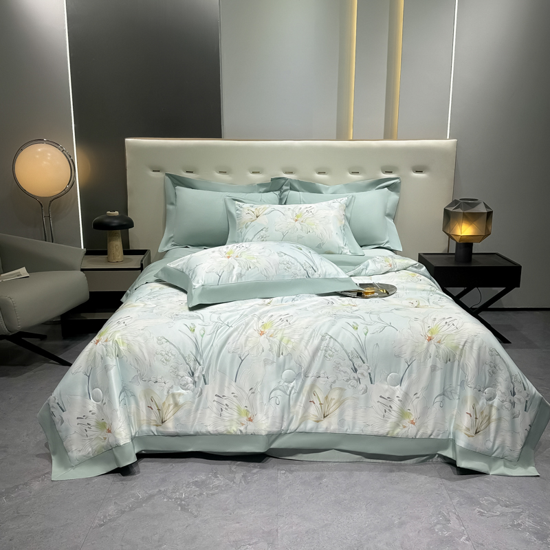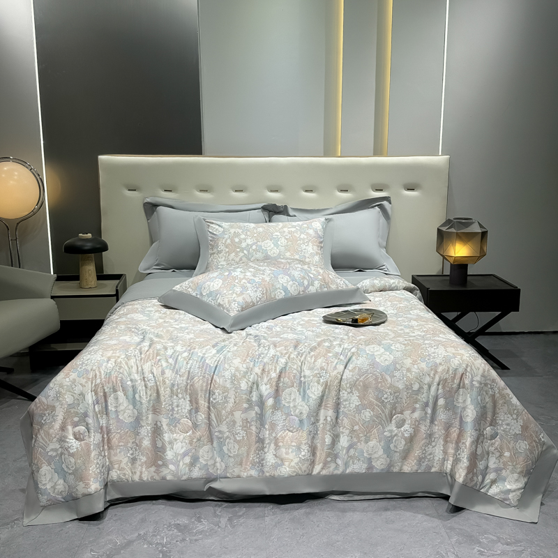 商品名称:(总)悦织湾家纺 2025新款A类水洗冰丝夏被四件套凉感冰丝印花夏被