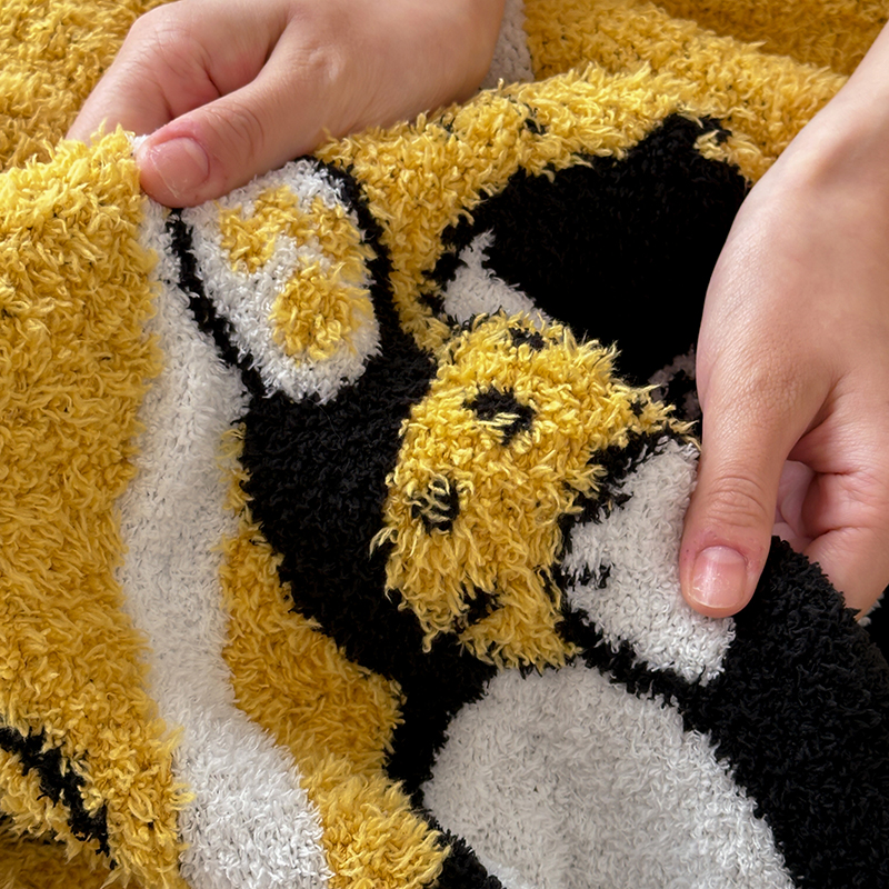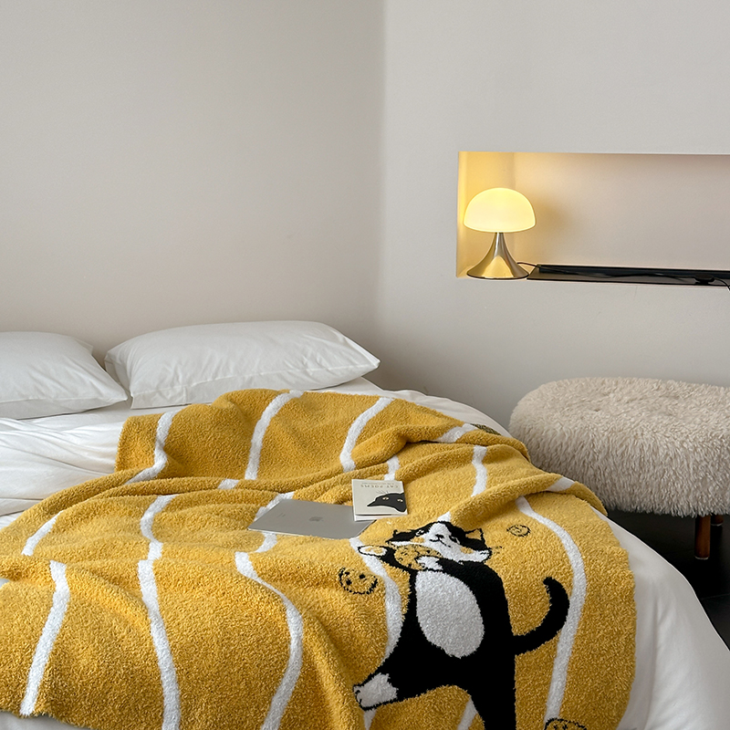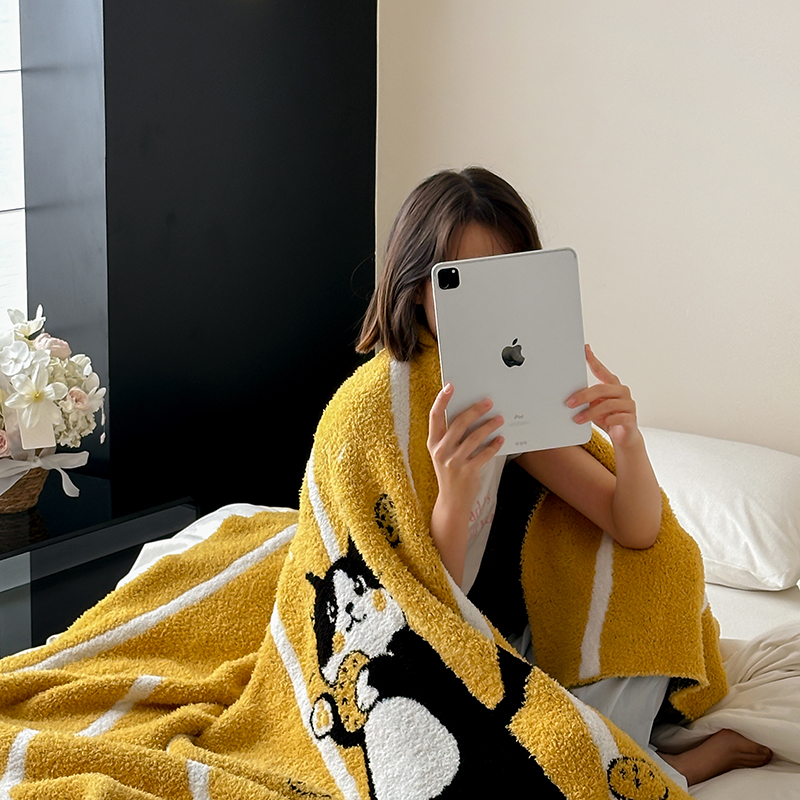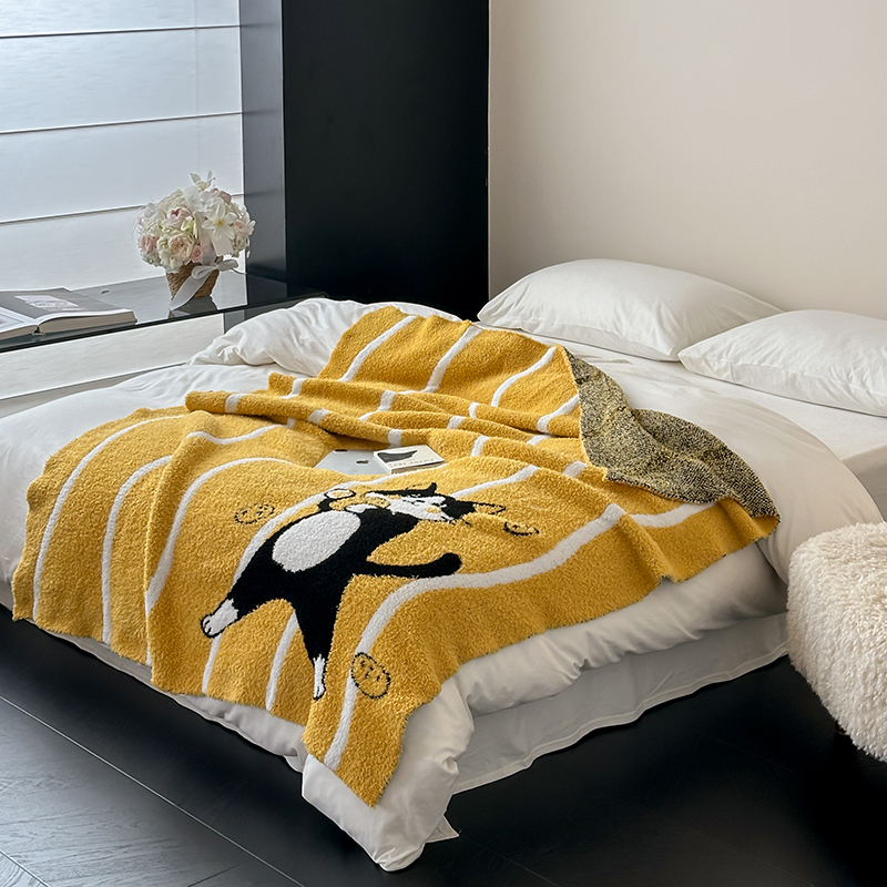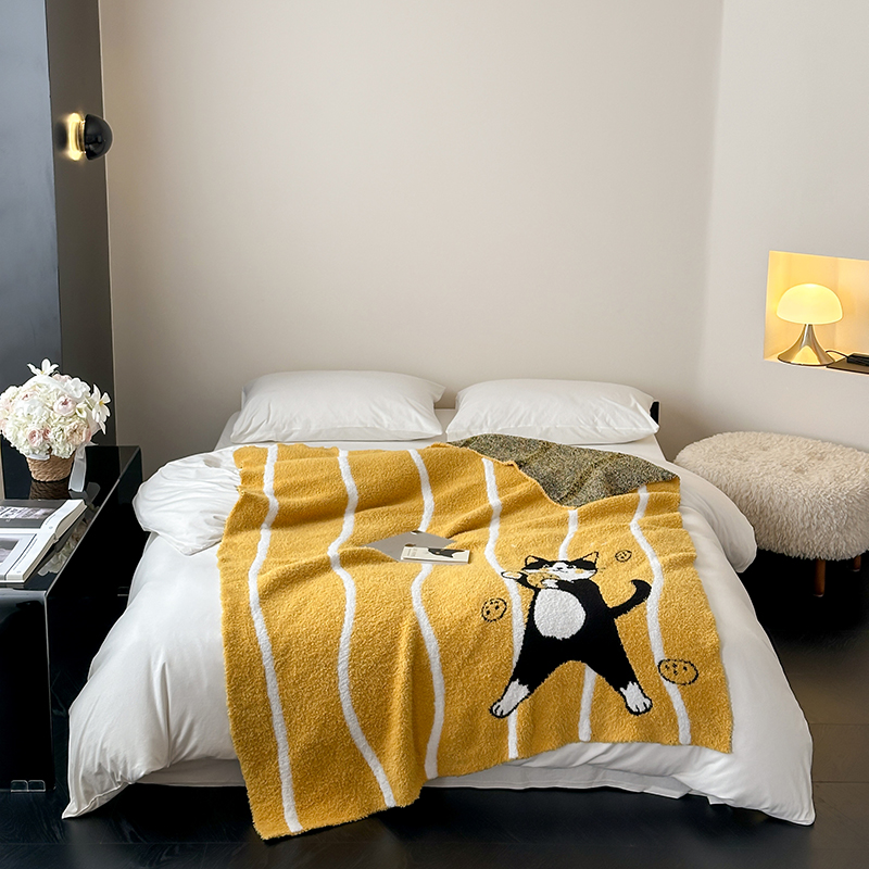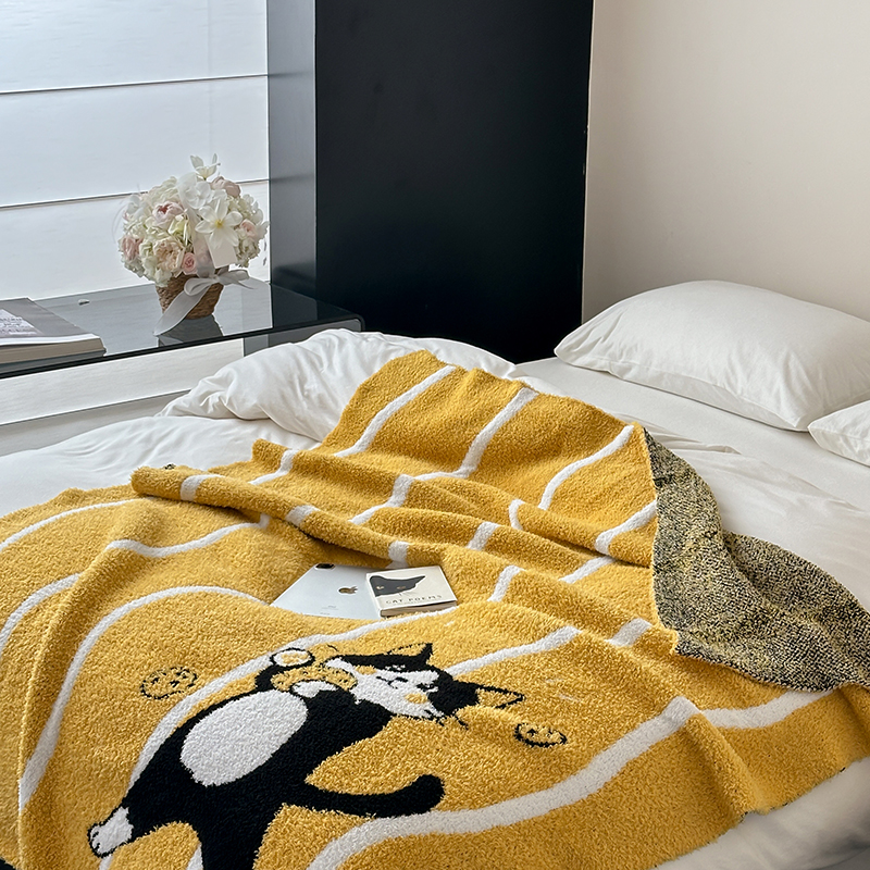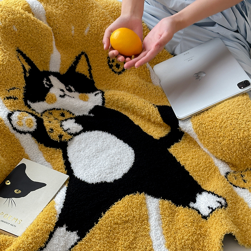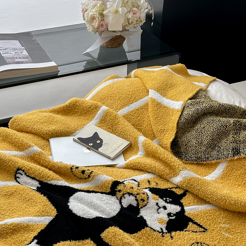 多乐娜 2025新款半边绒毛毯盖毯原创设计130cm170cm大尺寸不掉毛不掉色 曲奇黑喵