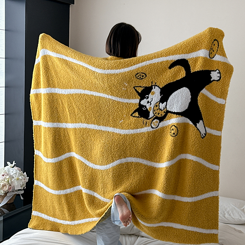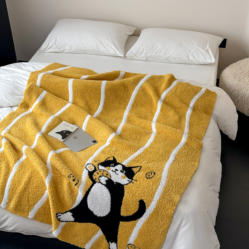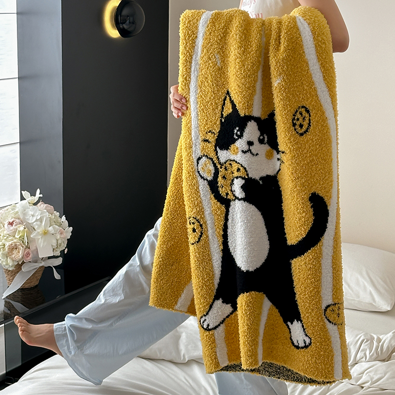 商品名称:多乐娜 2025新款半边绒毛毯盖毯原创设计130cm170cm大尺寸不掉毛不掉色 曲奇黑喵