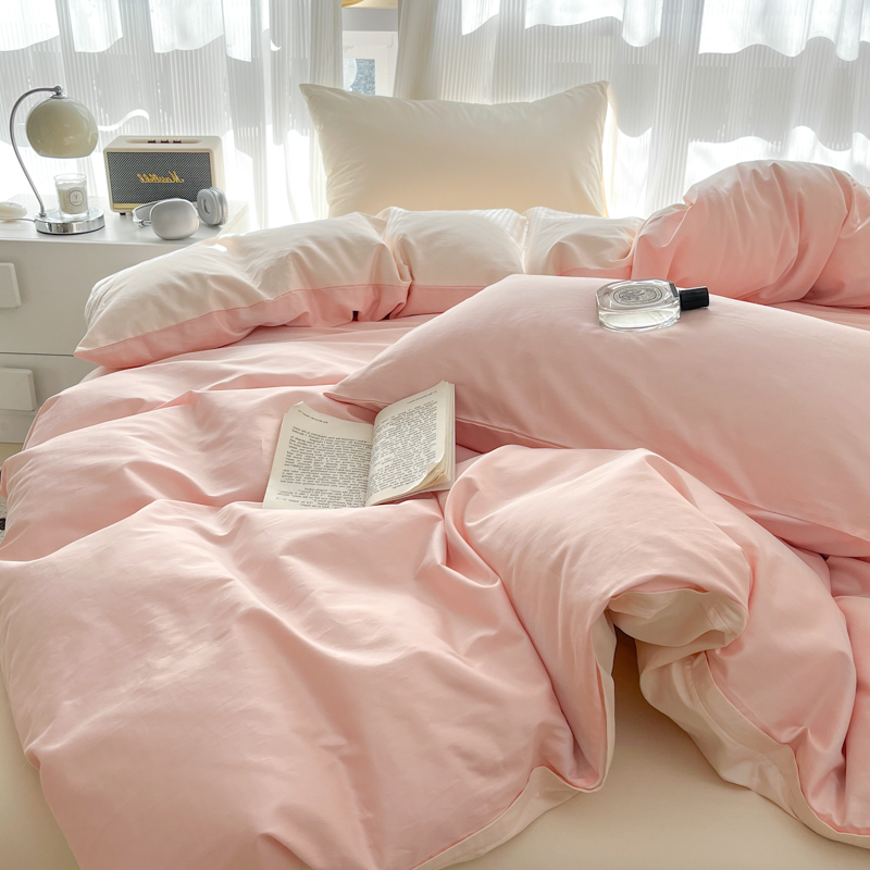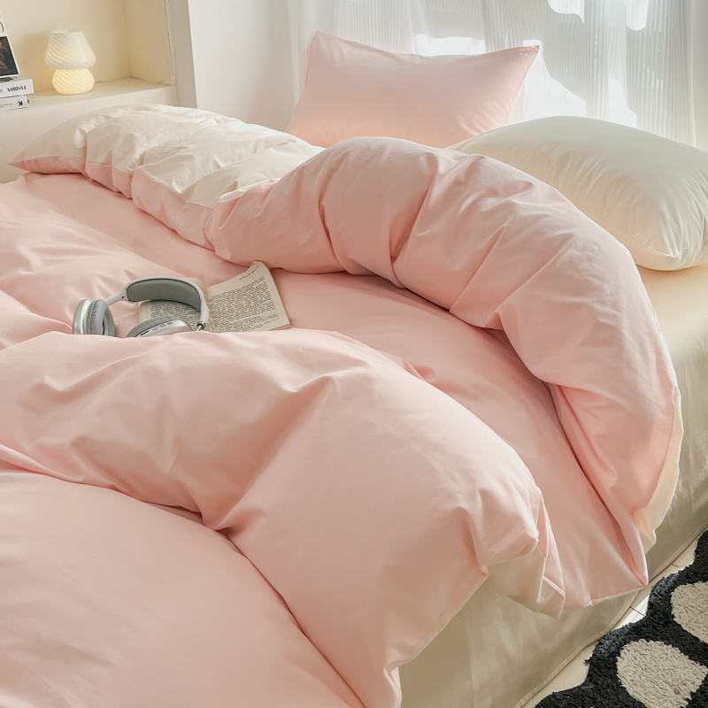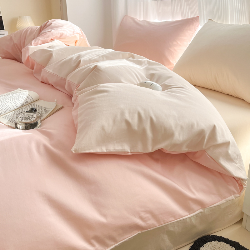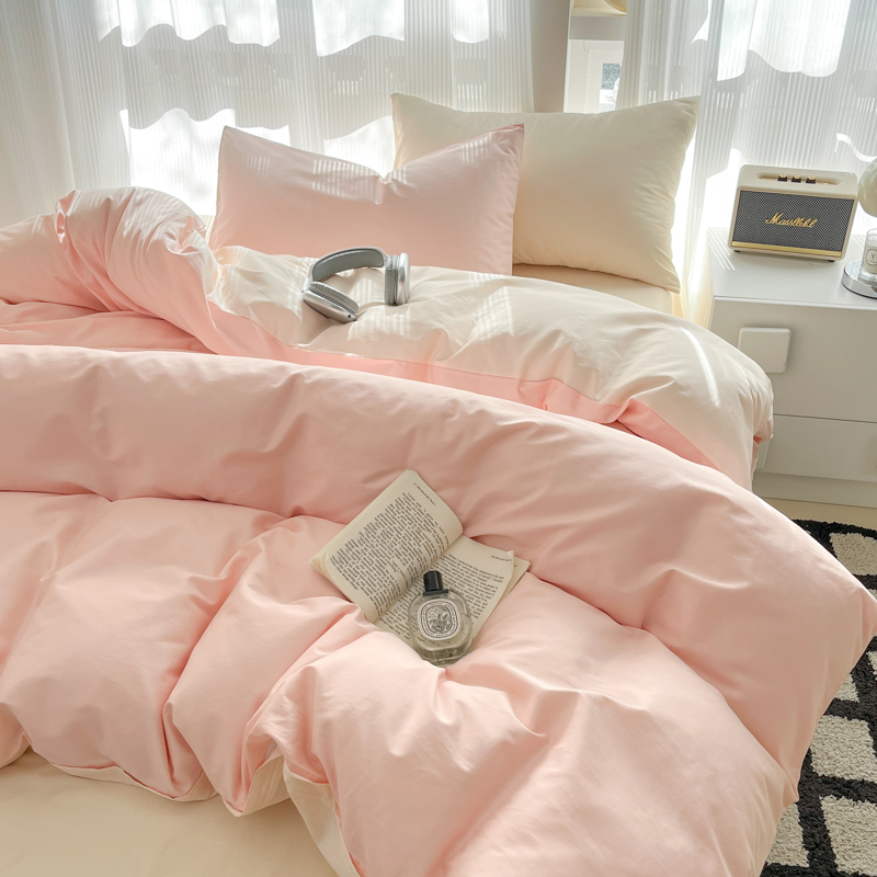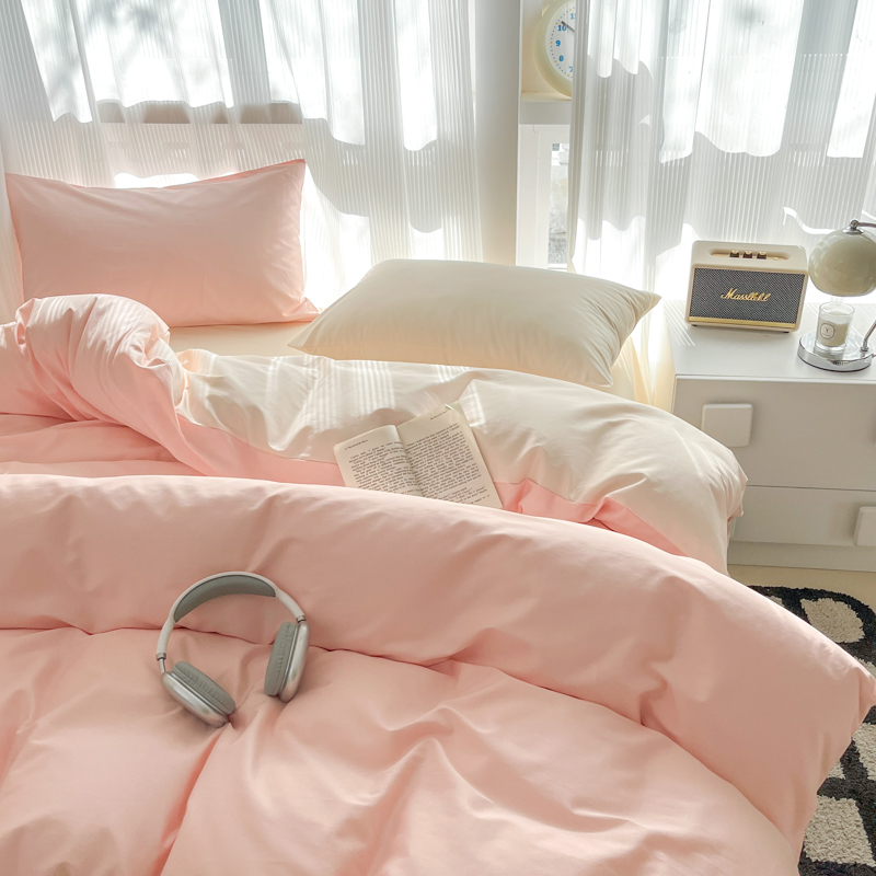 耀悦家纺 2025新款A类纯棉60支拼色四件套 少女粉-灵动白桃