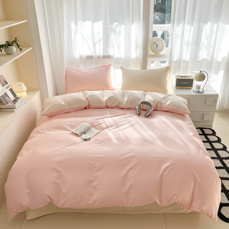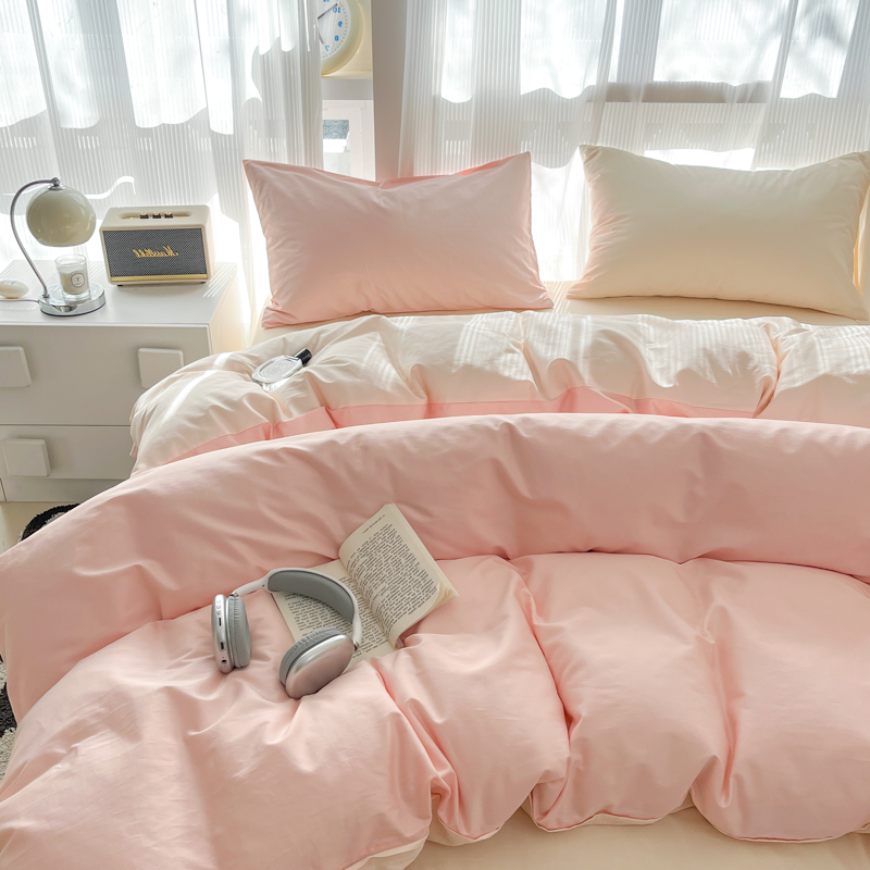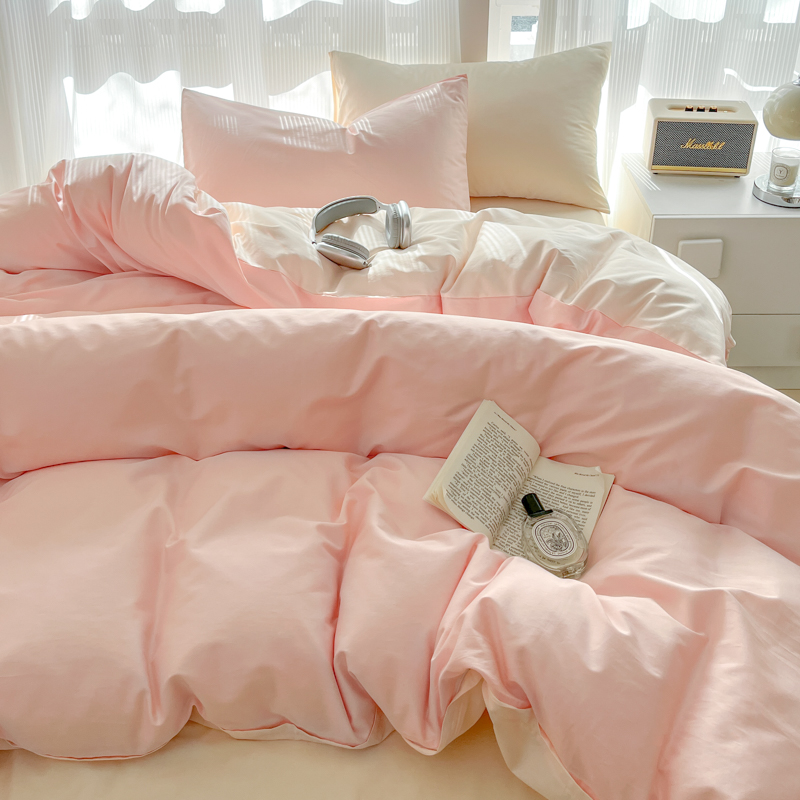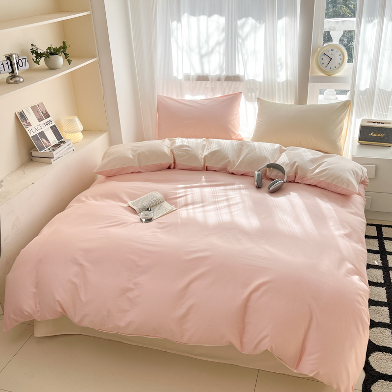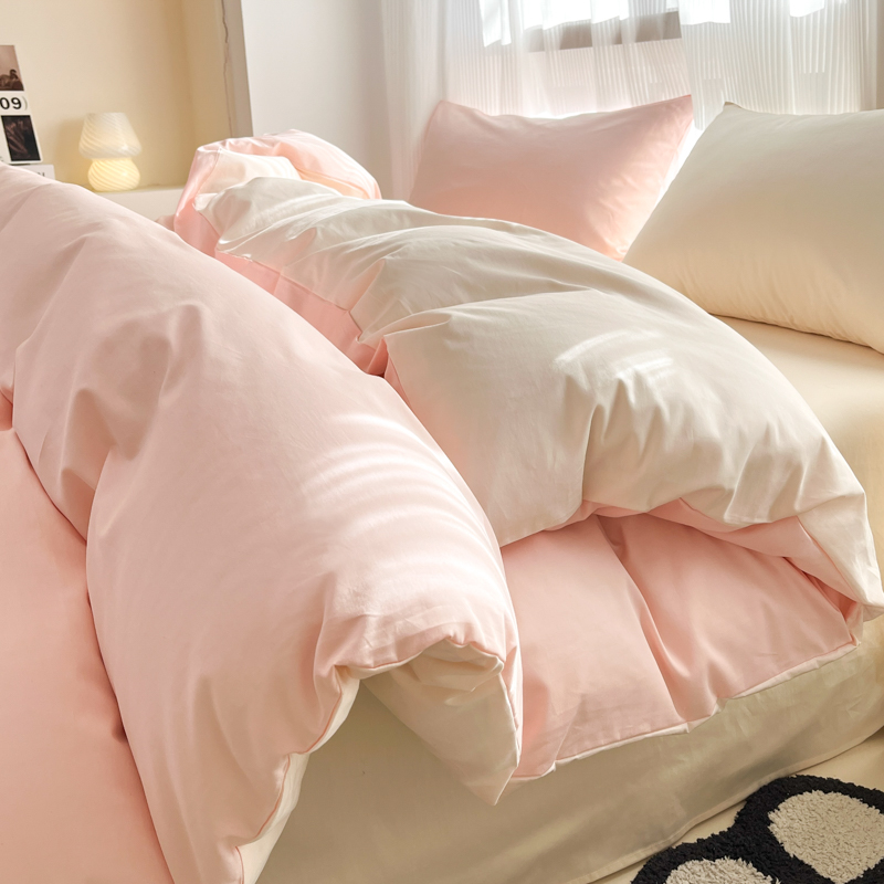耀悦家纺 2025新款A类纯棉60支拼色四件套 少女粉-灵动白桃