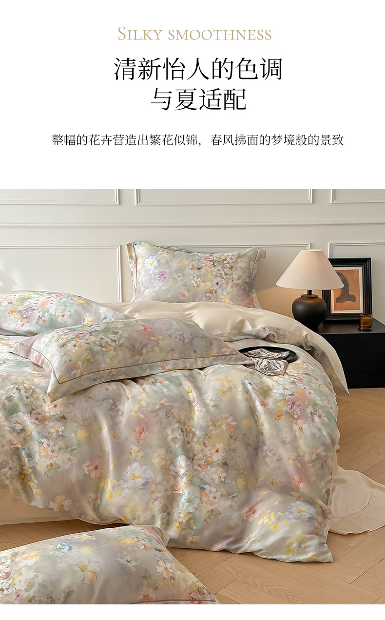 (总)启航家居 2025春夏新款莱赛尔天丝数码印花四件套,半纸叶灰,池禾韵兰,花园派对沙色,梦境之翼兰,梦境之翼绿,小雨录粉,烟花间粉,烟花间绿,樱岛春漫粉,云栖畔灰兰,栀花语粉,紫陌兰,紫陌紫