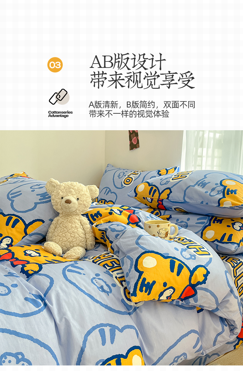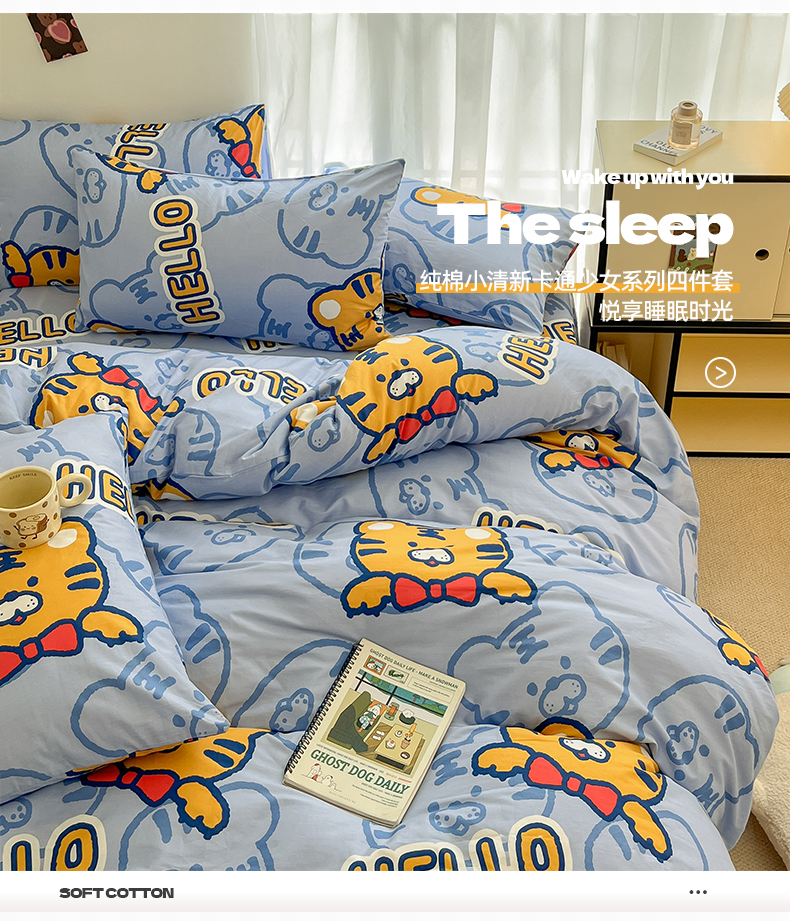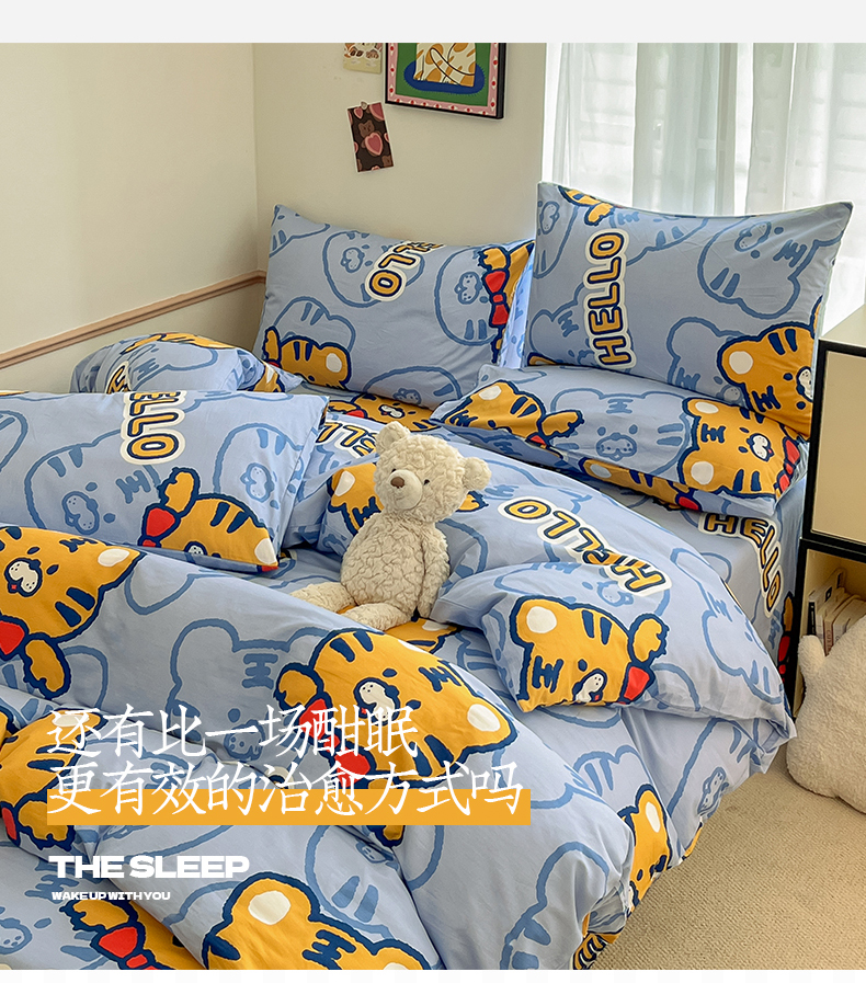 当前位置: 91家纺网 > 商品网购 > 床品套件 > 四件套 > 全棉普通四件套 > 桃子家居 2025新款纯棉小清新13372卡通可爱少女系列四件套 棉-蓝老虎