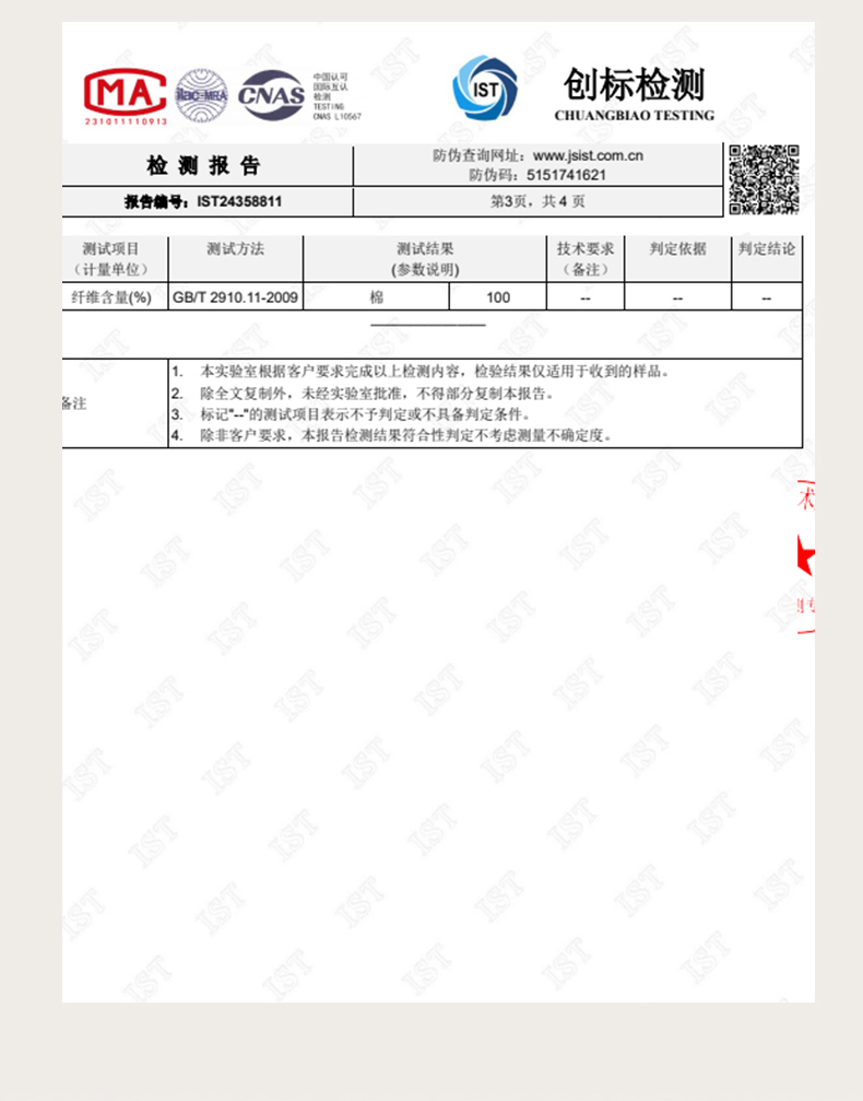 被里材质: 棉 棉 成分含量 95%(含)-100%(不含)