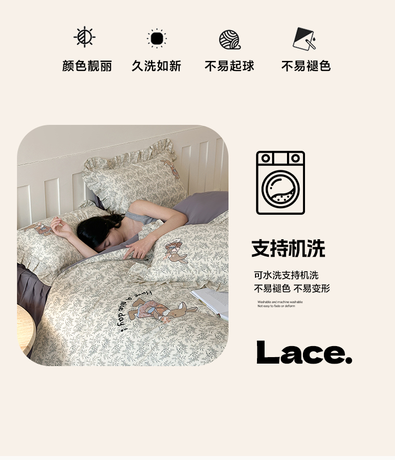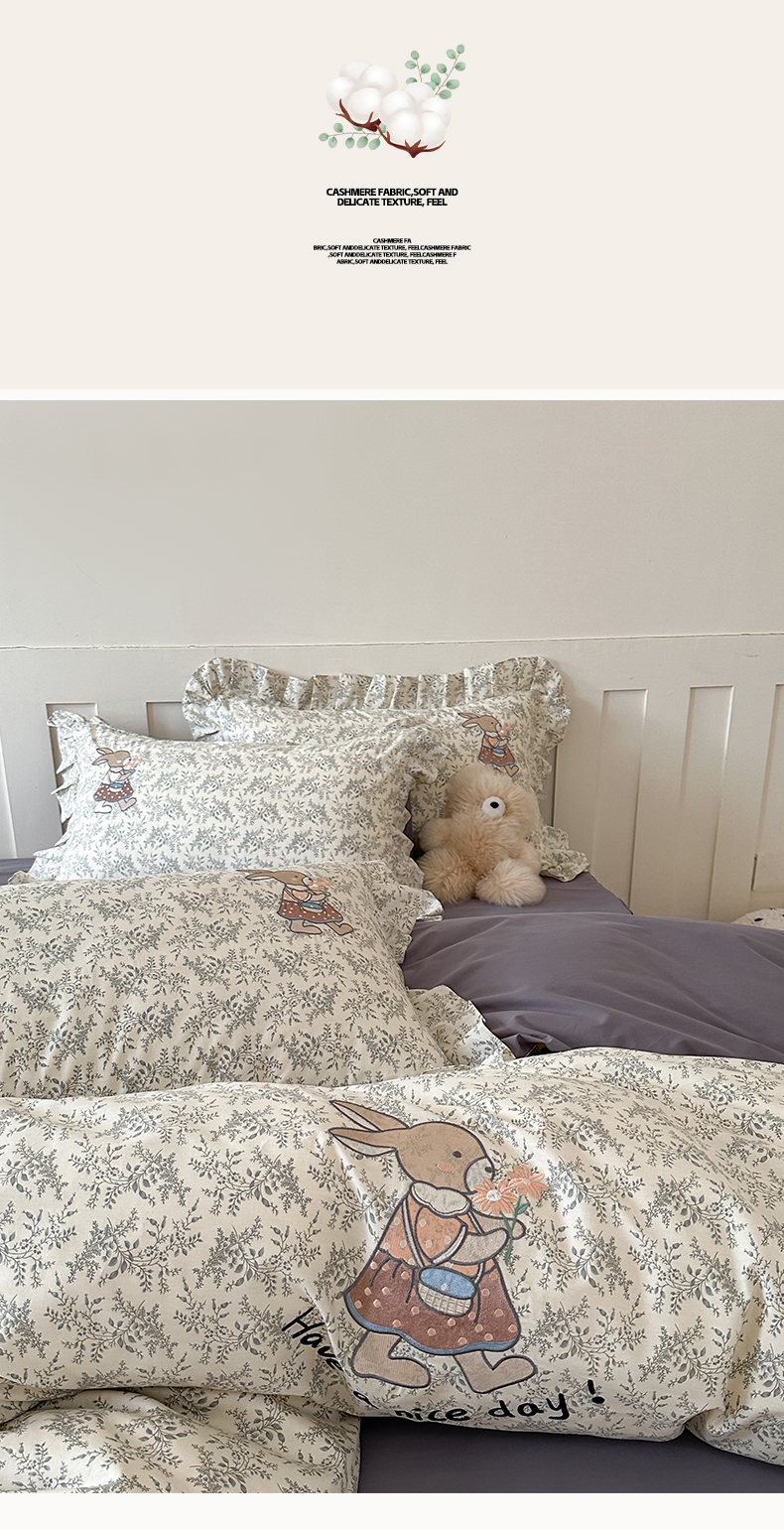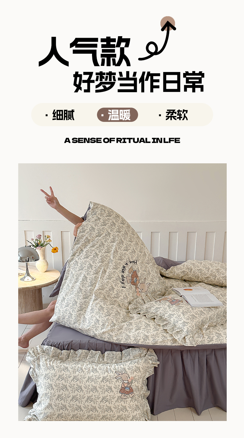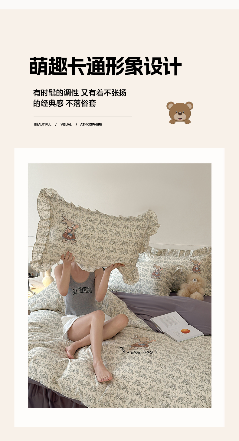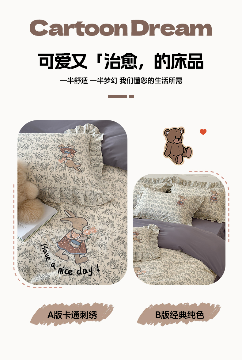 (总)卡巴伦家纺 2025新款全棉皱皱纱大版卡通数码印花款四件套一,洛可可兔-粉,班尼的花园-粉,班尼的花园-黄,漂亮的领结-绿,漂亮的领结-米白,熊猫噗噗-绿,樱桃真甜-奶白