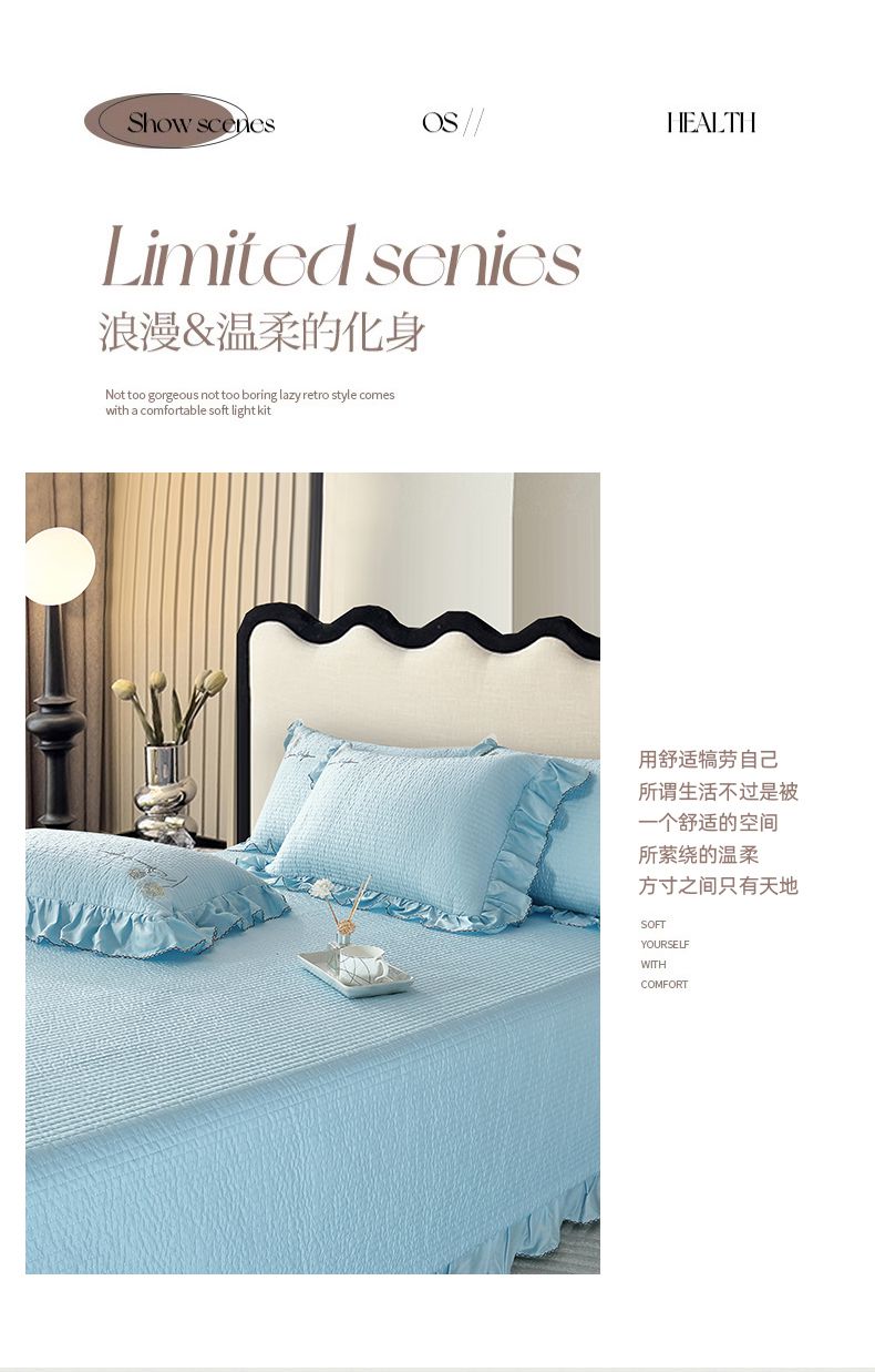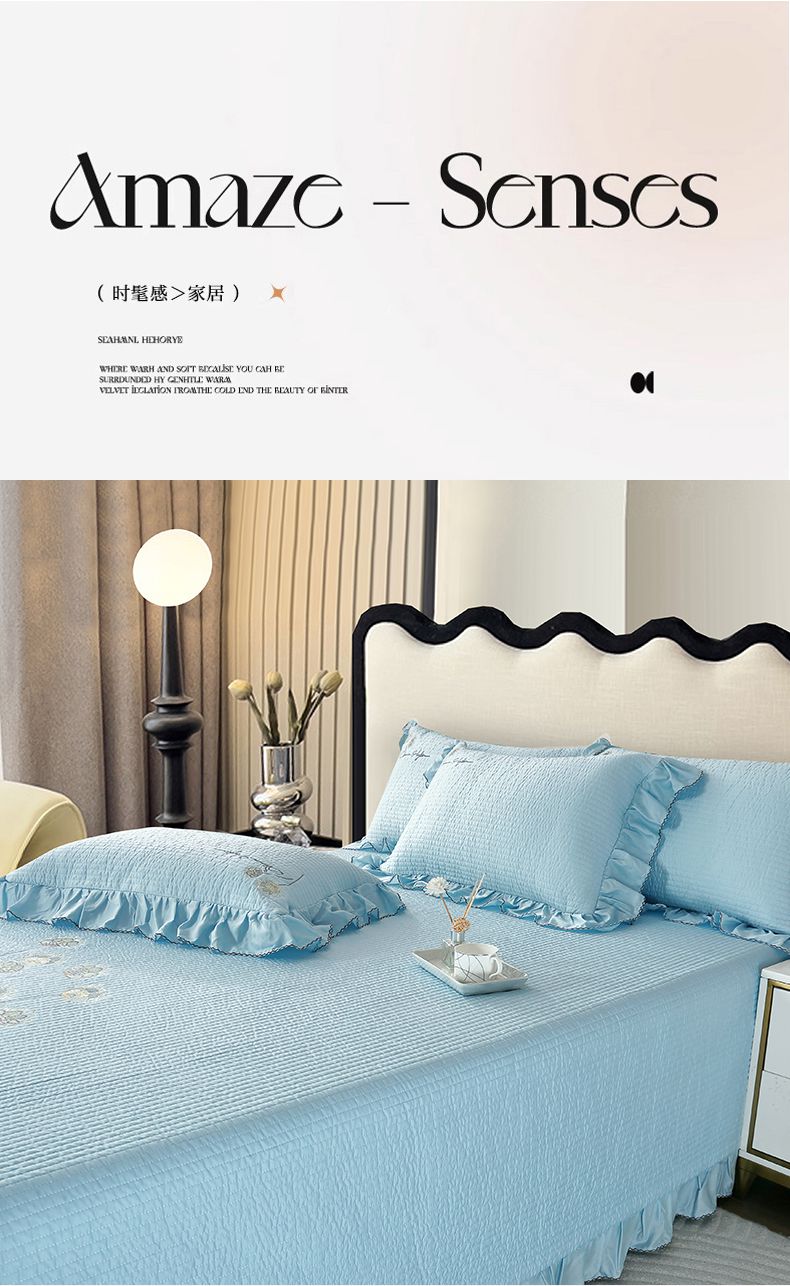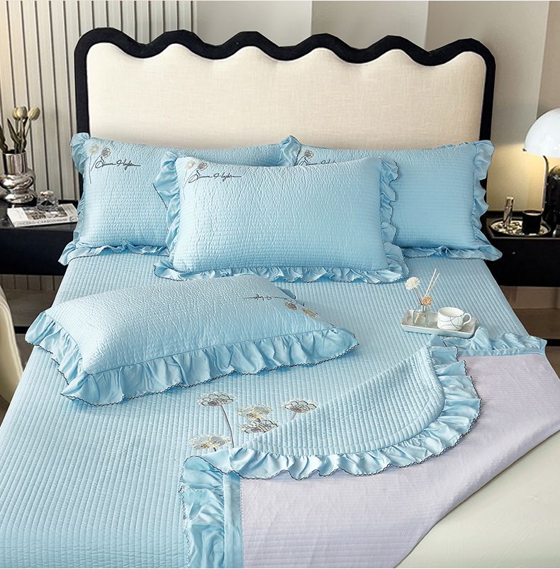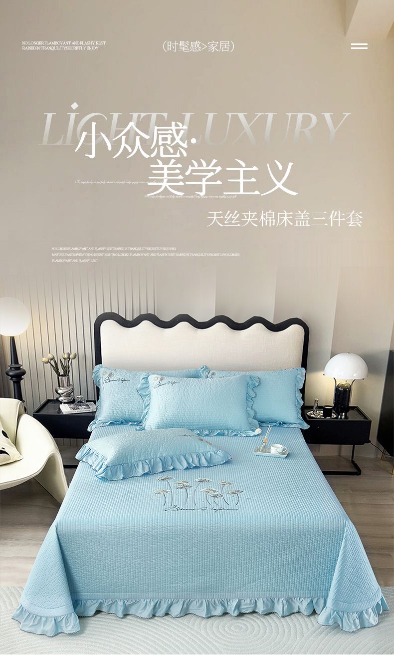 商品名称:OL家纺2025新款天丝床盖三件套系列-蒲公英 秋波蓝