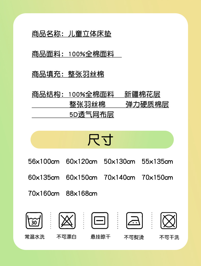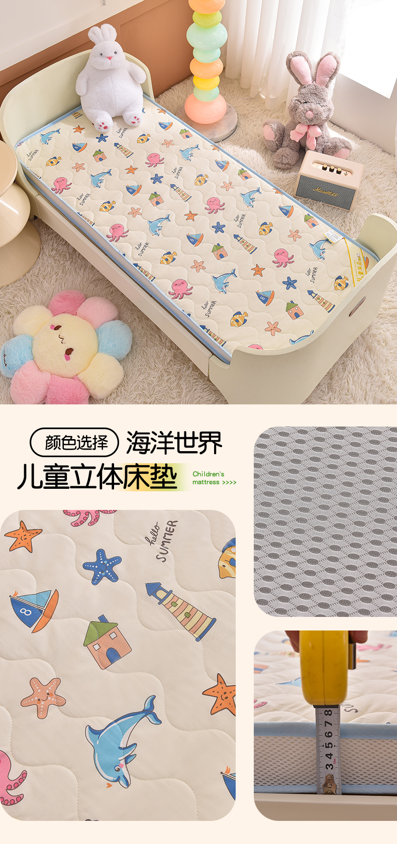 商品名称:(总)嗨生活 2025年新款加厚立体全棉棉花床垫 幼儿园床垫 床褥 儿童床垫